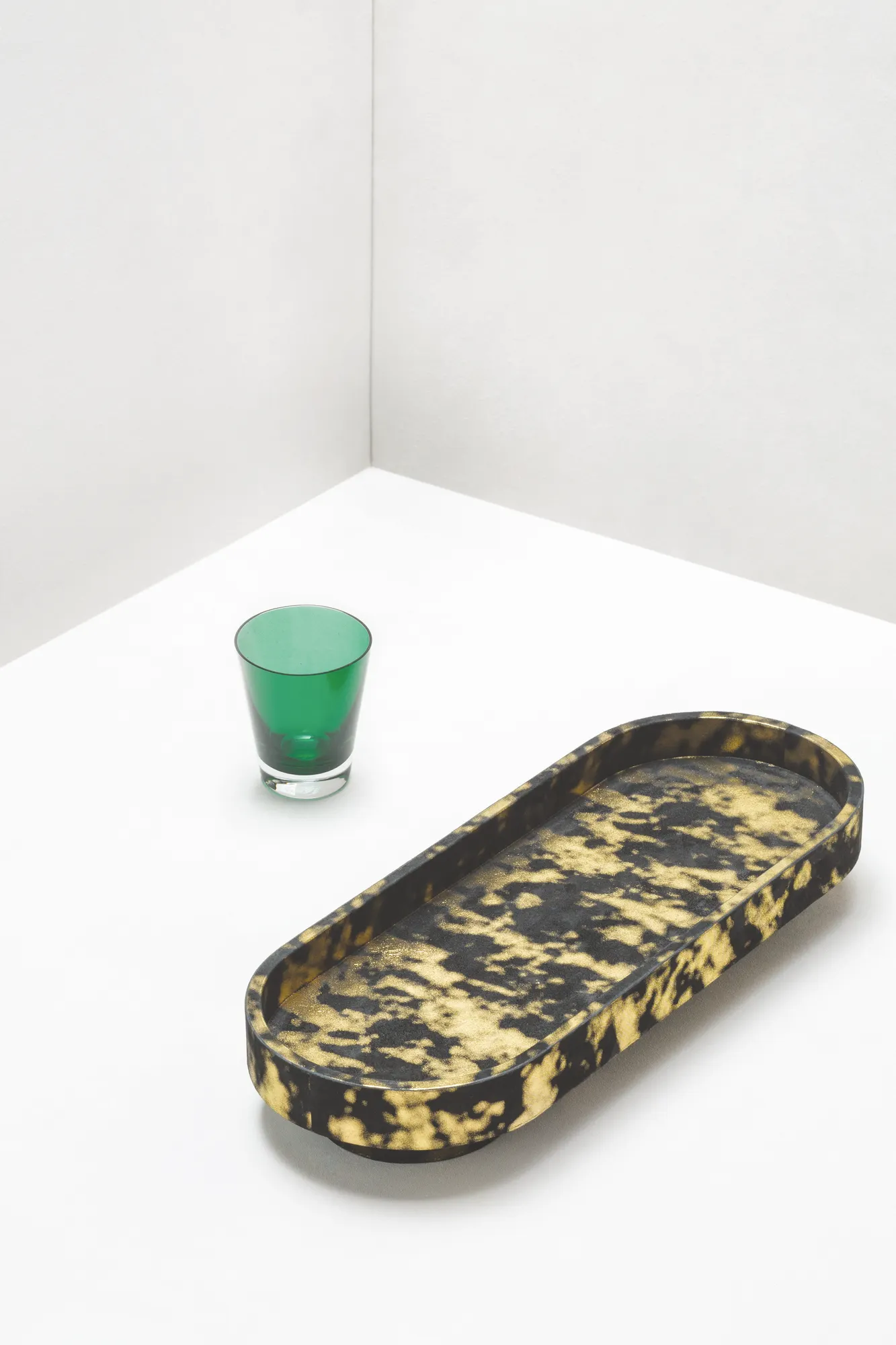 A series of elegant presentation bowls and trays generously proportioned to be used as striking centrepieces. Also available with Clouds printed suede, they look like a tribute to the American artist Sterling Ruby.