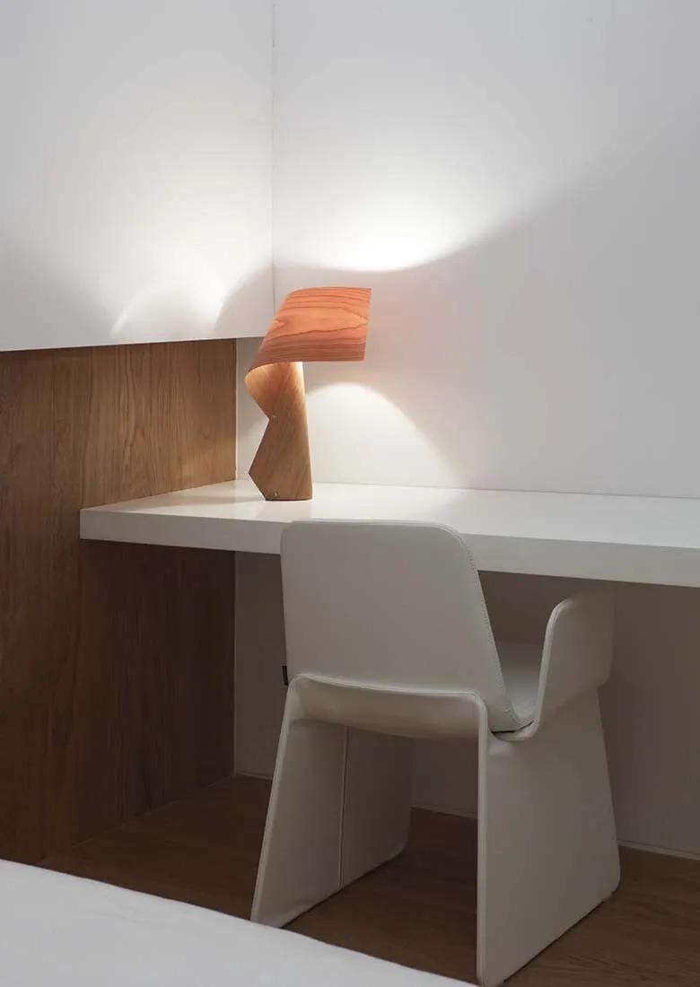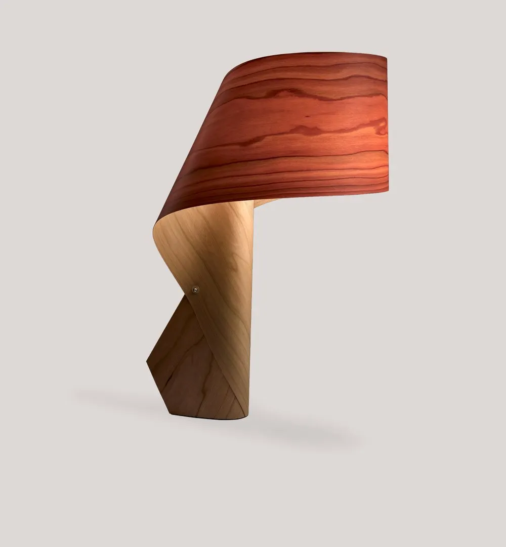AIR THE EFFORTLESS LIGHT. The light, fine grain of the Air lamp’s wood veneer is both distinctive and attractive. Air beautifully demonstrates the design potential of wood veneer—its shape exhibits Ray Power’s characteristic penchant for imaginative three-dimensional forms. The Air’s pleats and folds work to create a graceful lamp. Its cantilevered head is poised and radiates an air of serenity. The cantilevered design of the Air lamp is particularly clever in its table form. Diffusing light both upwards and downwards, the award-winning Air Table is perfect on a desk for focused tasks or as a bedside table companion. The Air Table is available in the following wood veneers: Natural Cherry, Ivory White, Natural Beech, Yellow, Orange, Red, Blue, Grey, Pale Rose, and Sea Blue.