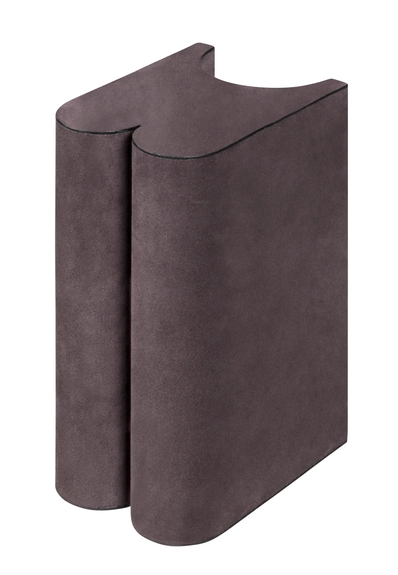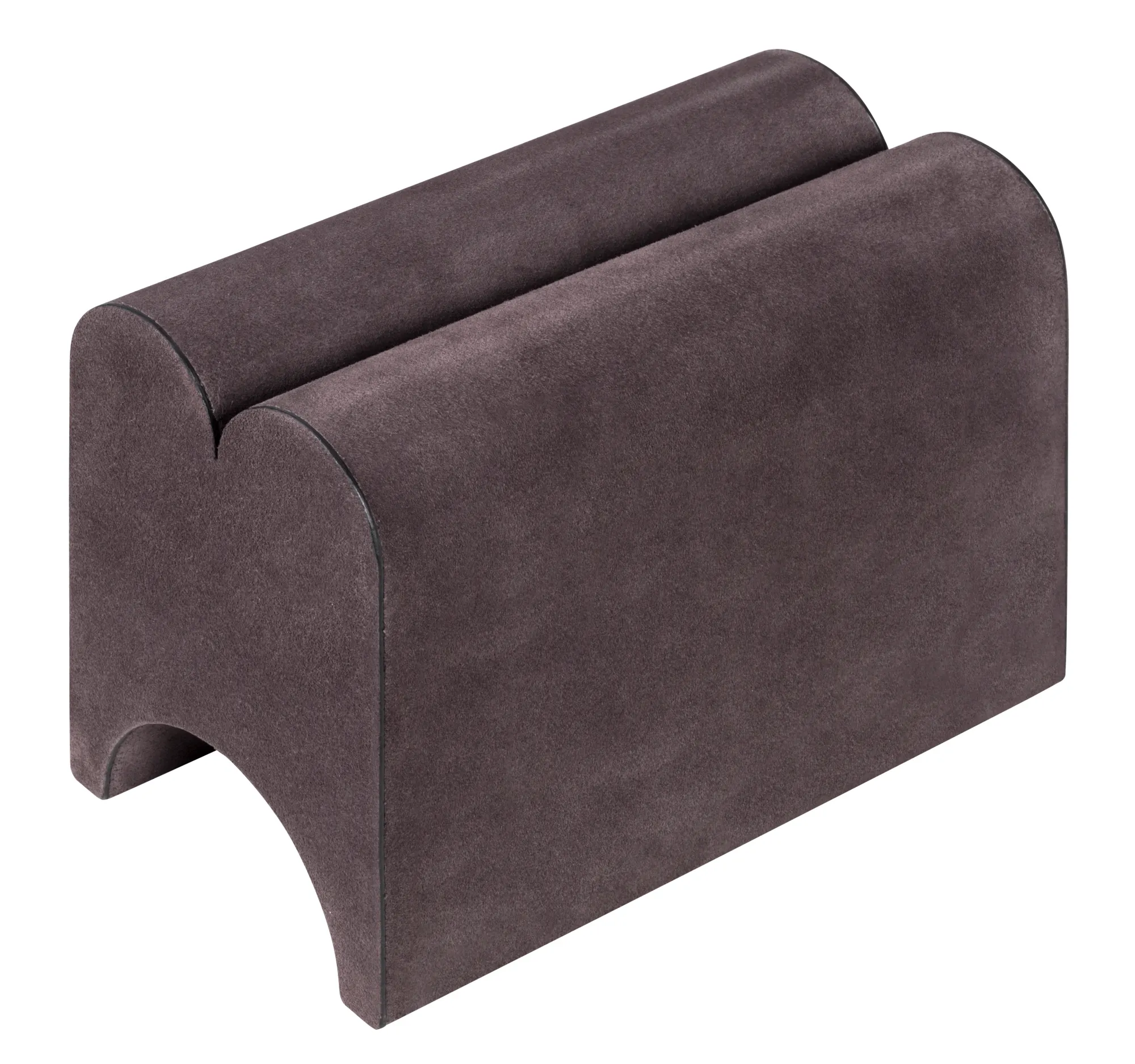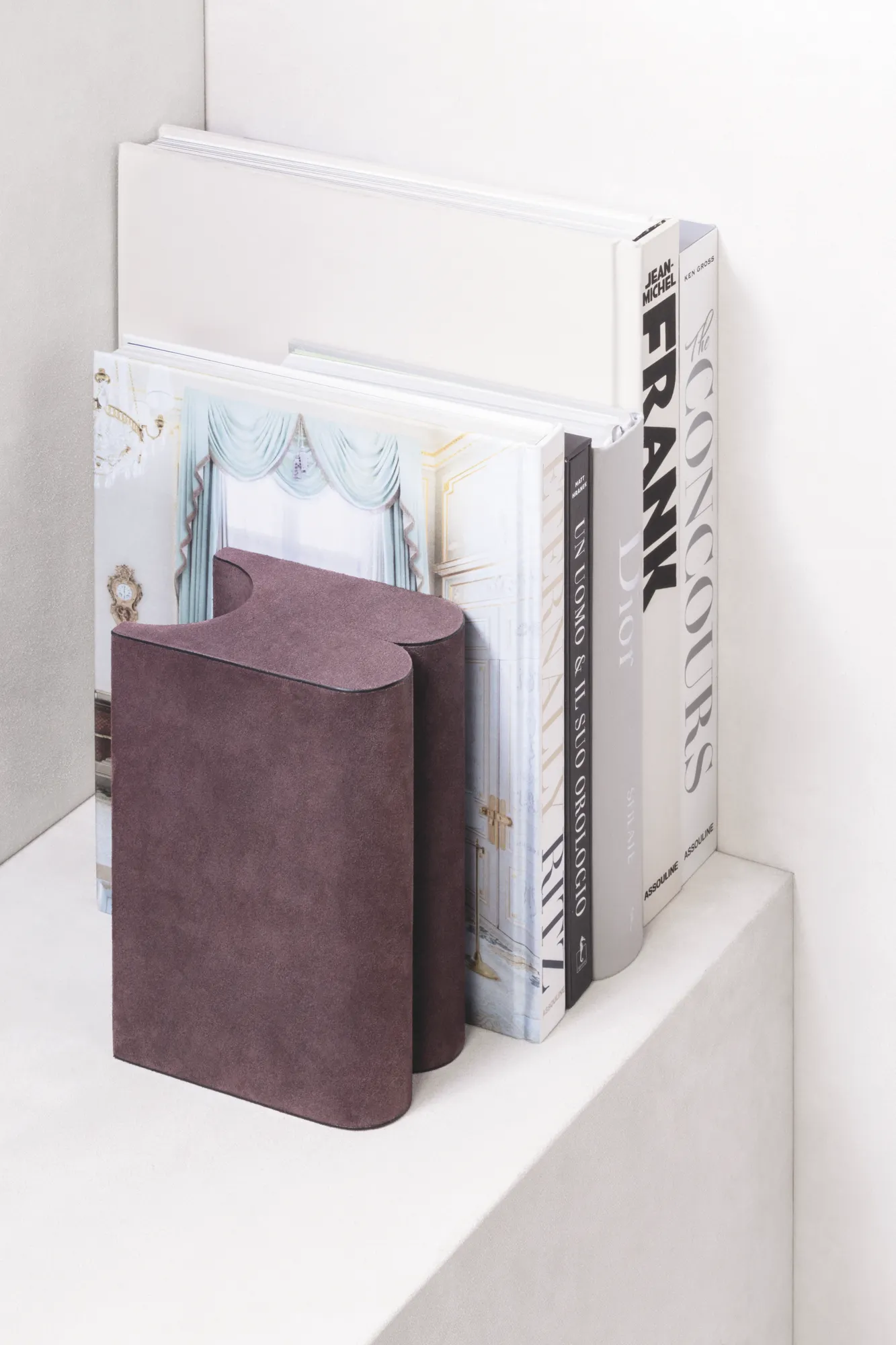 The innovative furniture collection is composed of geometric shapes with leather bound legs featuring unconventional proportions and rounded convex and concave forms the signature design is utilized in a bookend that boasts a strong sculptural quality. Just as in the architecture of Mies van der Rohe, the subtle detailing here never calls attention to itself and meets an inquisitive gaze with a fitting response.