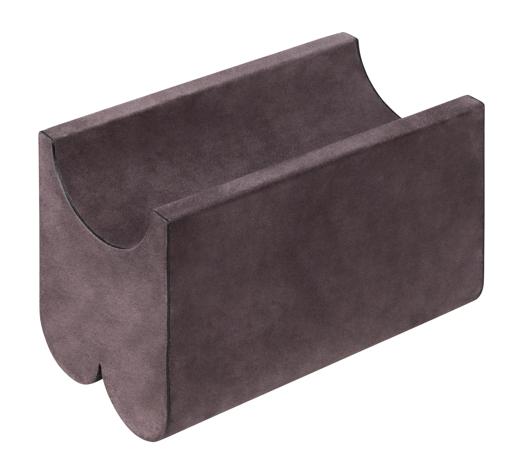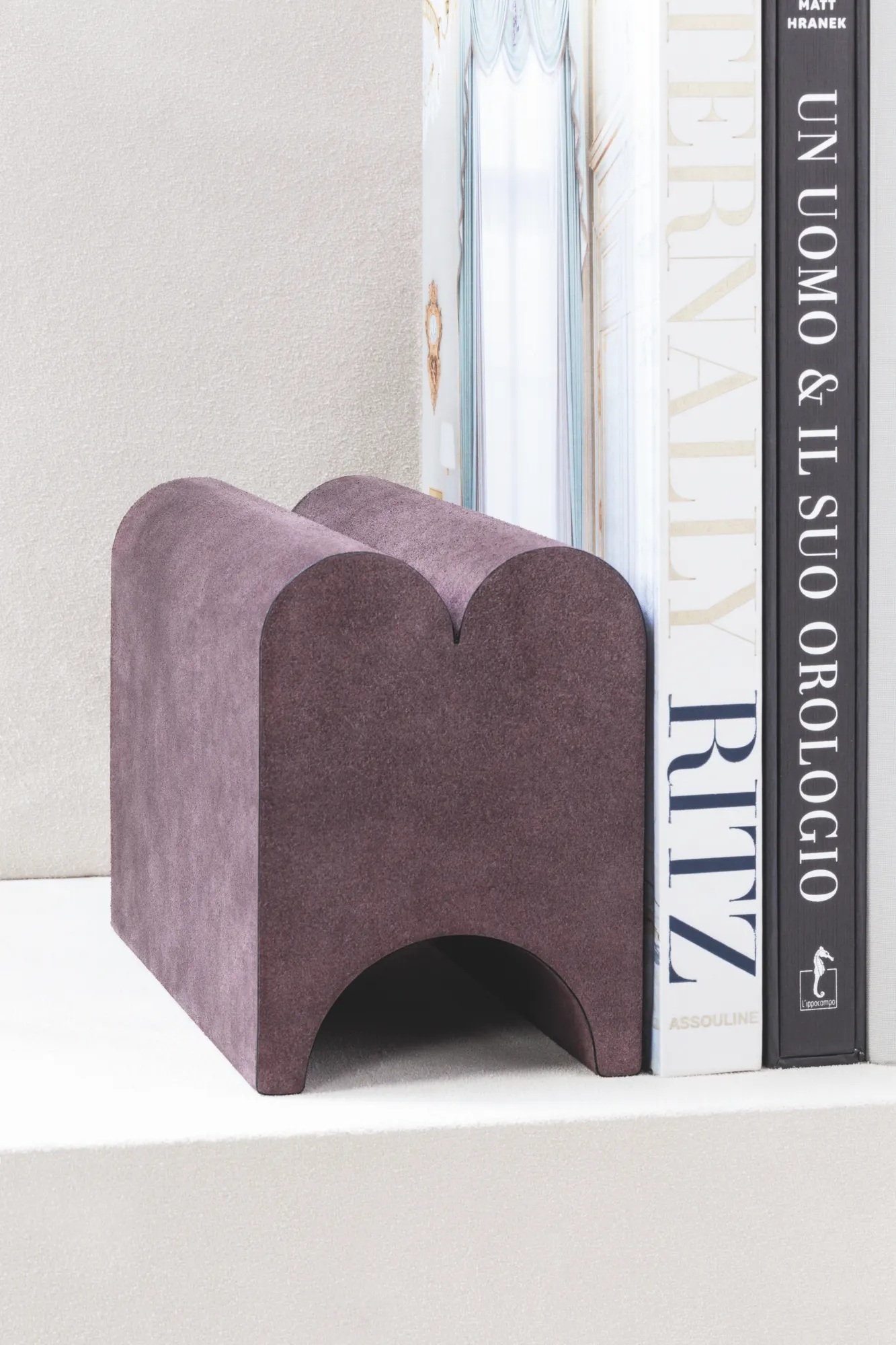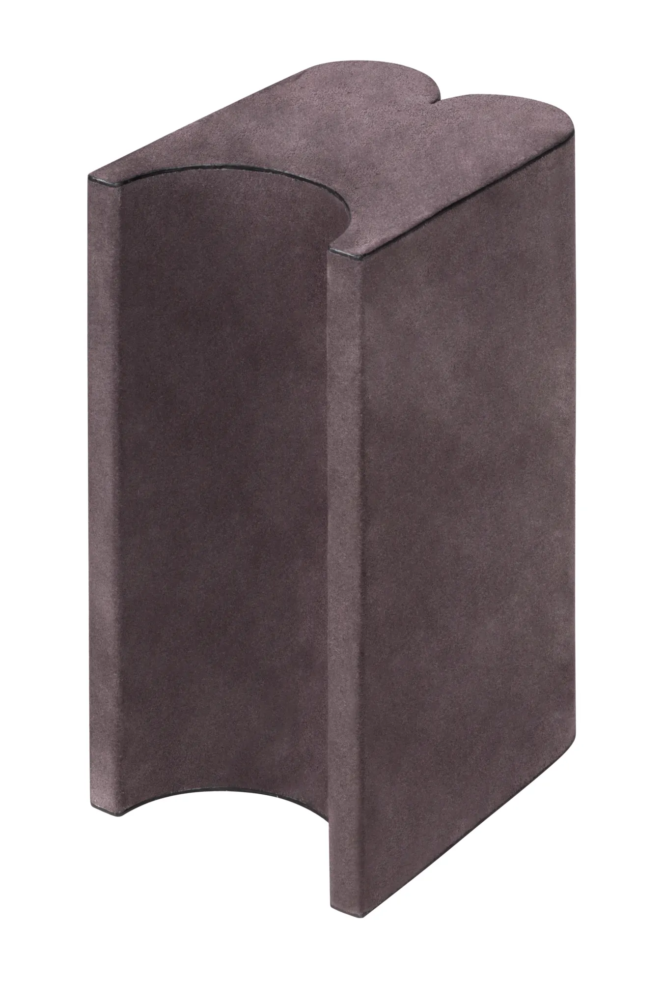 The innovative furniture collection is composed of geometric shapes with leather bound legs featuring unconventional proportions and rounded convex and concave forms the signature design is utilized in a bookend that boasts a strong sculptural quality. Just as in the architecture of Mies van der Rohe, the subtle detailing here never calls attention to itself and meets an inquisitive gaze with a fitting response.