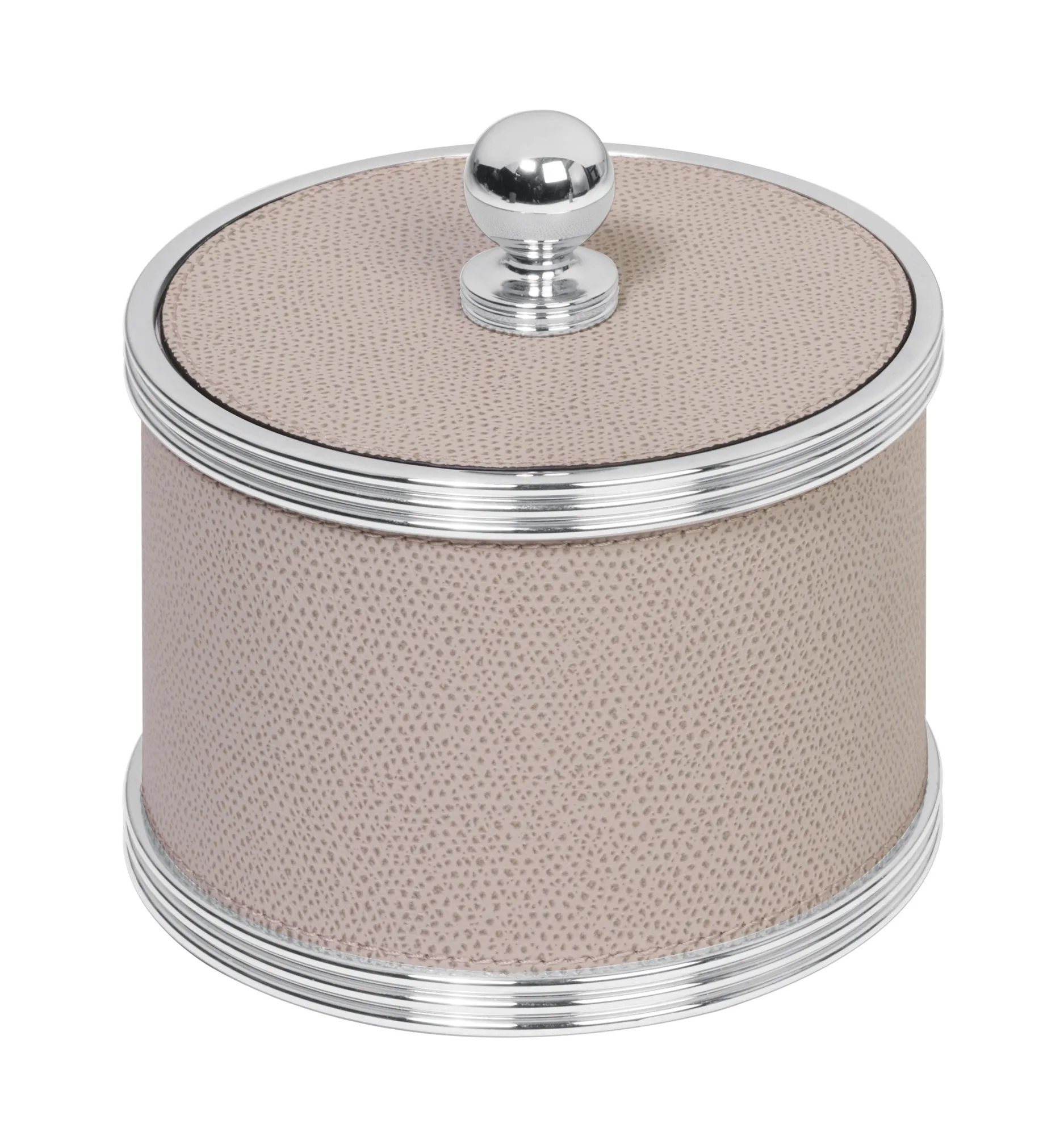 Leather covered solid brass structure. Non-slip waterproof rubber base underneath. Metal finishes available: chrome / bronze / brass.