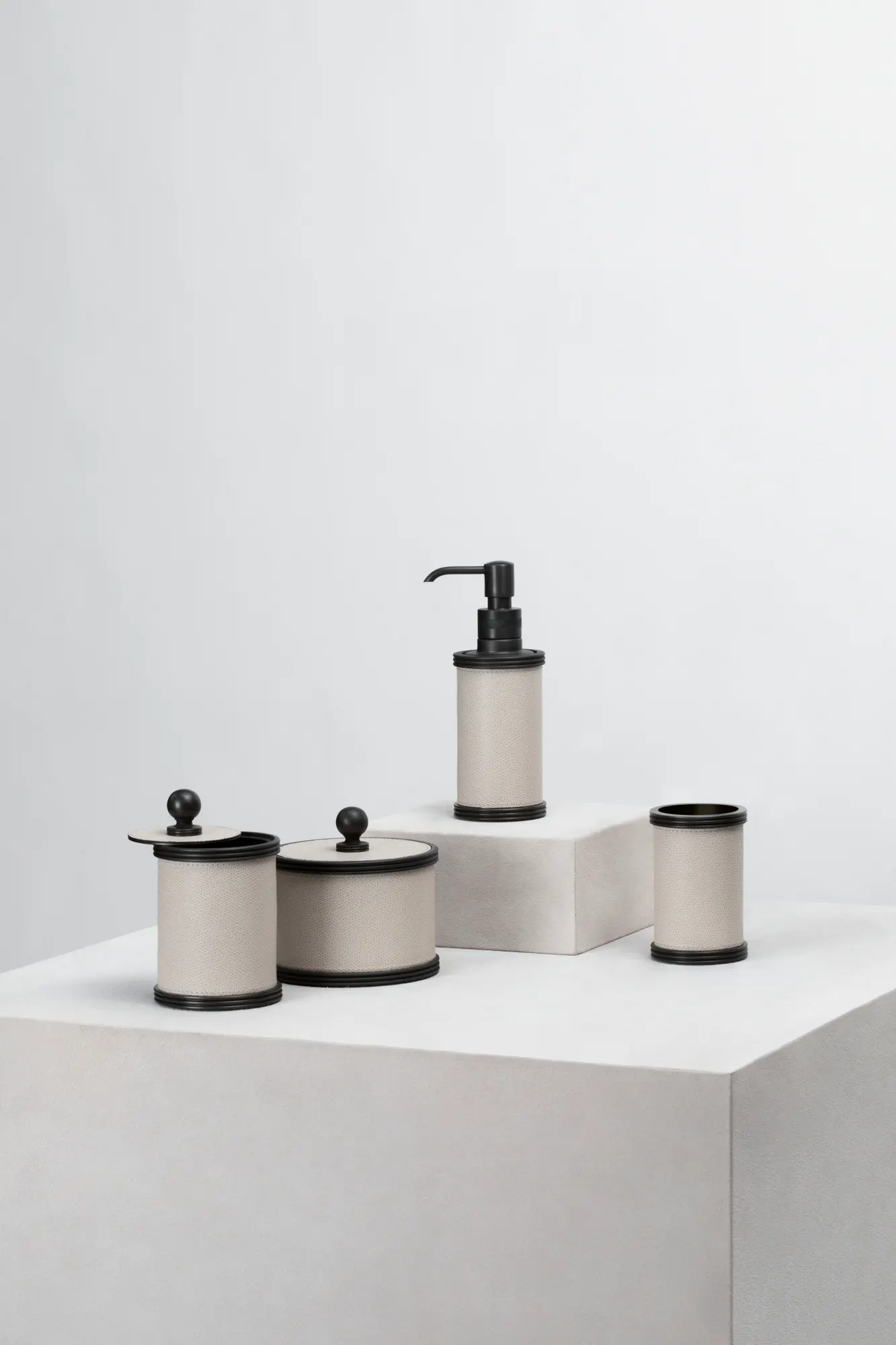 Leather covered solid brass structure. Non-slip waterproof rubber base underneath.