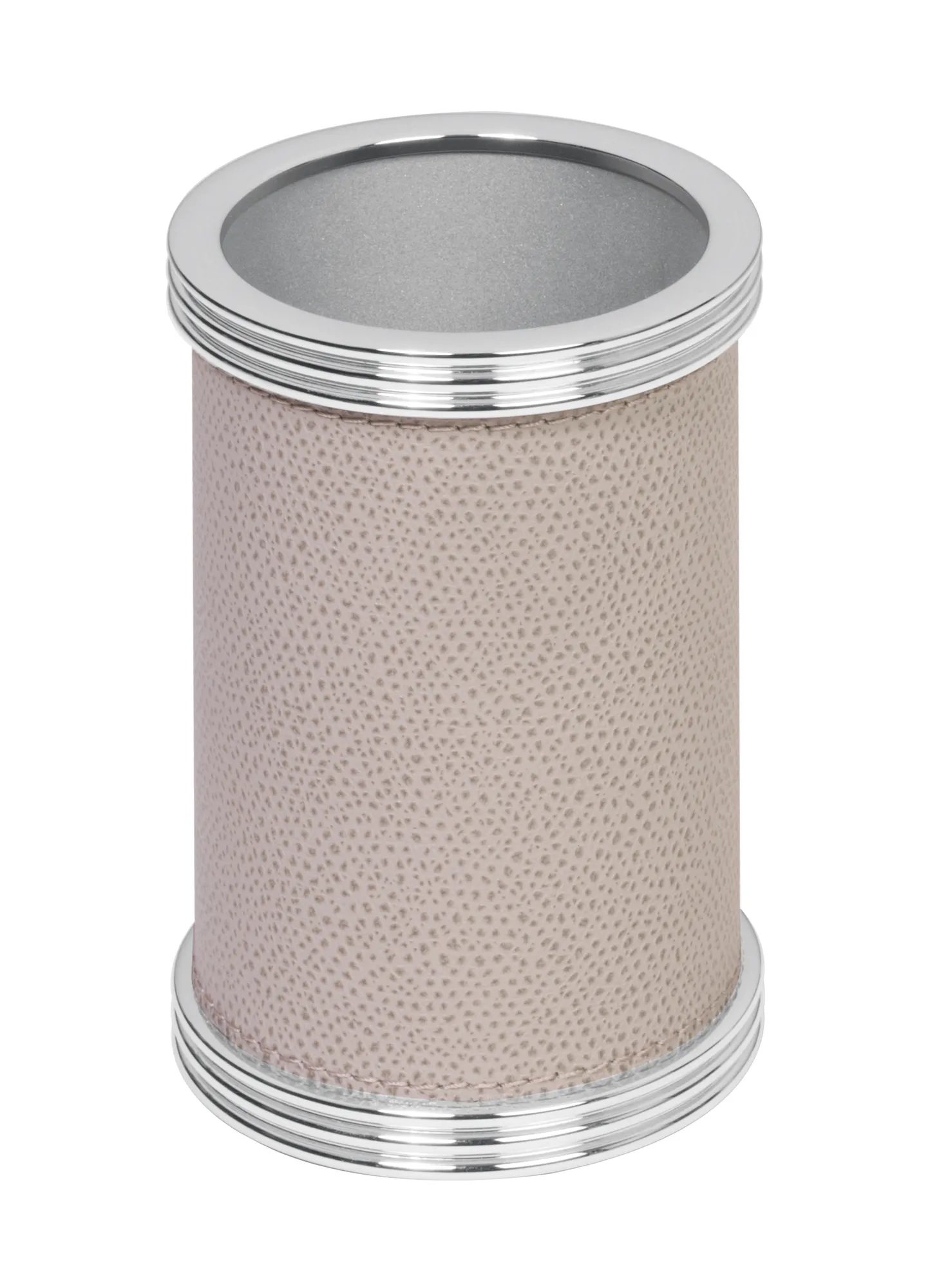 Leather covered solid brass structure. Non-slip waterproof rubber base underneath.