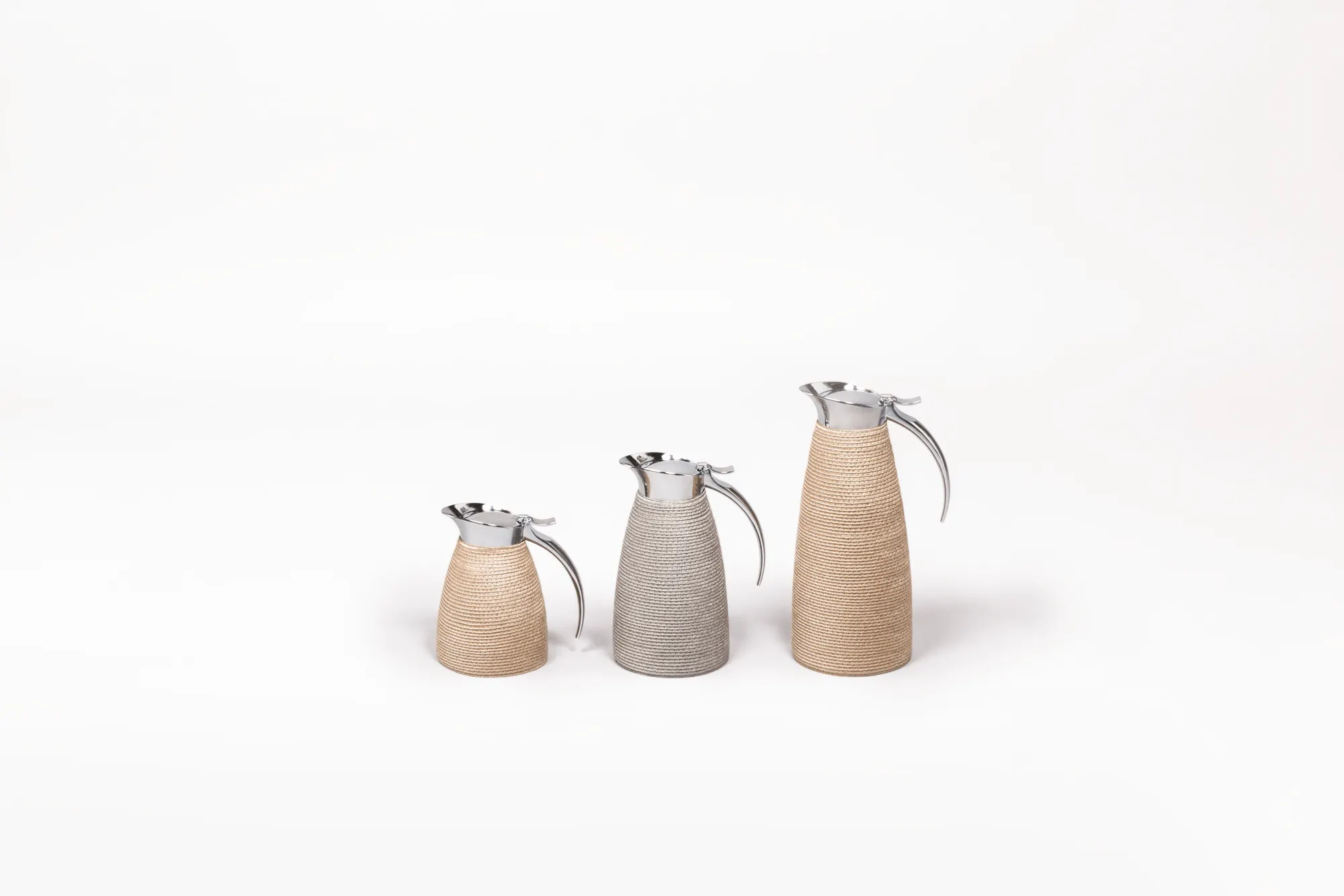 Partially TechStraw covered insulated stainless steel carafes with chrome-plated finish. Two-chamber structure able to maintain liquids temperatures. Precise pouring thanks to the specially developed hinged lid with one-hand operation.