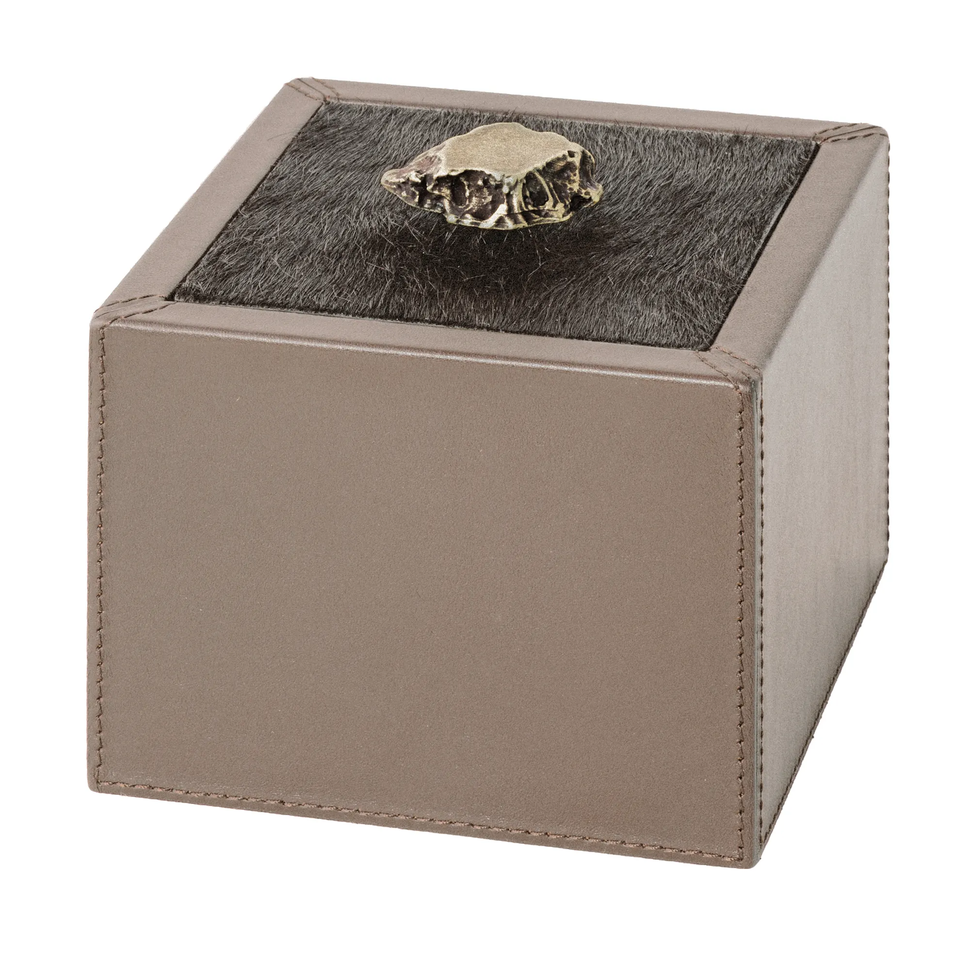 Leather covered wood structure and knob with bronze finish. It is possible to combine two different leather finishes (shagreen with nappa, pony with nappa...).