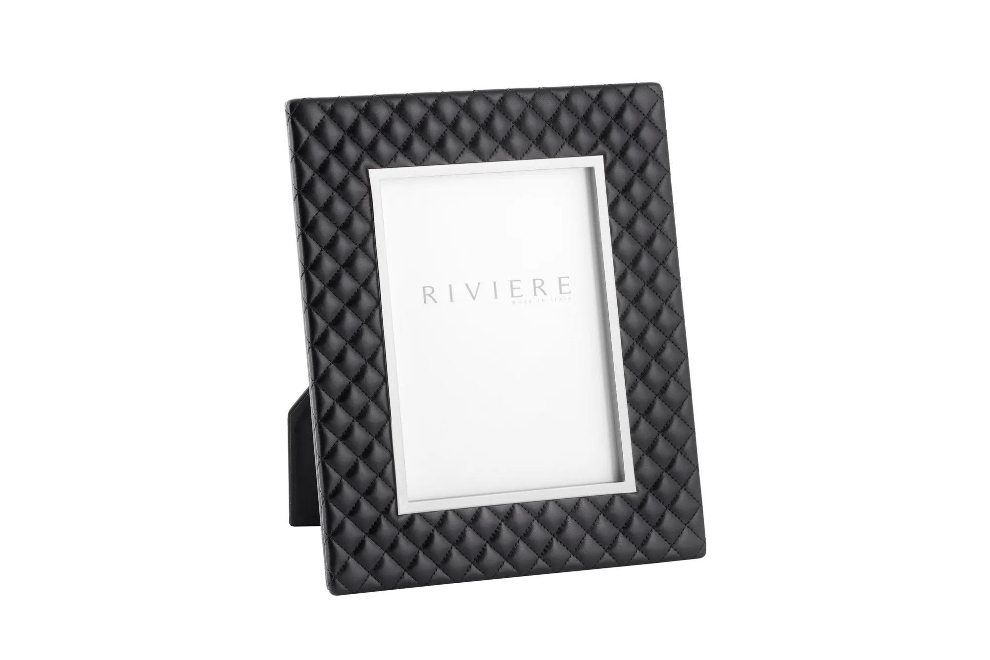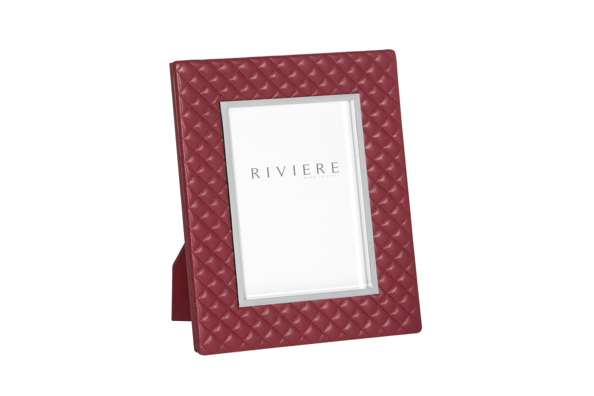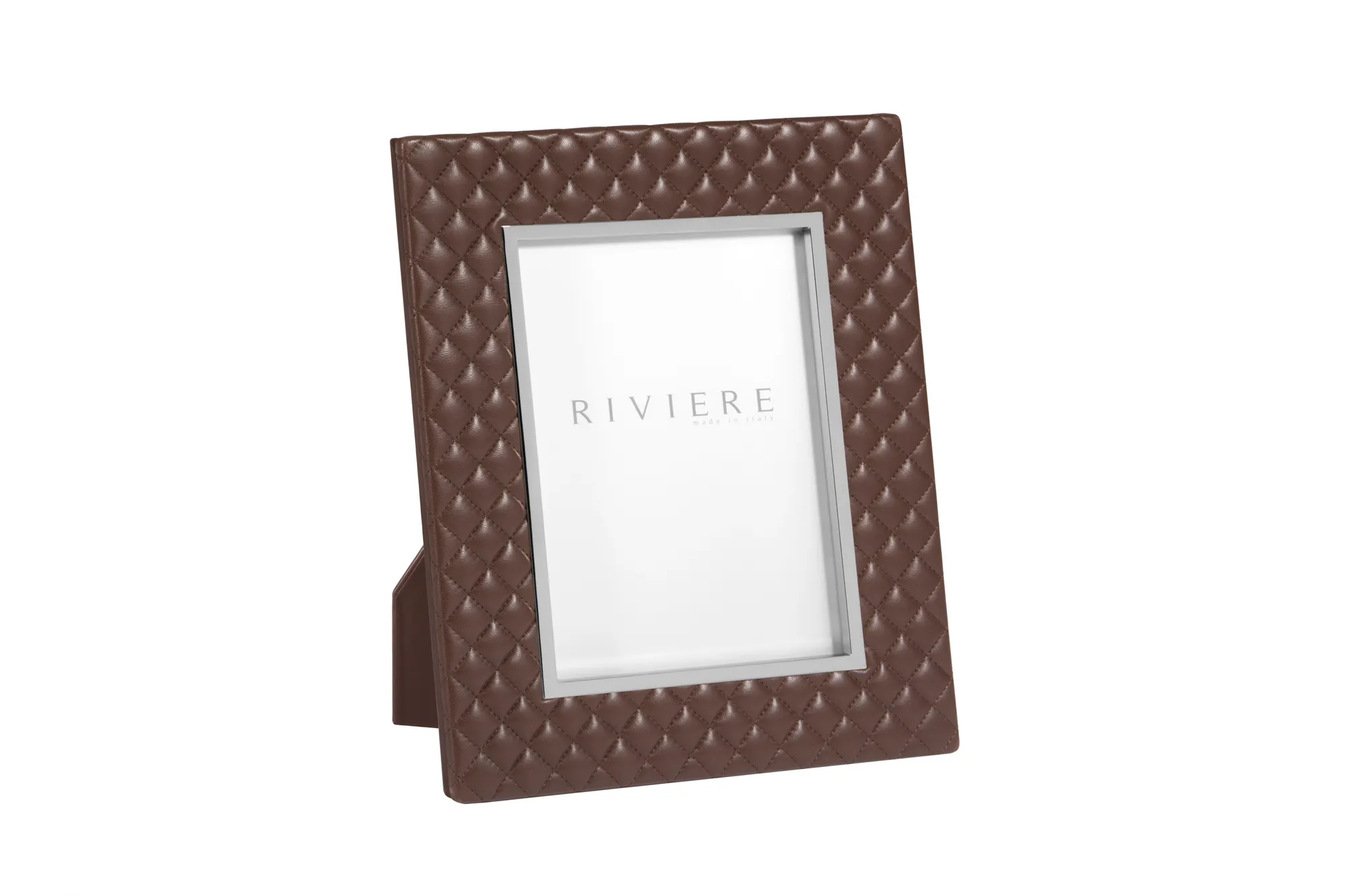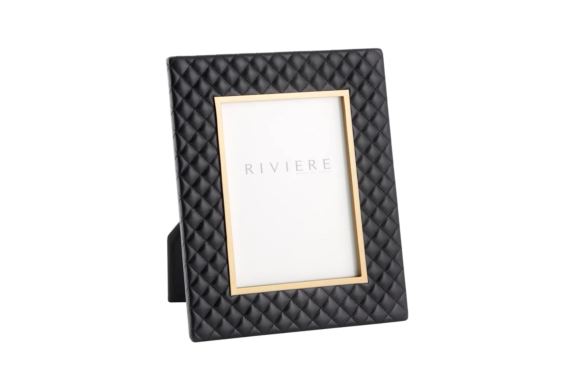 Quilted diamonds leather frame, chrome or gold metal trim.