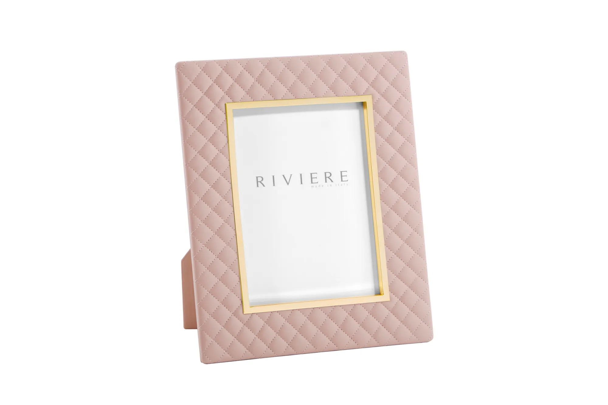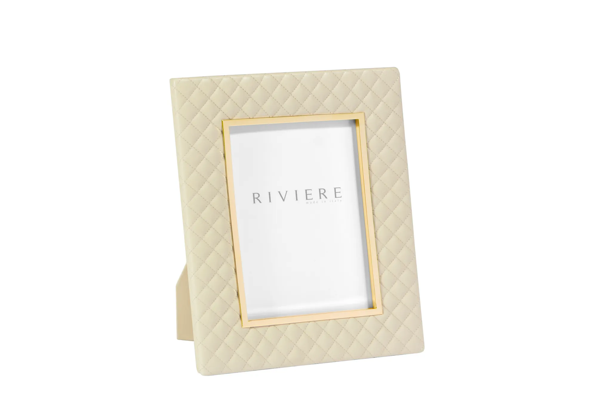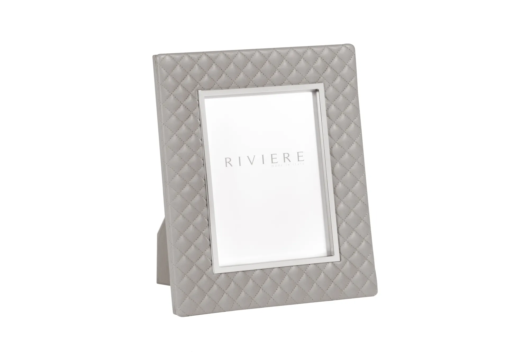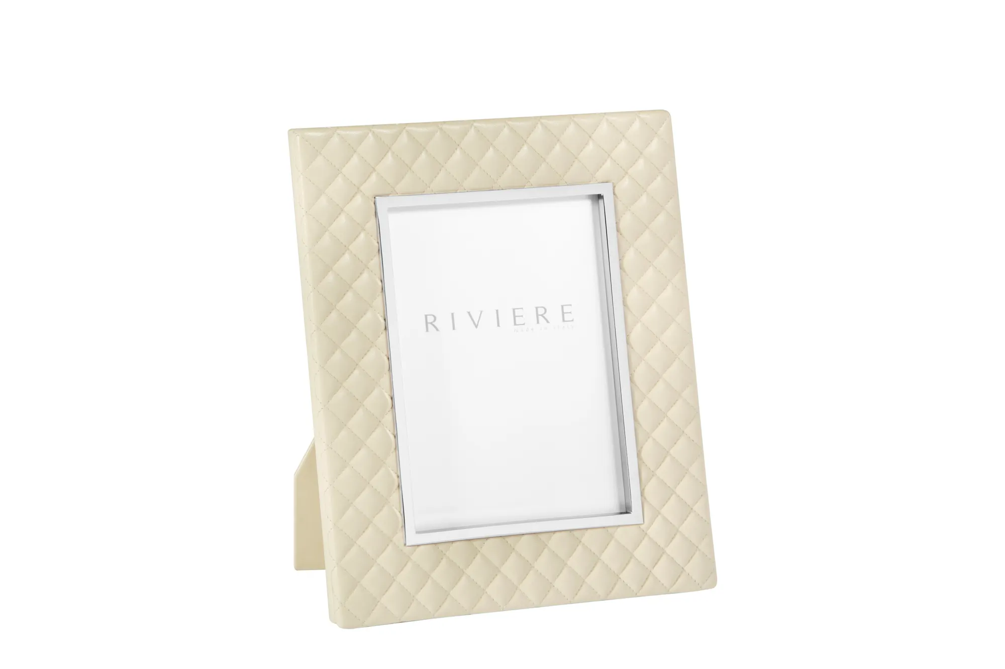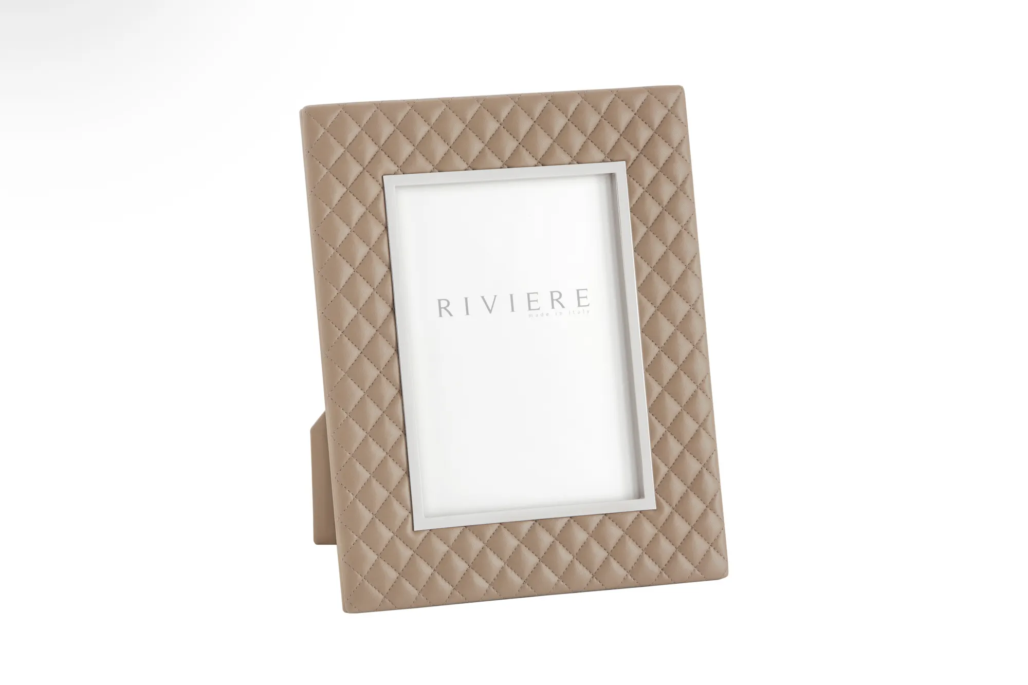 Quilted diamonds leather frame, chrome or gold metal trim.