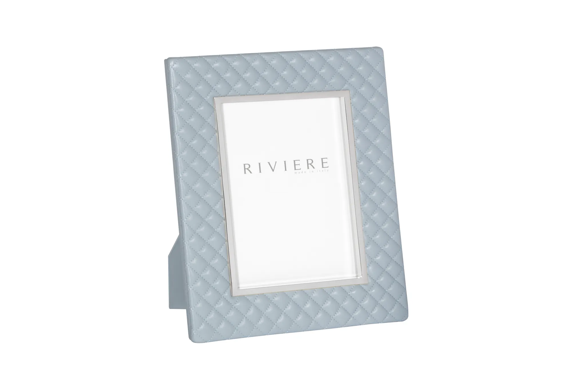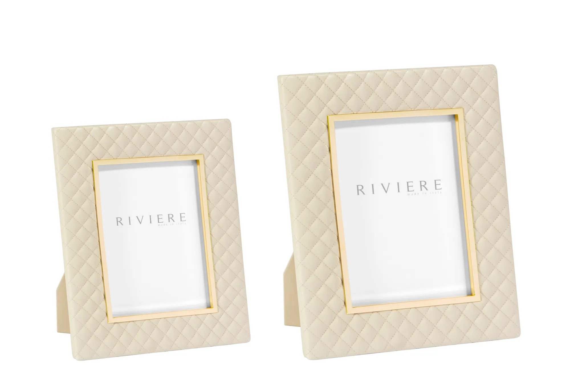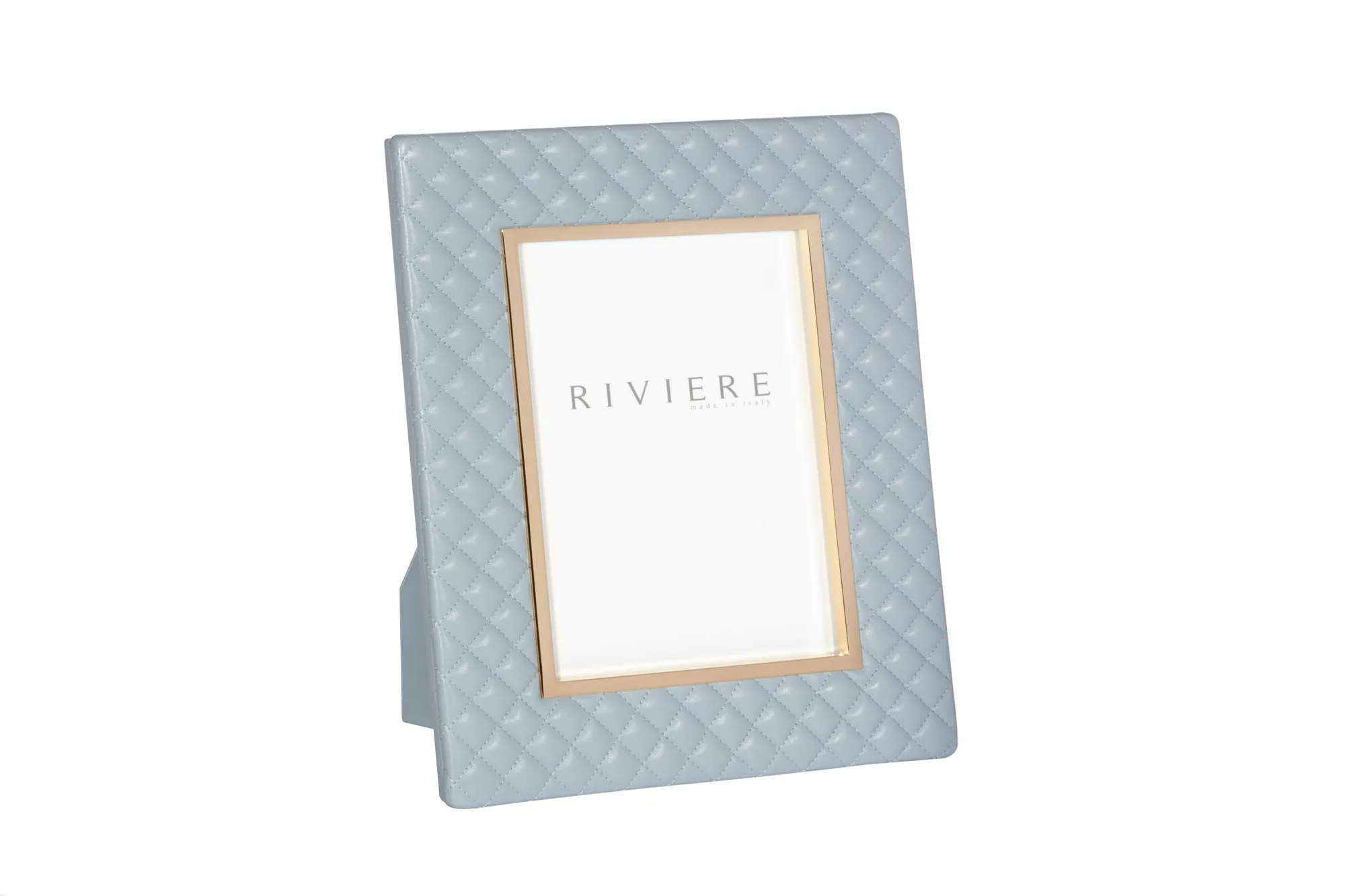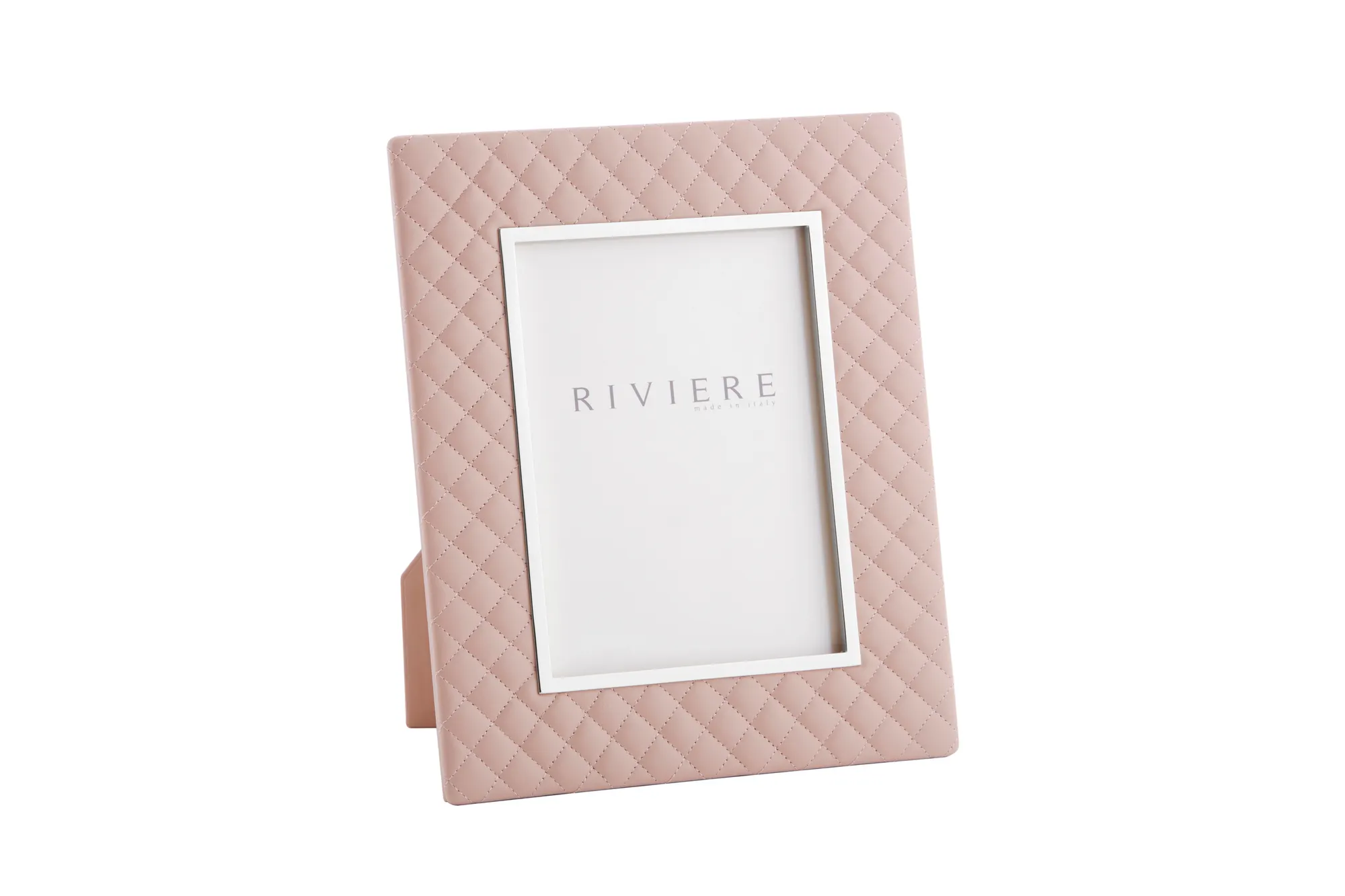 Quilted diamonds leather frame, chrome or gold metal trim.