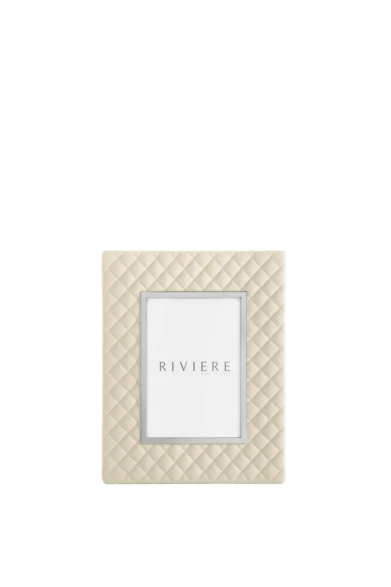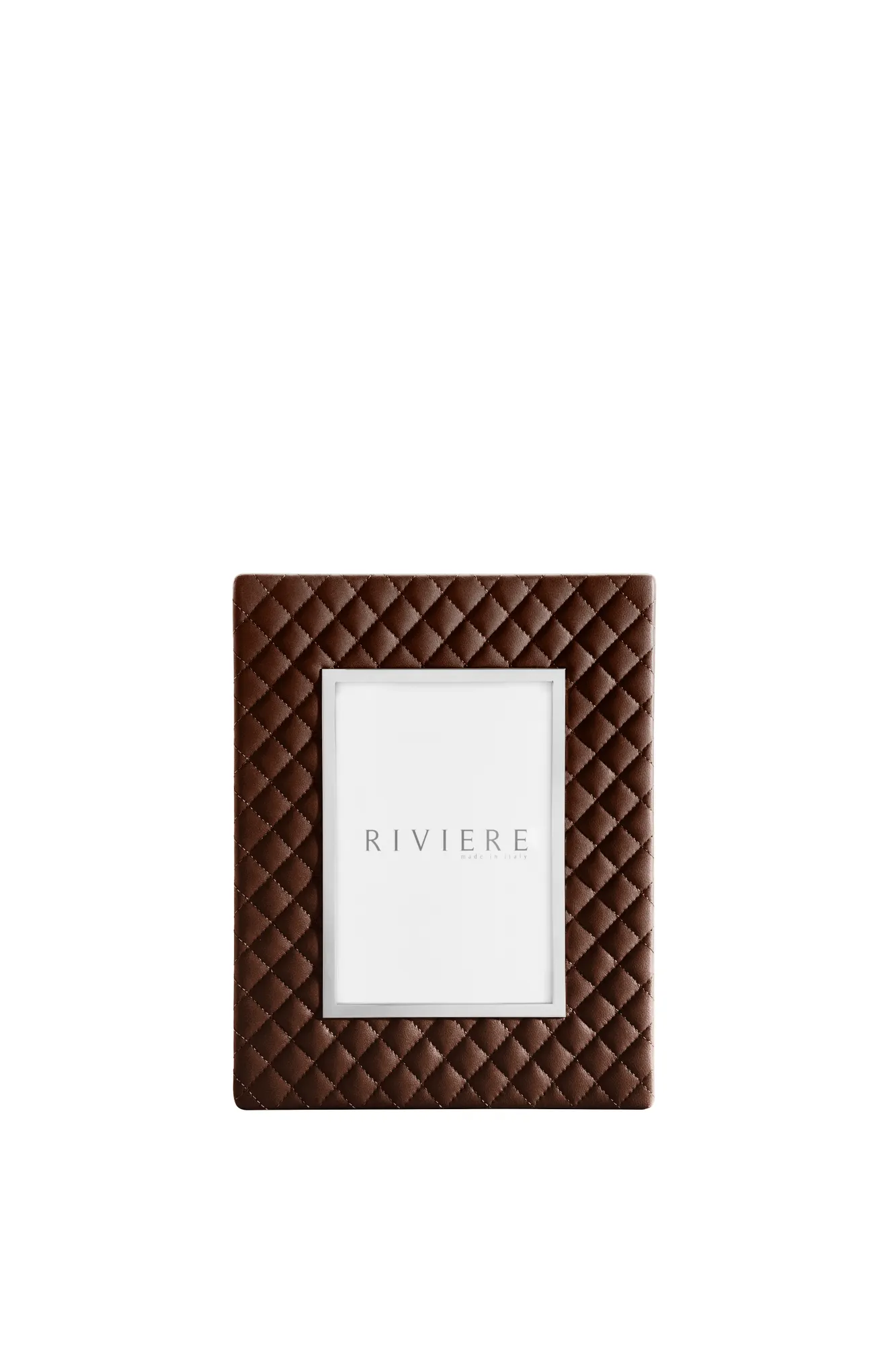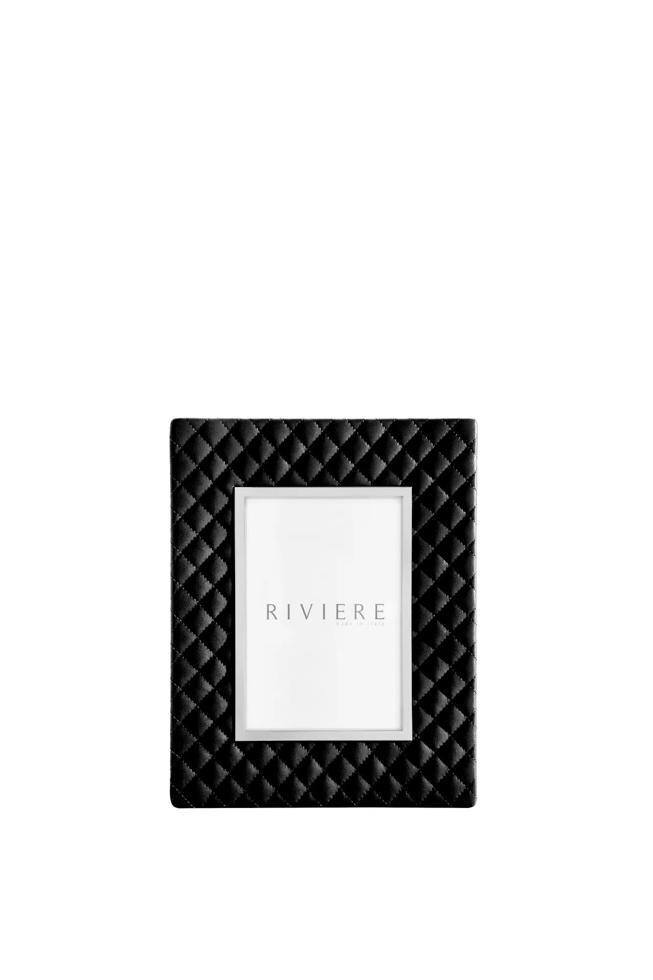 Quilted diamonds leather frame, chrome or gold metal trim.