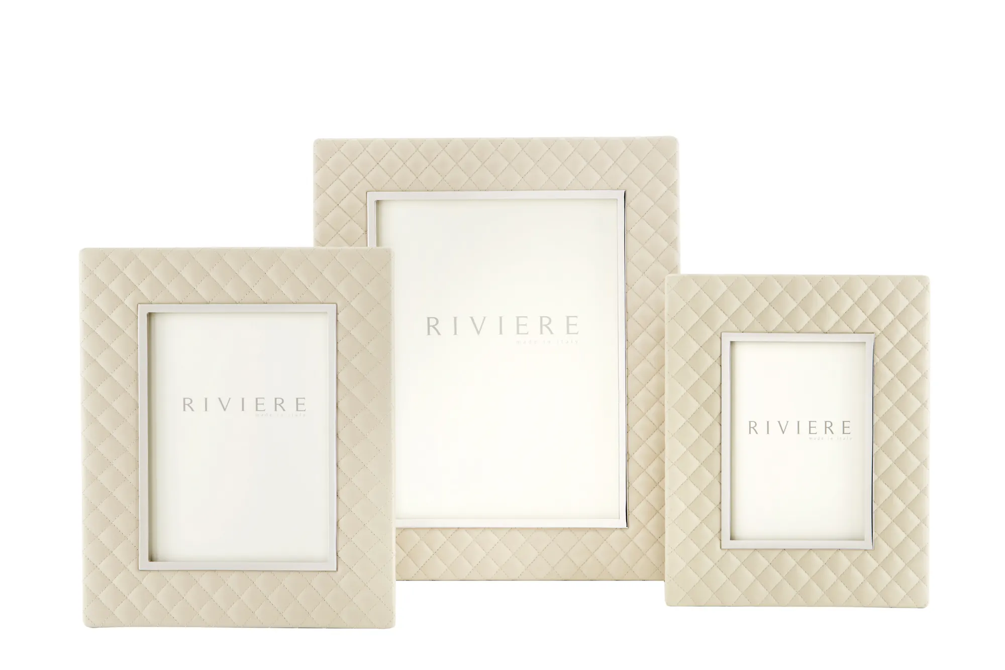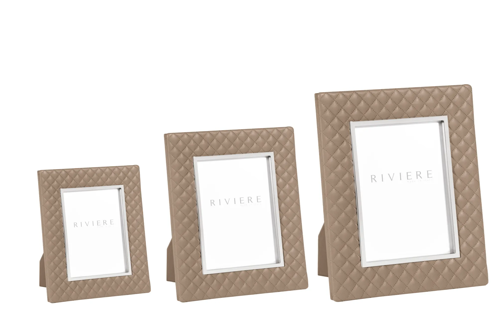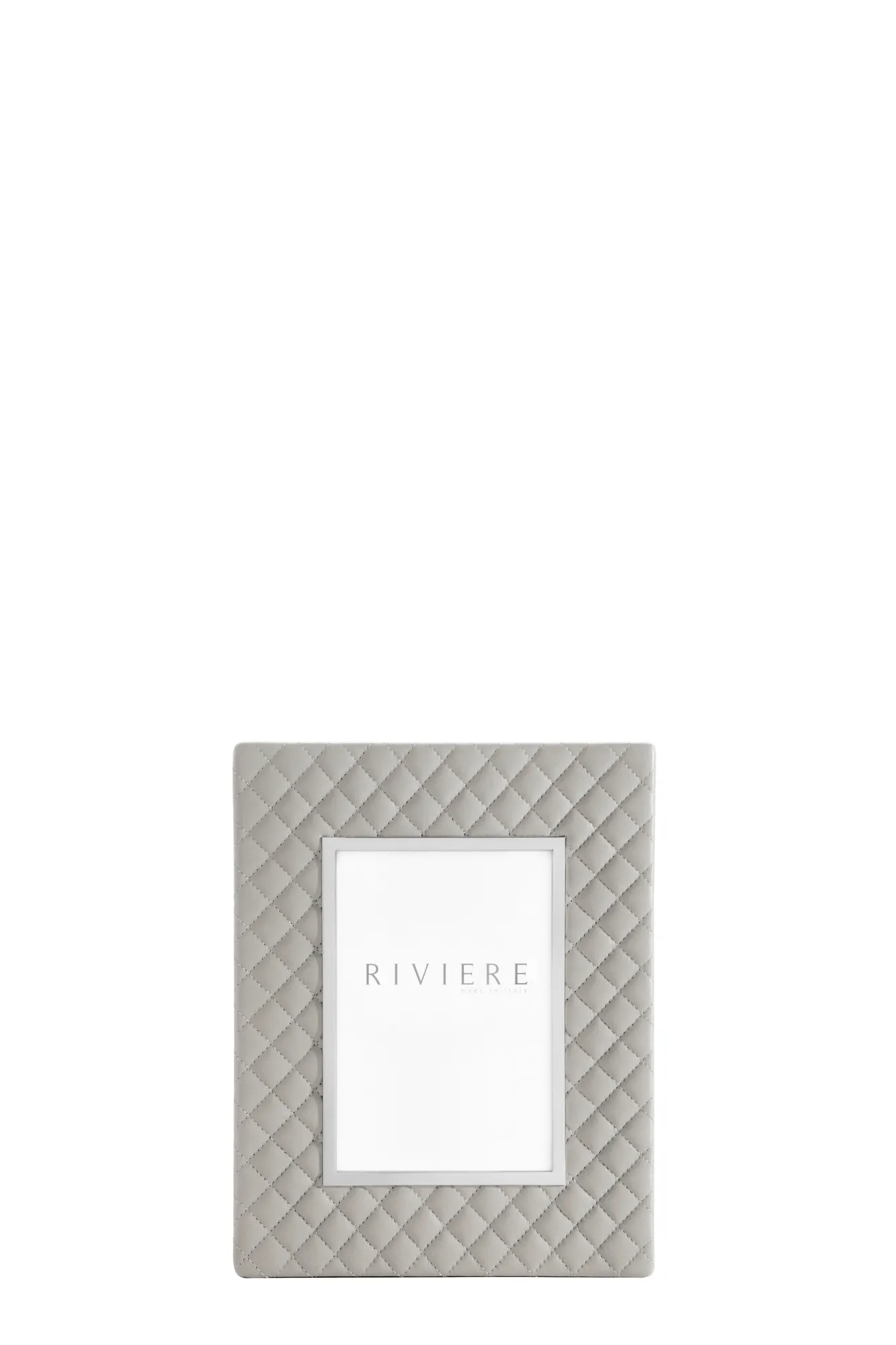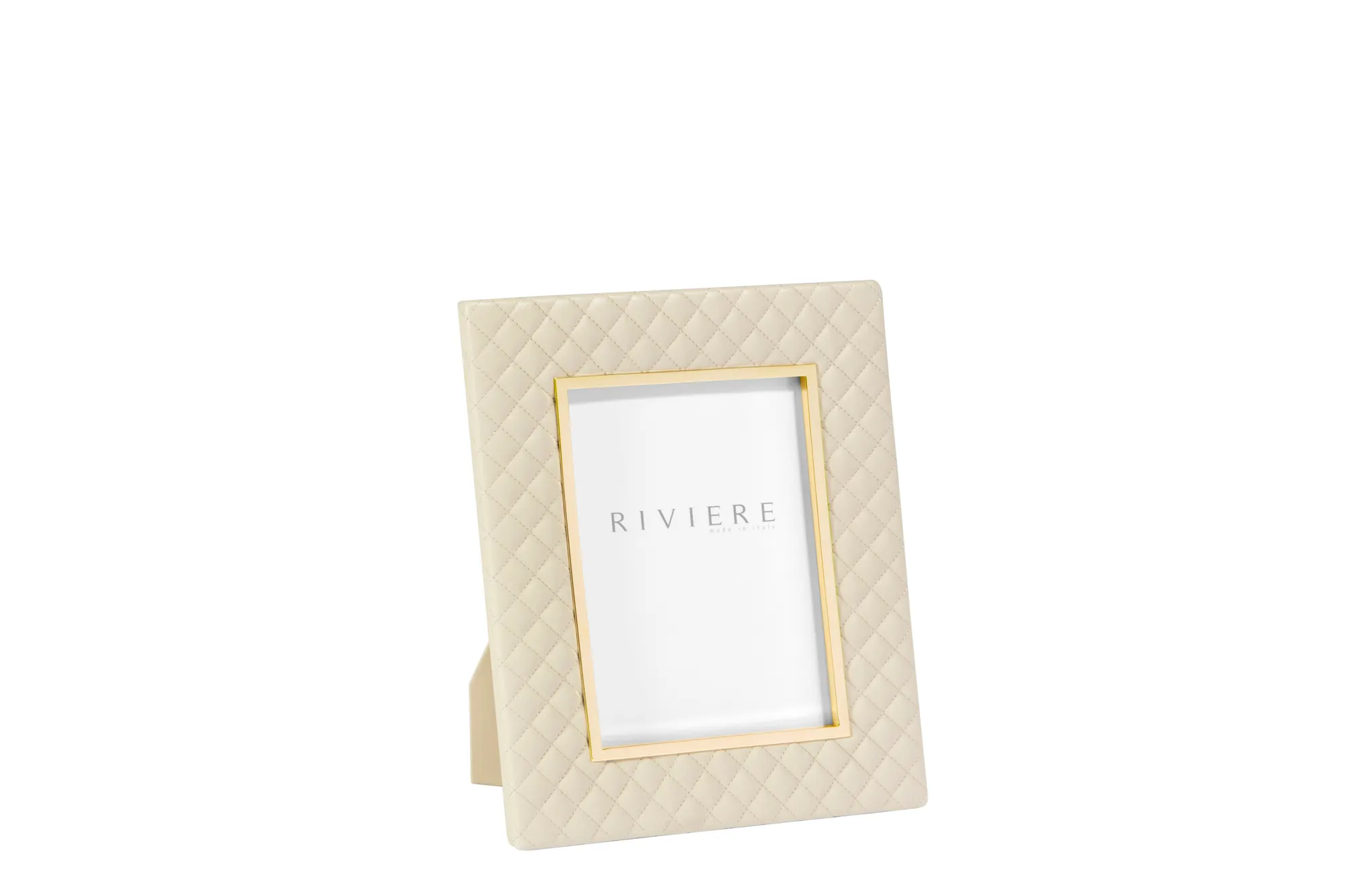 Quilted diamonds leather frame, chrome or gold metal trim.