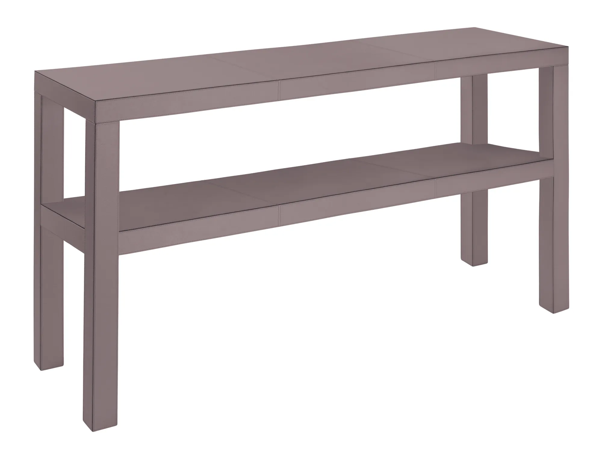 Leather covered solid wood structure.
