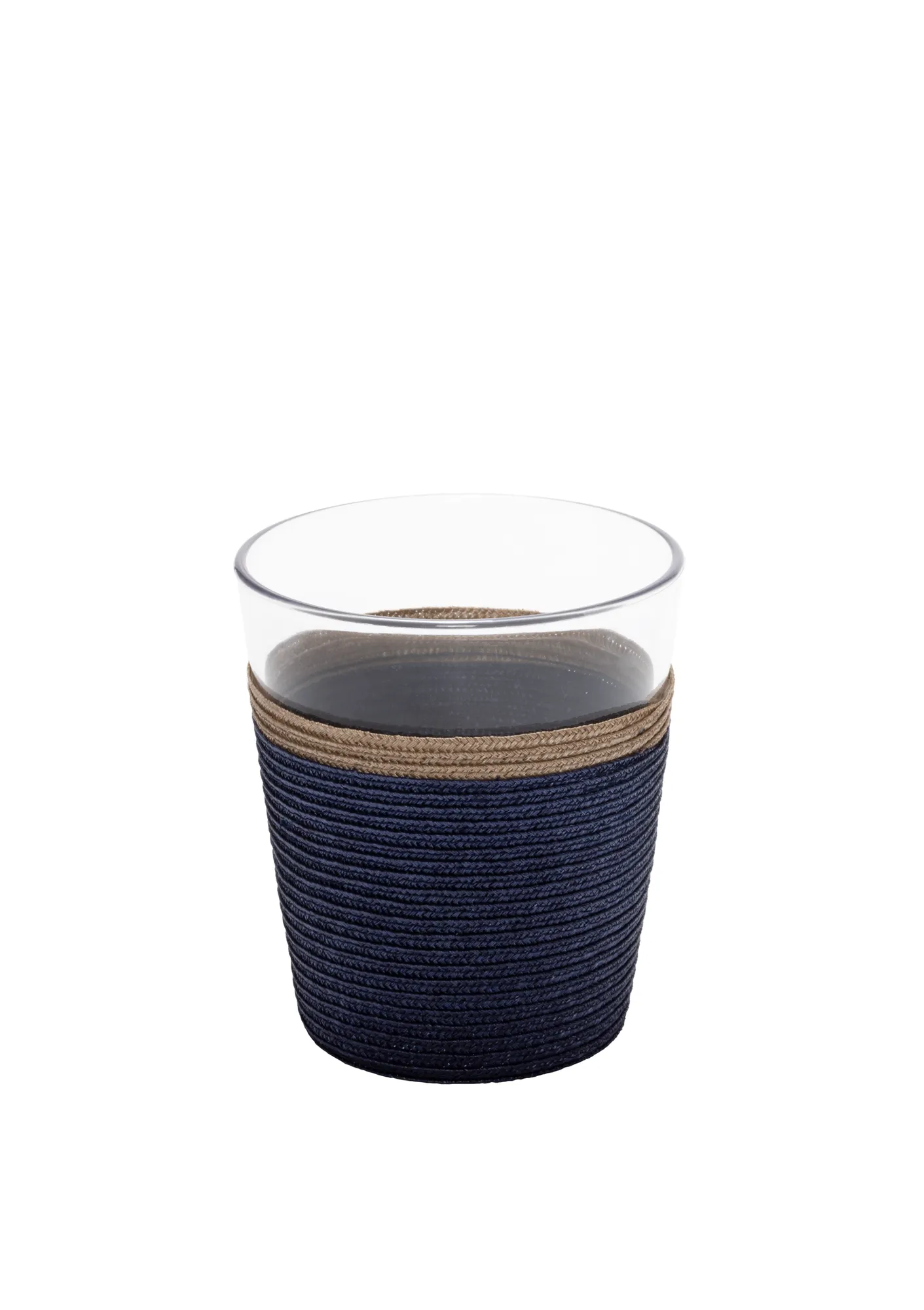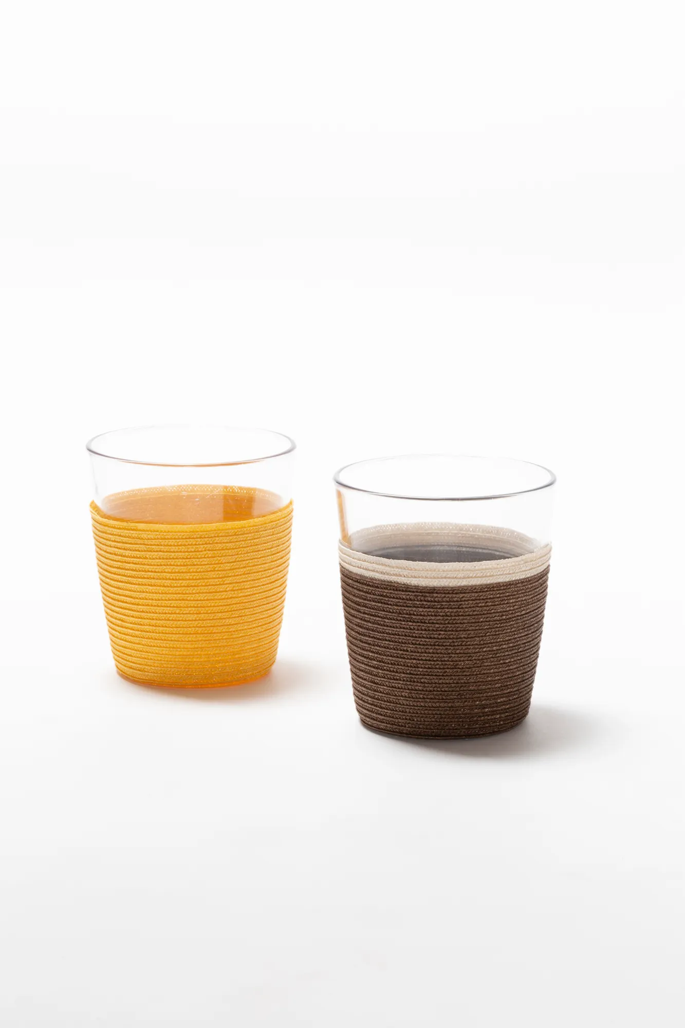 Transparent plastic glass partially dressed in Techstraw. The cover can be removed for an easy cleaning.