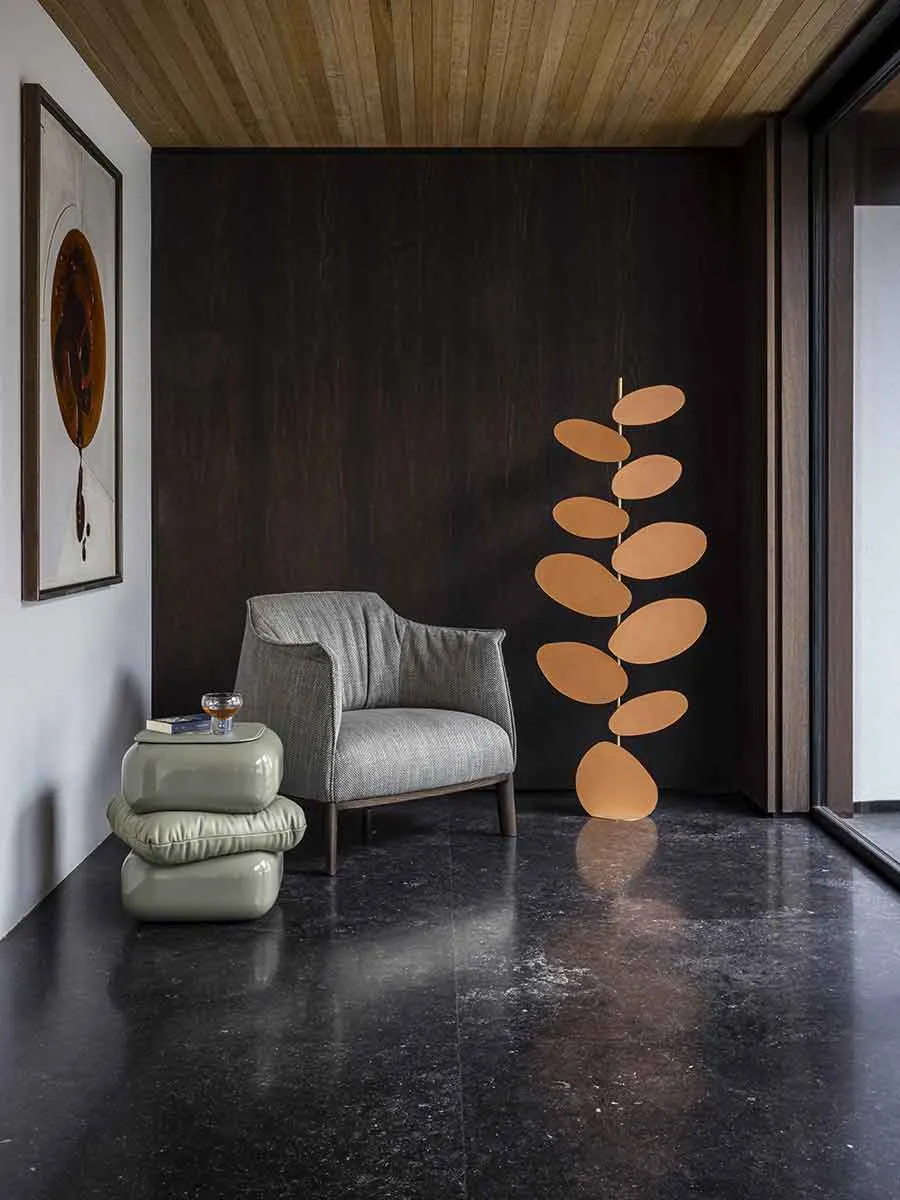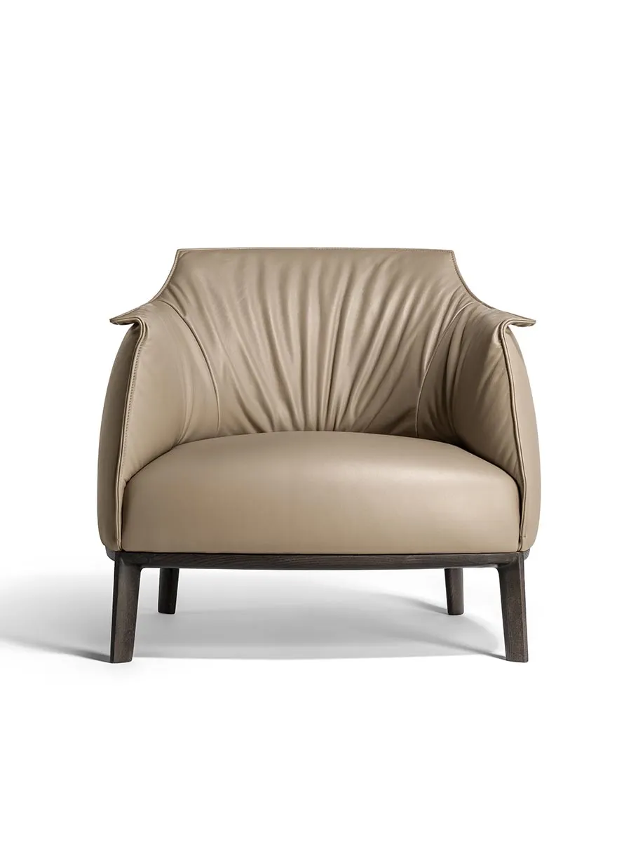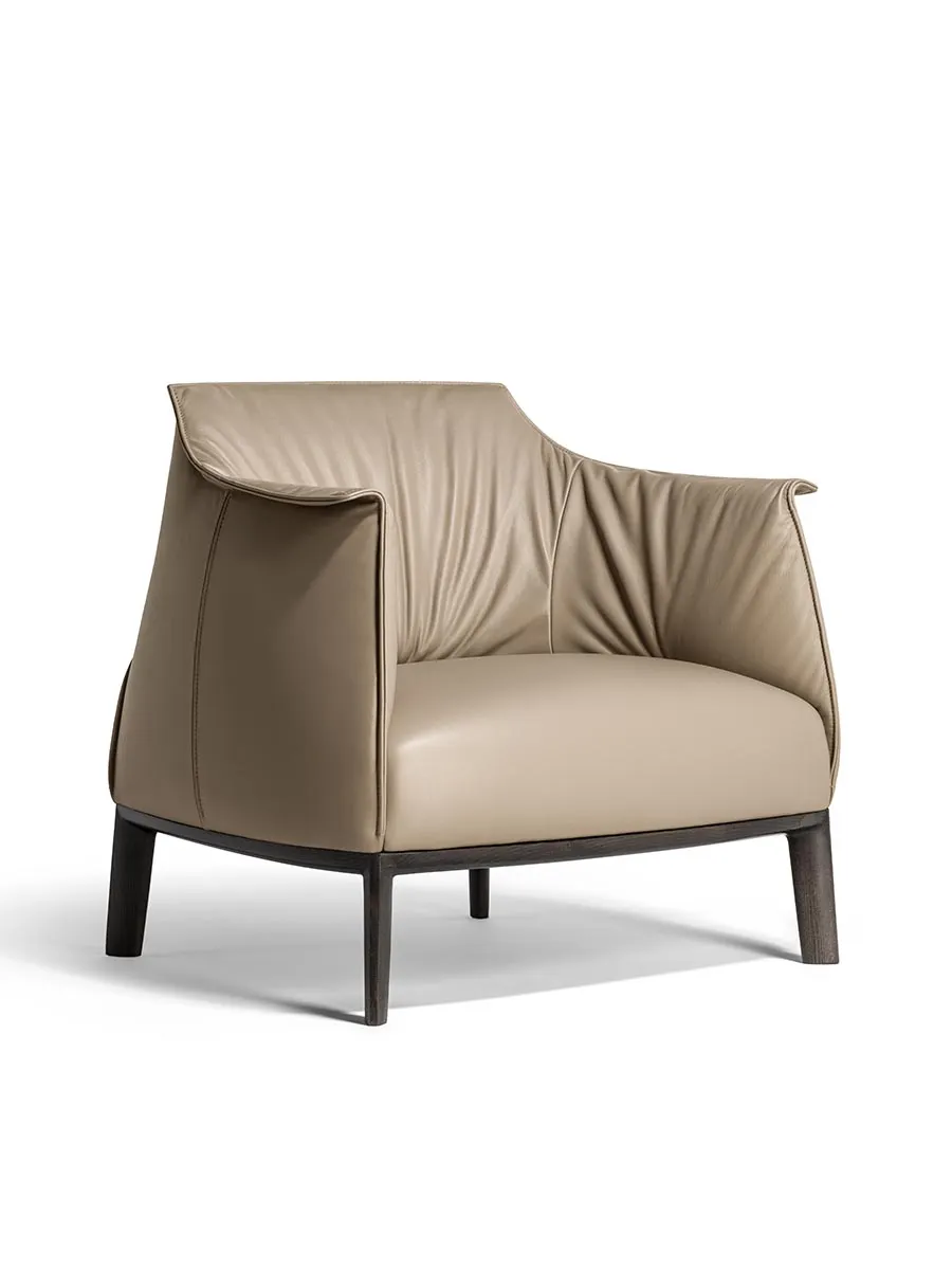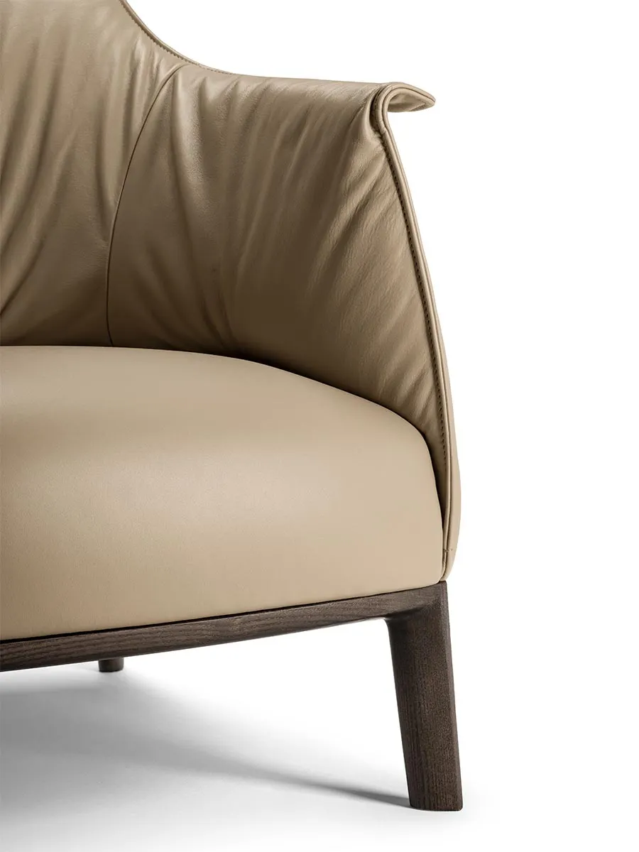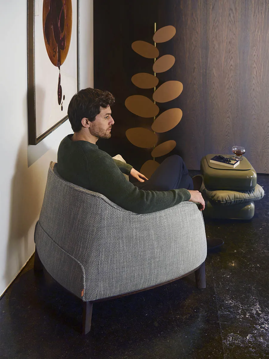The Archibald seatings by Jean-Marie Massaud are the perfect combination of substance and form. The Archibald collection boasts a comfortable and enveloping design ideal for meditation and relaxation. The breadth and depth of the seat is balanced by the thin feet, which give an agile and slender overall effect. In the Archibald armchair upholstery, pleasantly wavy with its series of vertical folds, is embellished along the edges and external surfaces by contrast stitching, giving it an extra touch of refined elegance.