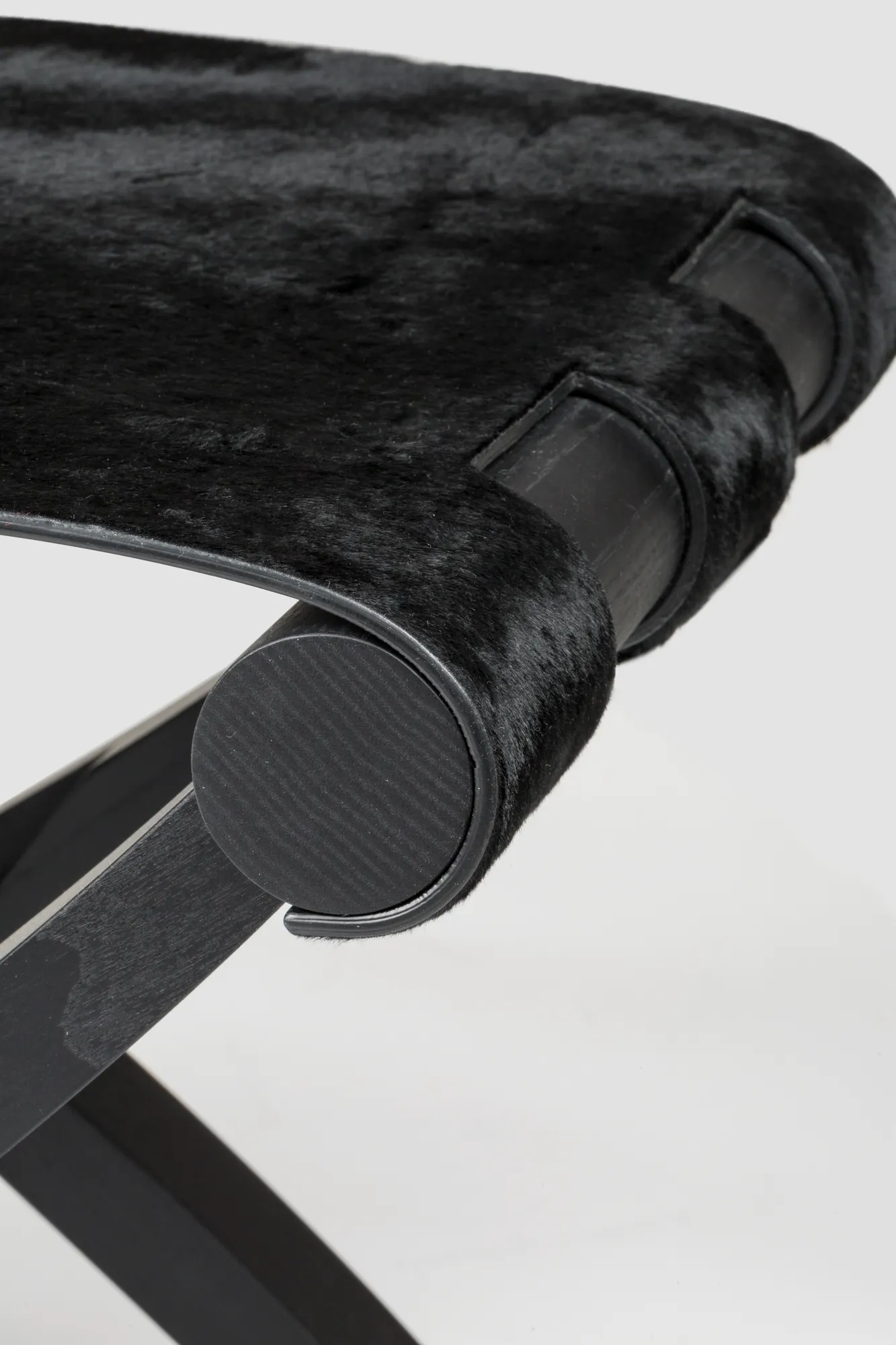 Sturdy oak folding stool with leather seat and brass joints. Ideal for luggage. Also available in antelope leather or merino sheep leather (grey / black).