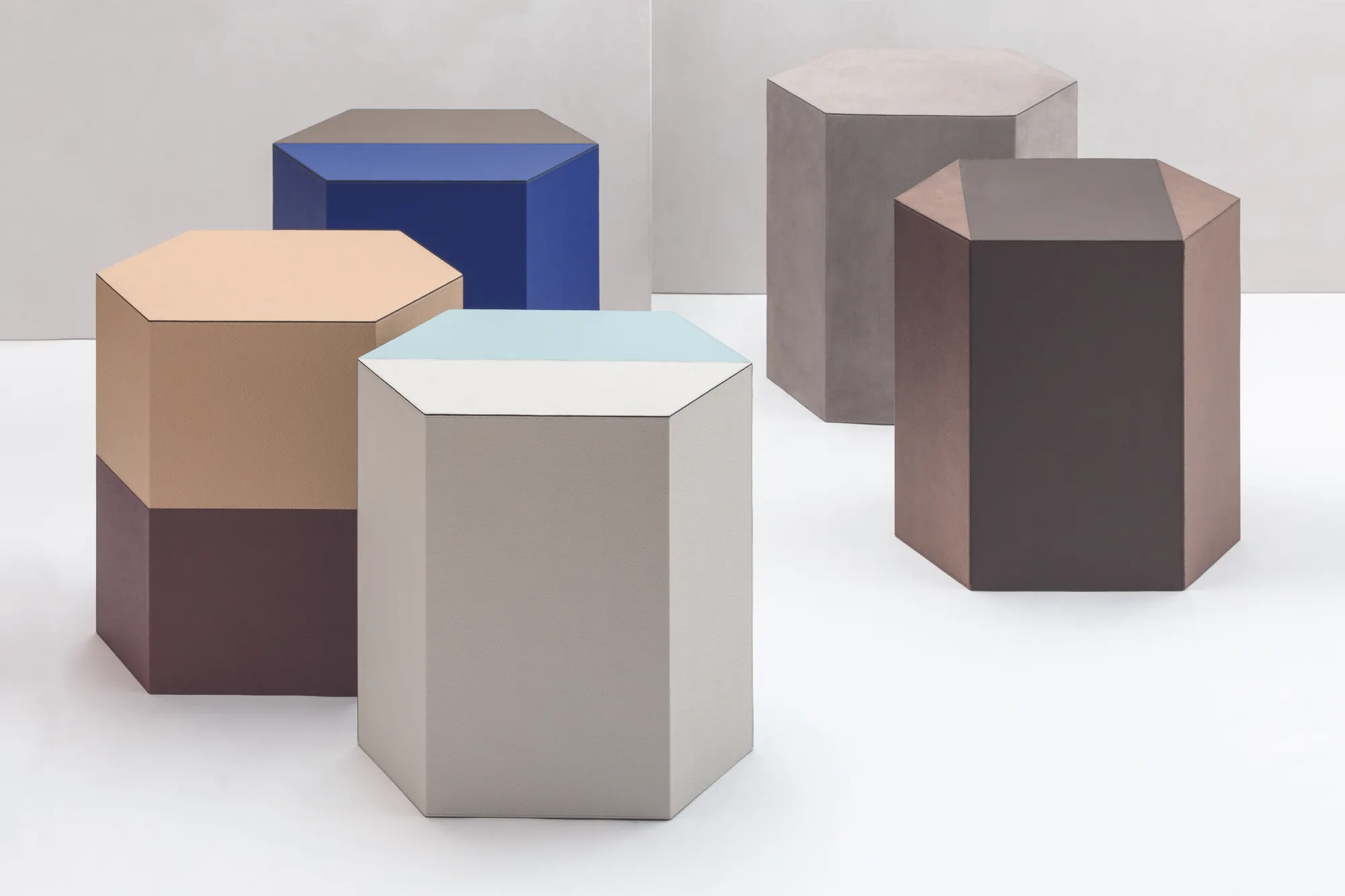 Inspired by the basalt natural formations, these stools and side tables on wheels can be matched at will to create infinite geometries, simple and elaborate at the same time.