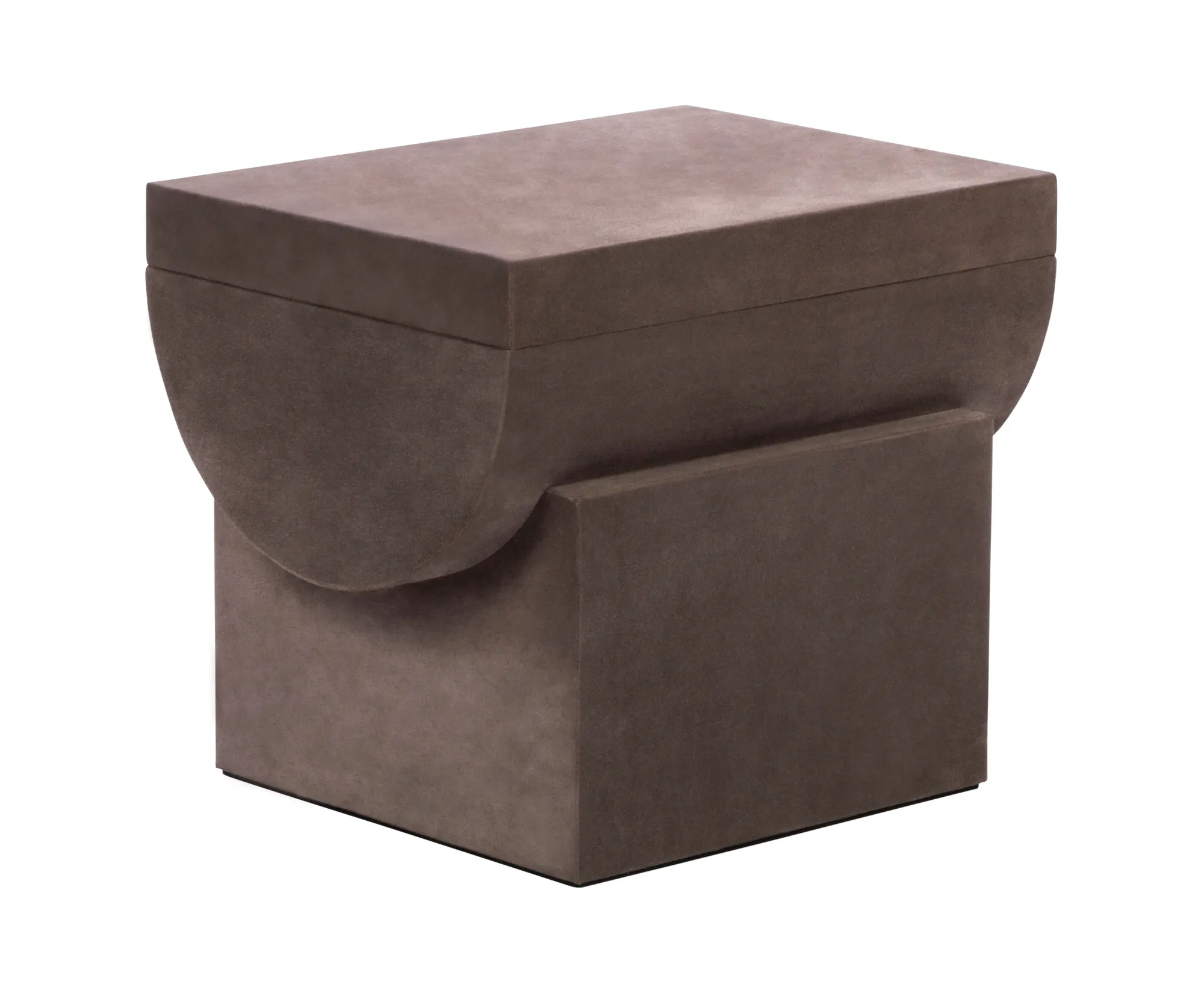 The often-quoted dictum pronounced in 1756 by Johann Winckelmann on the 'noble simplicity and quiet grandeur' of Greek art is captured here in leather-covered column elements set atop simple bases that together express a solemn timelessness.