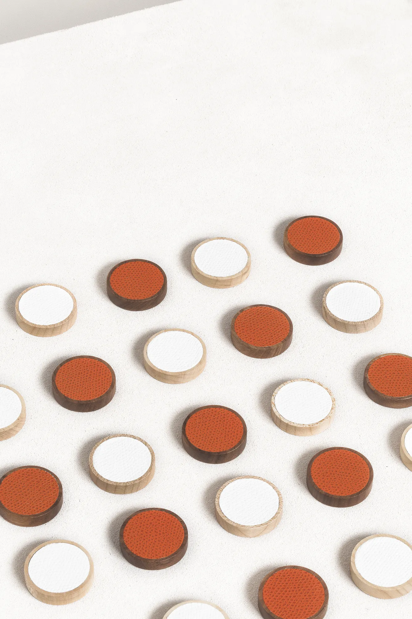 Maple and walnut wood checkers can be upgraded with a fine leather inlay.