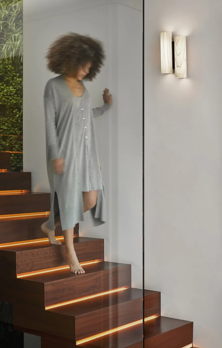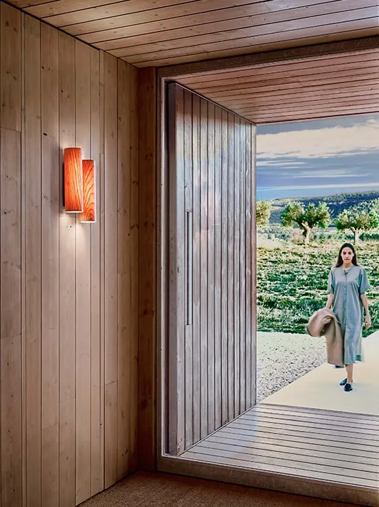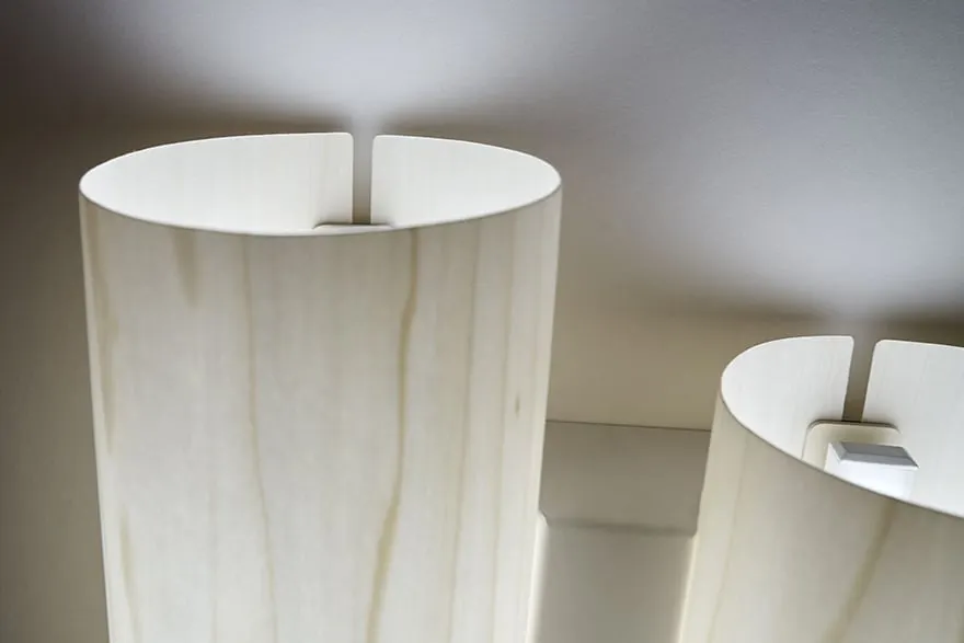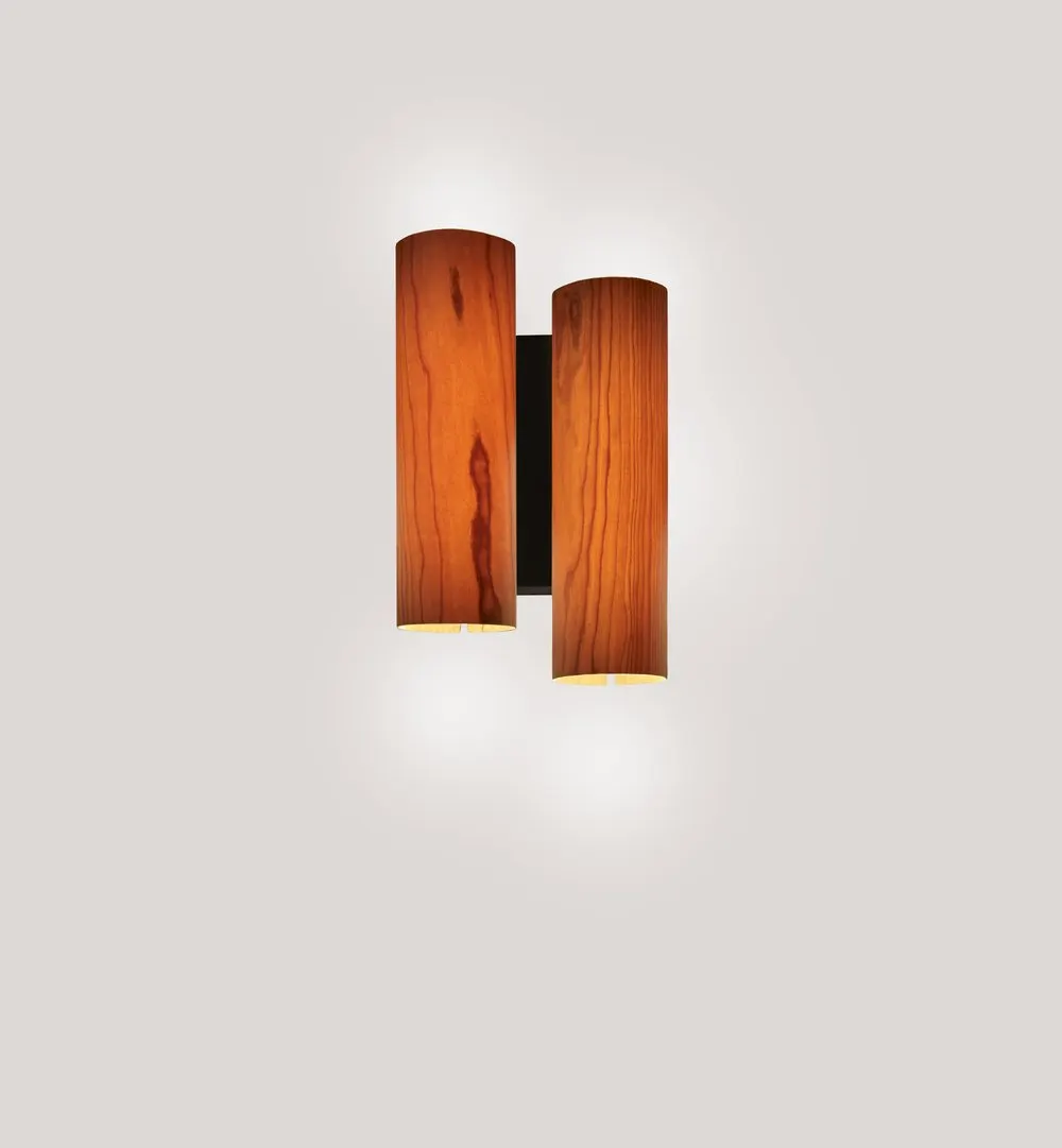 BLACK NOTE DUPLET THE RHYTHMIC LIGHT. Designed by Ramón Esteve, Black Note is an architectural lamp whose perpendicular shades rise and fall in harmony. Black Note’s rhythmic arrangement is inspired by a piano’s black keys, their sharps and flats used to add a dramatic effect. The Black Note Duplet Wall lamp places two upright wood veneer shades side by side, the left shade sitting slightly higher than the right. The smallest lamp in Ramón Esteve’s Black Note collection, the wall lamp is eye-catching nonetheless. Black Note Duplet Wall is available in three wood veneers: Natural Cherry, Ivory White and Natural Beech. Its metal finishes are Matt Black and Gold.