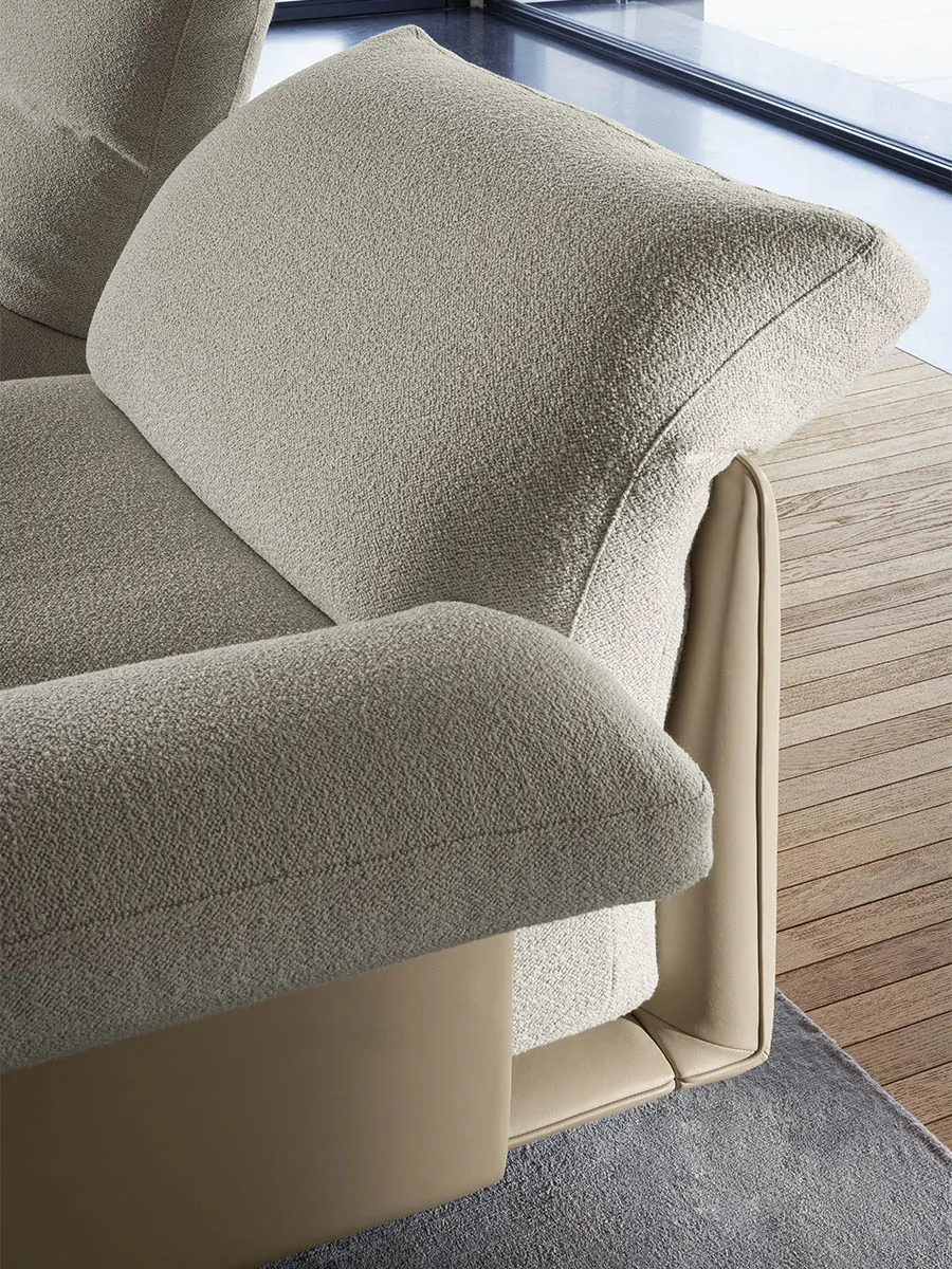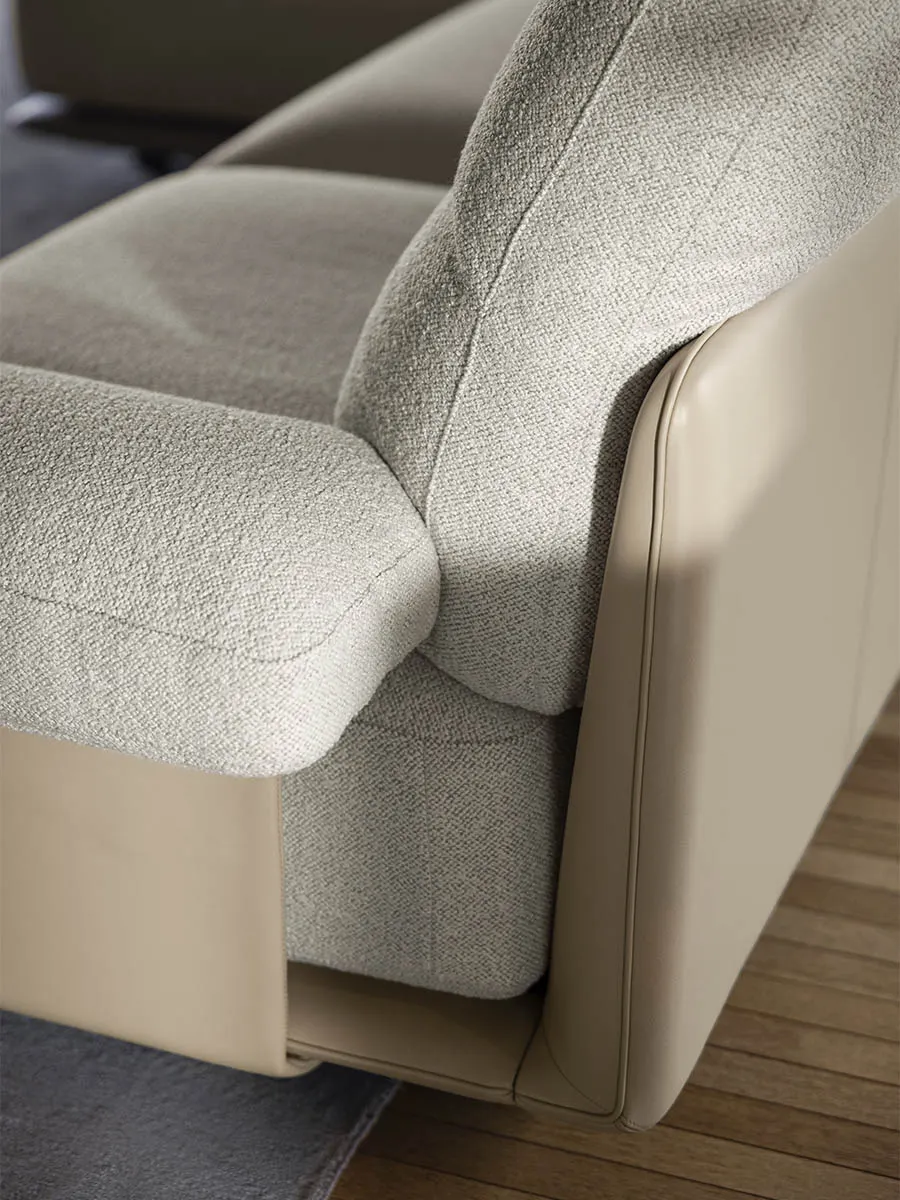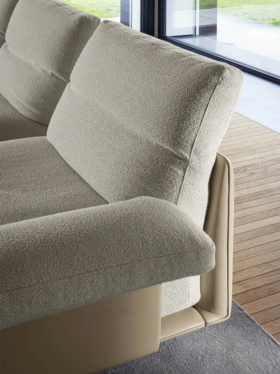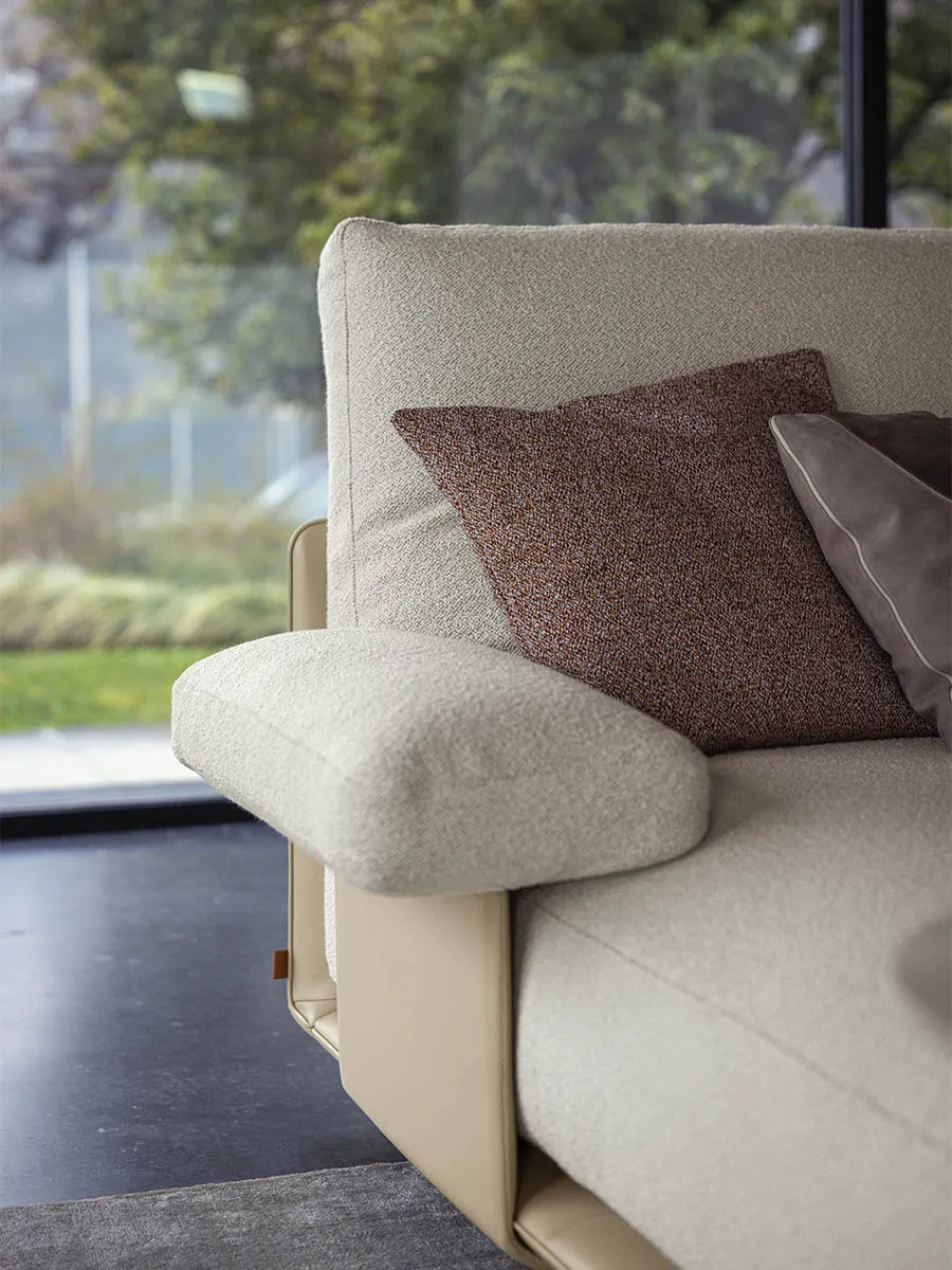 The name comes from “Bliss + Escape”, meaning “a blissful getaway”. A perfect definition for this seating system designed by Ludovica Serafini + Roberto Palomba, which embodies the essence of modern-day comfort and well-being. The Blisscape sofa and pouf are in fact defined by an elegant, sculptural leather structure that serves as the base for soft, welcoming cushioning. They are characterized by generous padding, resting on a Pelle Frau® leather base that appears to float just a few inches above the floor. The Blisscape collection is modular and customizable, offering multiple configurations to suit any space or lifestyle needs.