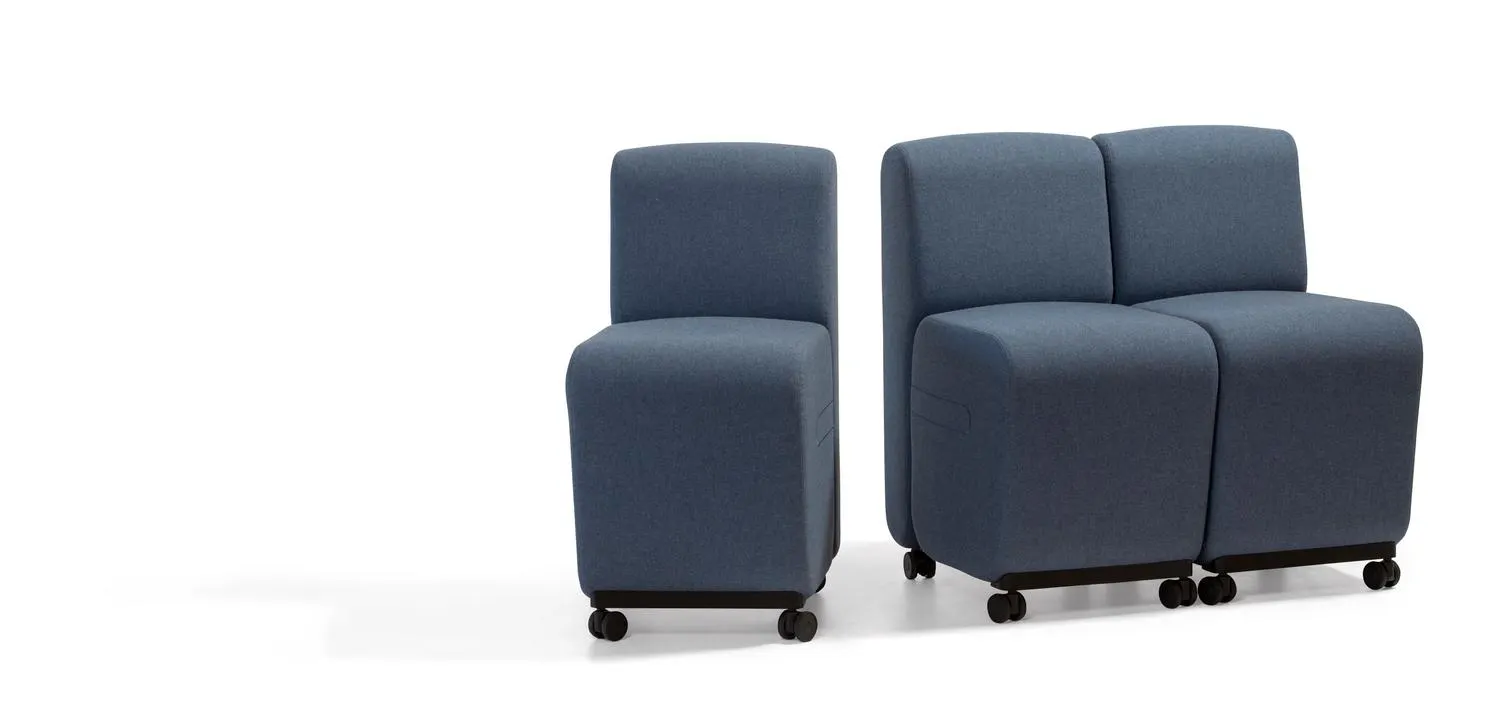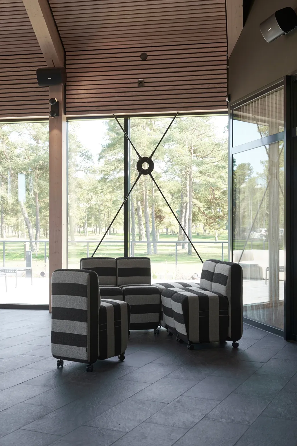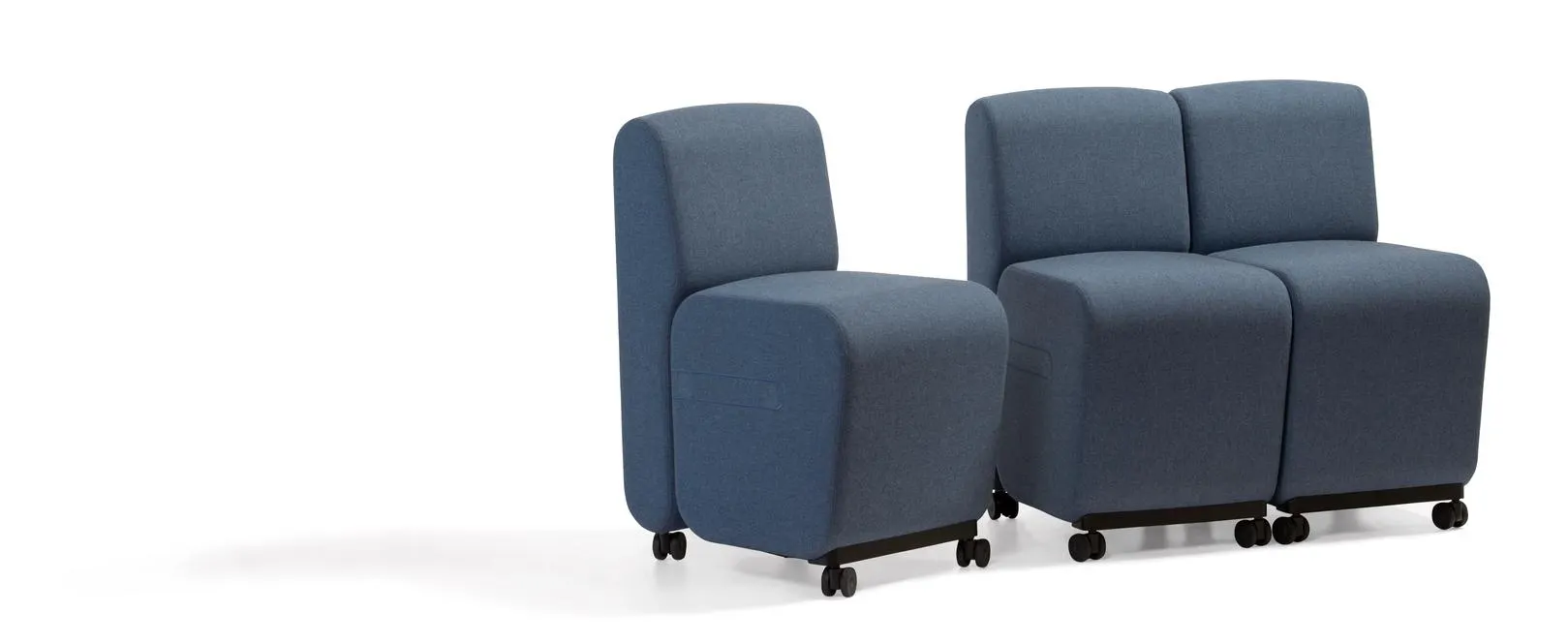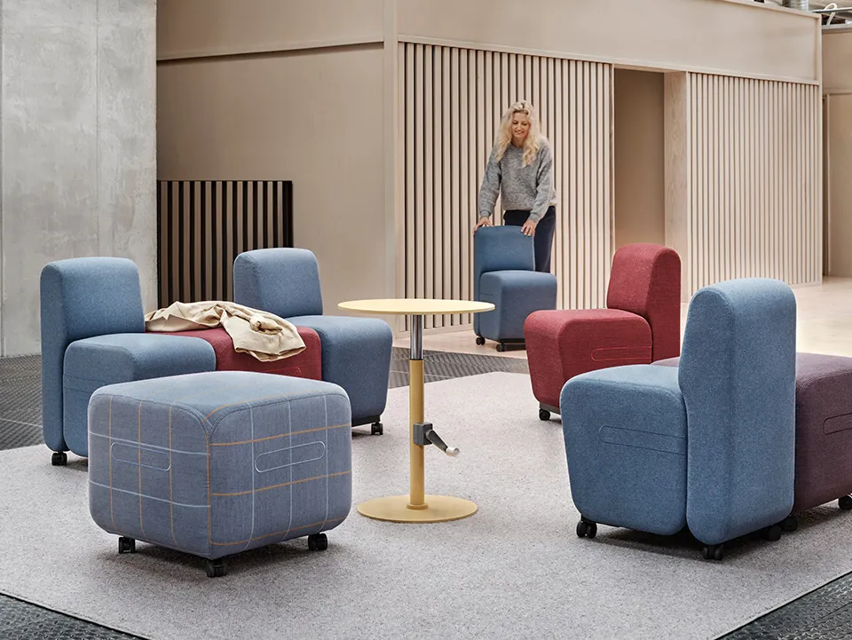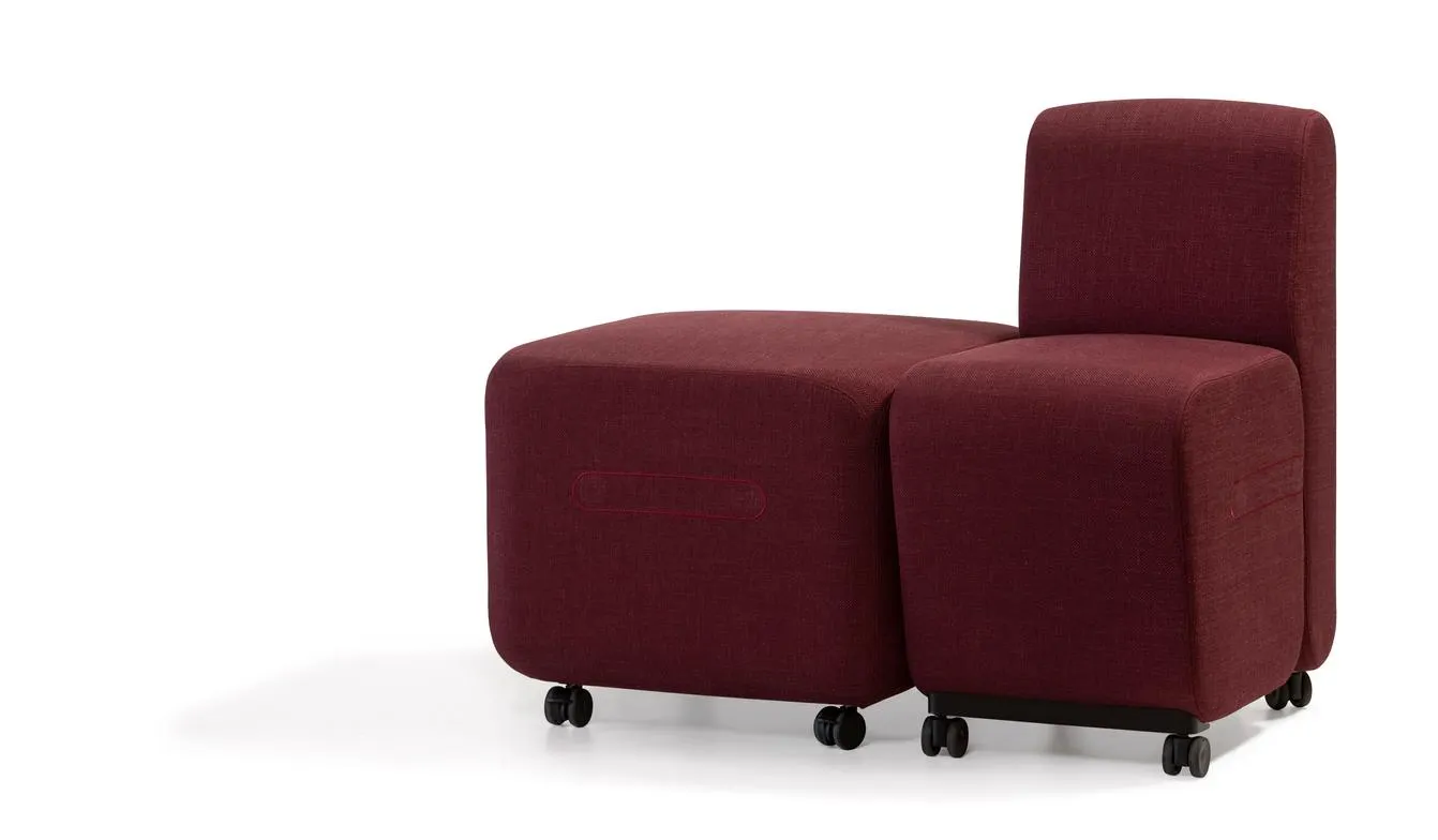 There are places where you haven't really decided on just one area of use, places you want to be able to rearrange quickly and easily to meet other needs than those you just had. Maybe connected chairs should be separated and function as conversation chairs after the talk is over. Perhaps a room should change from the daytime activity to the evening events. Bobby is a chair, a sofa and more, always with magnets and now with the option of castors as well. Together with the puff Bobban, Bobby becomes even more flexible. BOBBY X & BOBBAN X UNLOCKS THE FULL POTENTIAL OF THE ALREADY VERSATILE FURNITURE FAMILY The new smooth castors combined with strong and easy to use magnets creates a flowing experience paired with multiple use capacity. Bobby X and Bobban X will satisfyingly snap together thanks to strong magnets and invites everyone to participate and be extra creative with the seating arrangements. A configuration can be rearranged in a heartbeat either in different groups or to standalone solitaires. The smooth castors make this playful process even easier and highlights the core idea of the rearrangeable system further. The castors are lockable to ensure stability when a configuration is selected. The increased seat height makes it perfect for conference or hospitality areas.