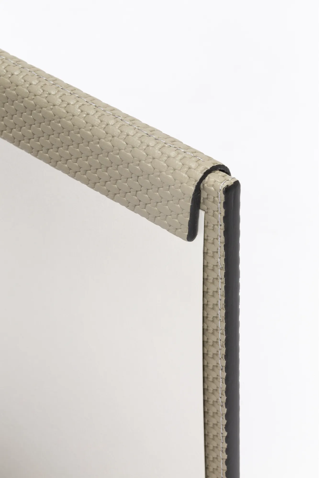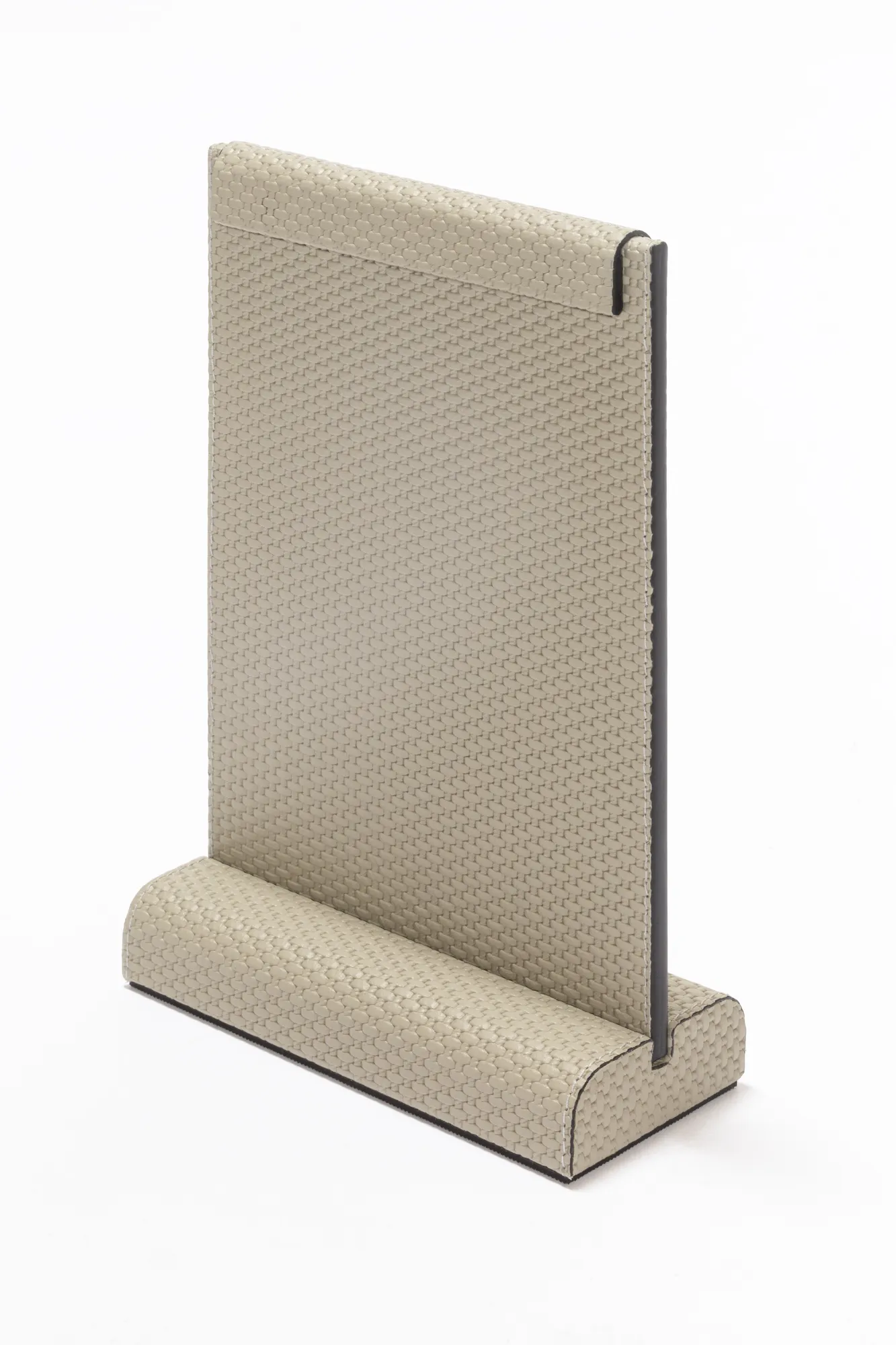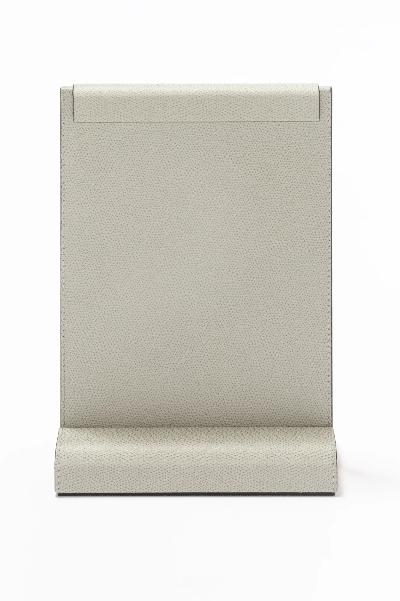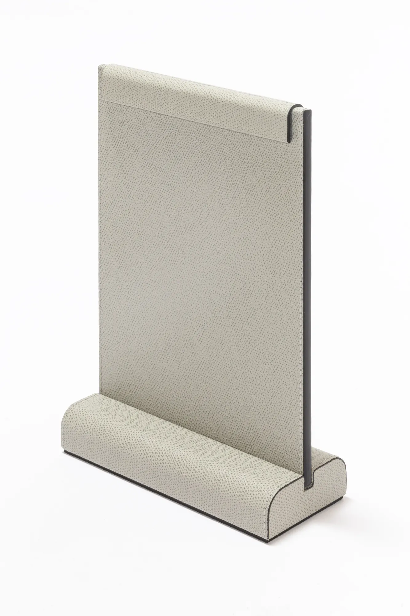 Leather covered wood structure with leather covered heavy magnetic flaps.