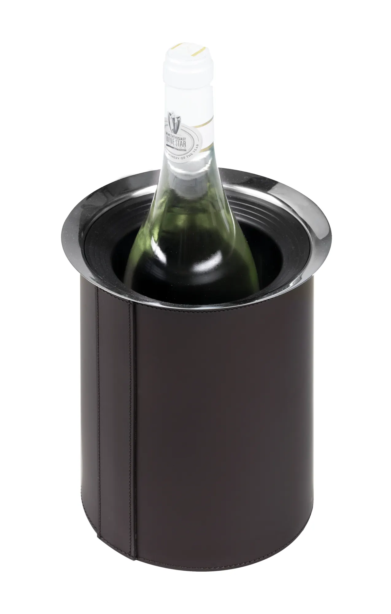 Finest regenerated leather structure with water-resistant and UV-resistant finish. Non-slip waterproof rubber base underneath. Removable stainless steel inner container for easy cleaning. Works with 4 reusable ice packs, included.