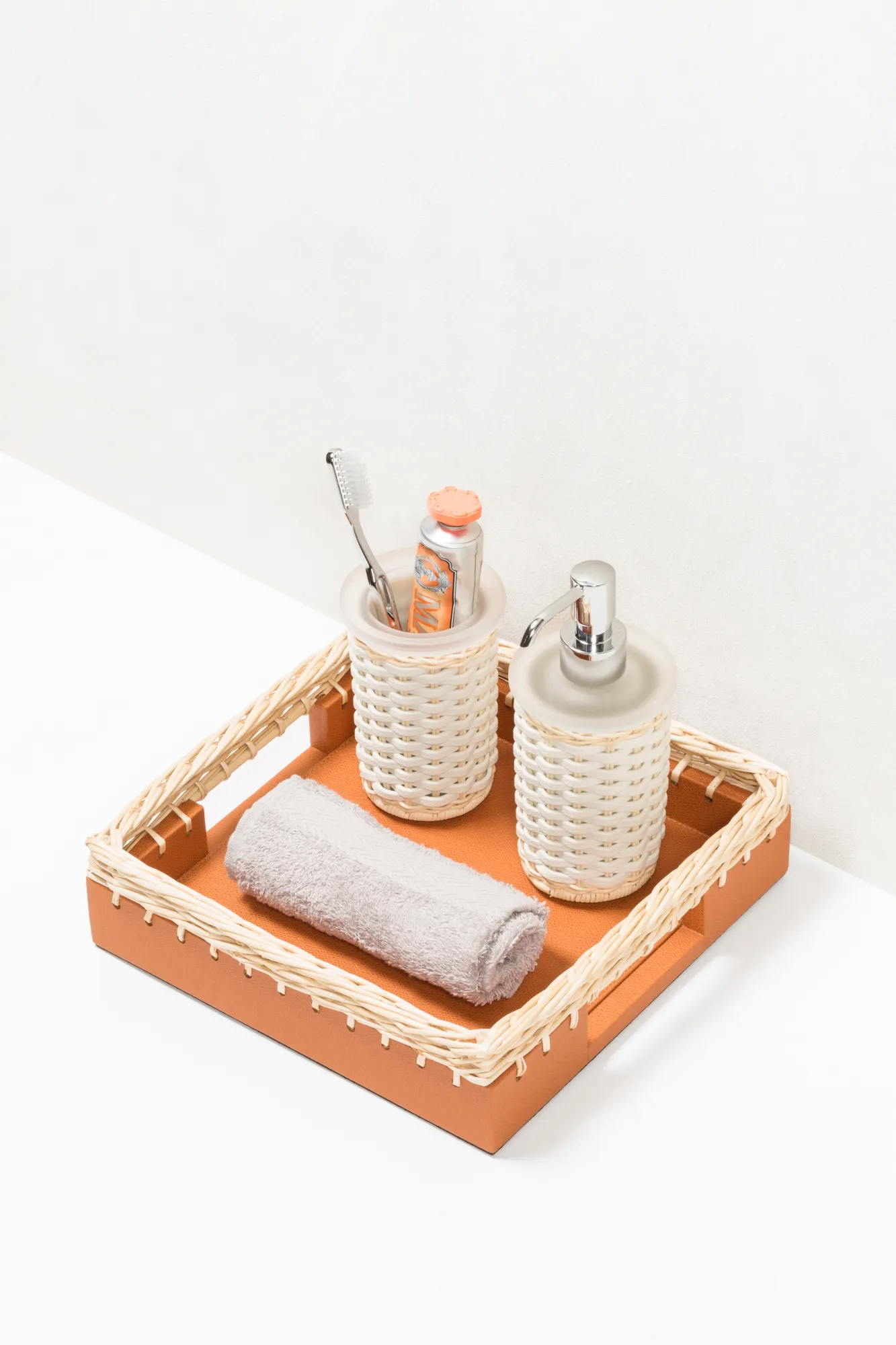 CALAIS LEATHER & RATTANSOAP DISPENSER