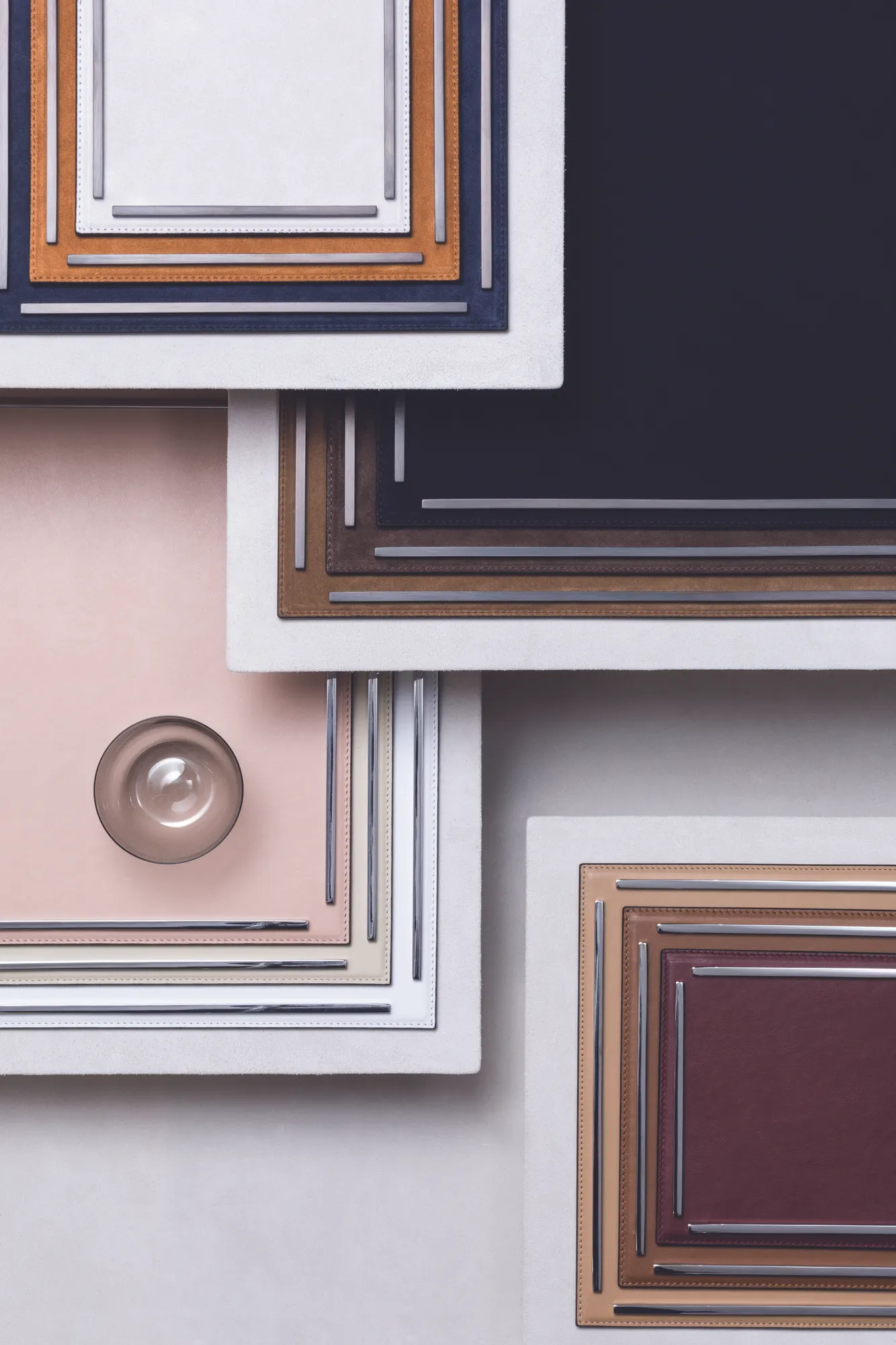 Leather covered metal structure with metal frame.