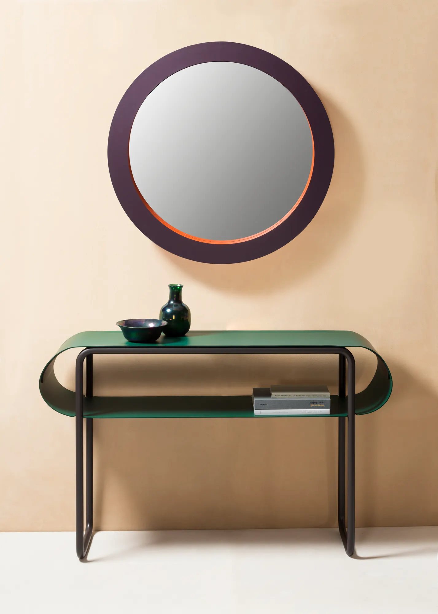 Wall mirrors featuring a wood frame covered with the finest regenerated reinforced leather, provided with a water-resistant and UV-resistant finish. It is possible to choose any color combination from our chart for the mirrors' bicolor version.