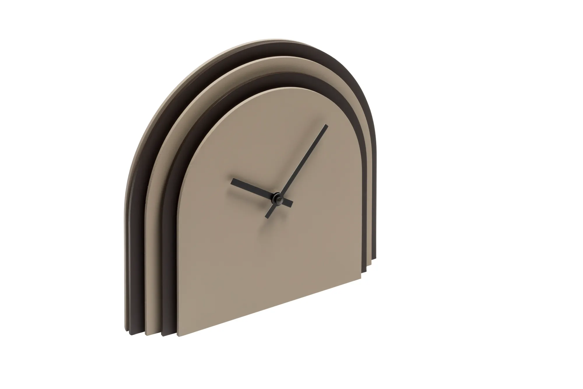 Desk clock made of several overlaying sheets of Tecnocuoio®. As a sort of miniature architectural element, it provides the shapes with rhythm and lightness by playing with color, repetition and shadows that generate between one layer and the other. It is possible to choose any color combination from our chart for the desk clock's bicolor version.