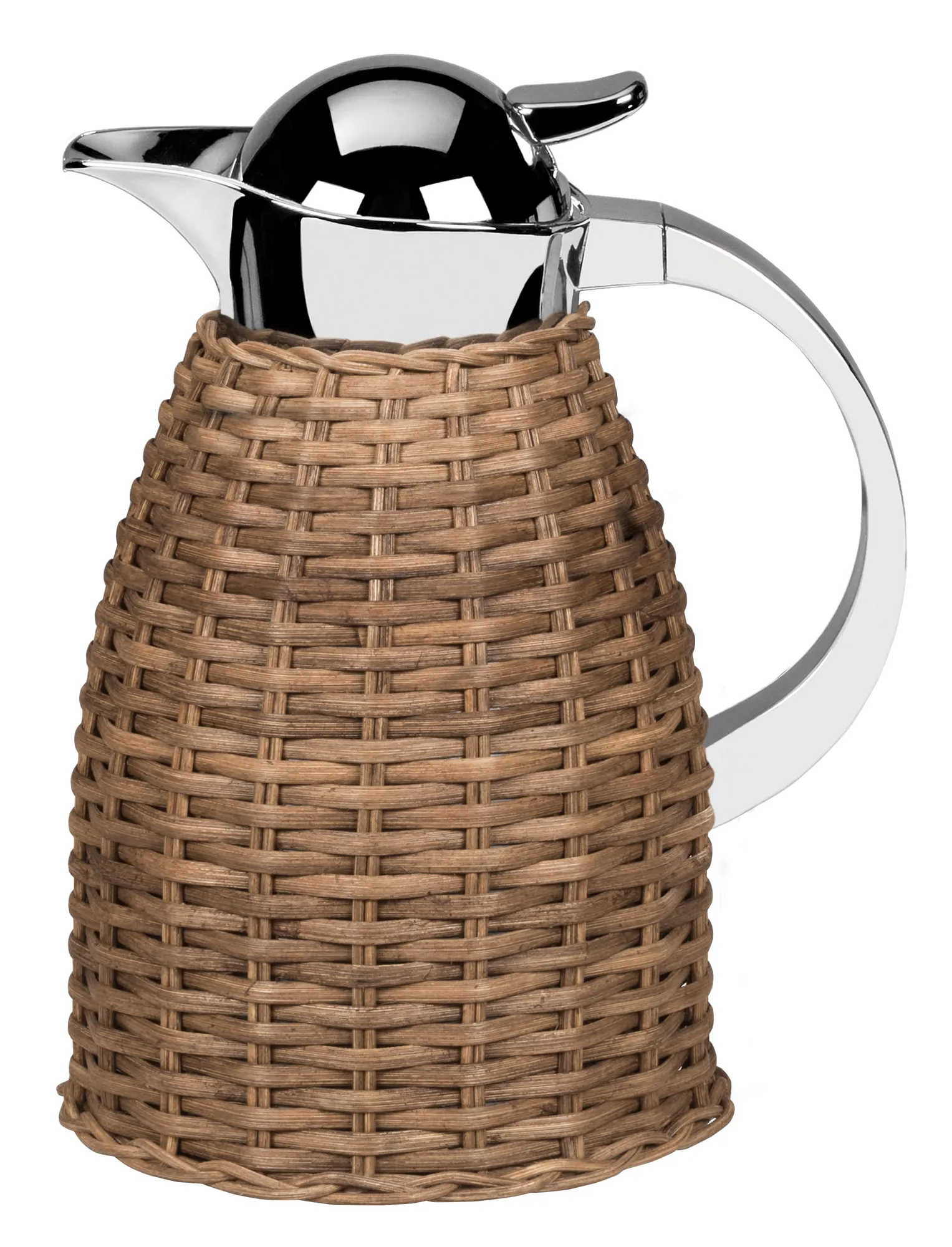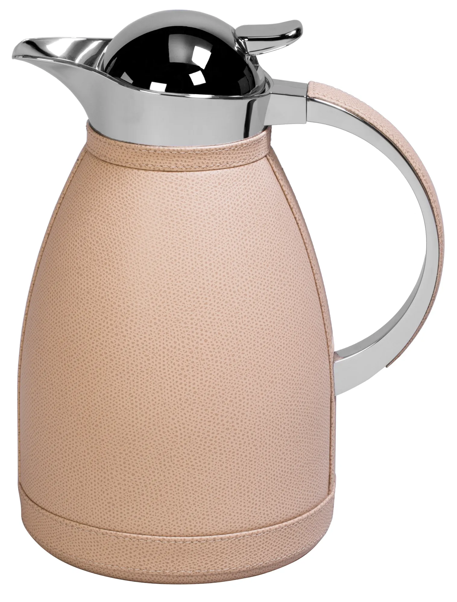 Partially leather covered insulated stainless steel carafes with chrome-plated finish. Two-chamber stainless steel structure able to maintain the liquid’s warm temperatures for up to 12 hours and cold temperatures for up to 24 hours. Precise pouring thanks to the specially developed lid with one-hand operation.