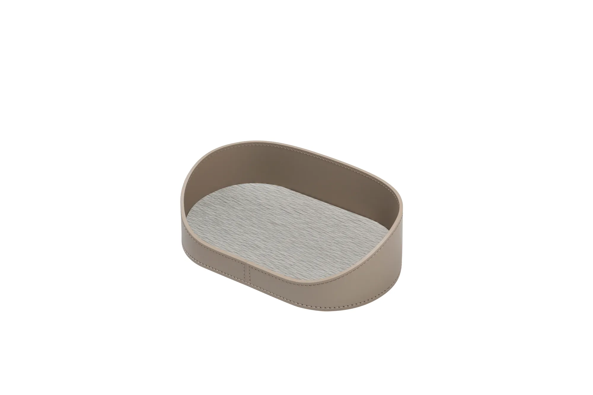Inner surface made of laminated wood and finest regenerated reinforced leather structure with water-resistant and UV-resistant finish. The juxtaposition of Tecnocuoio® and wood with unique textures generates a vibrant interplay of materials.