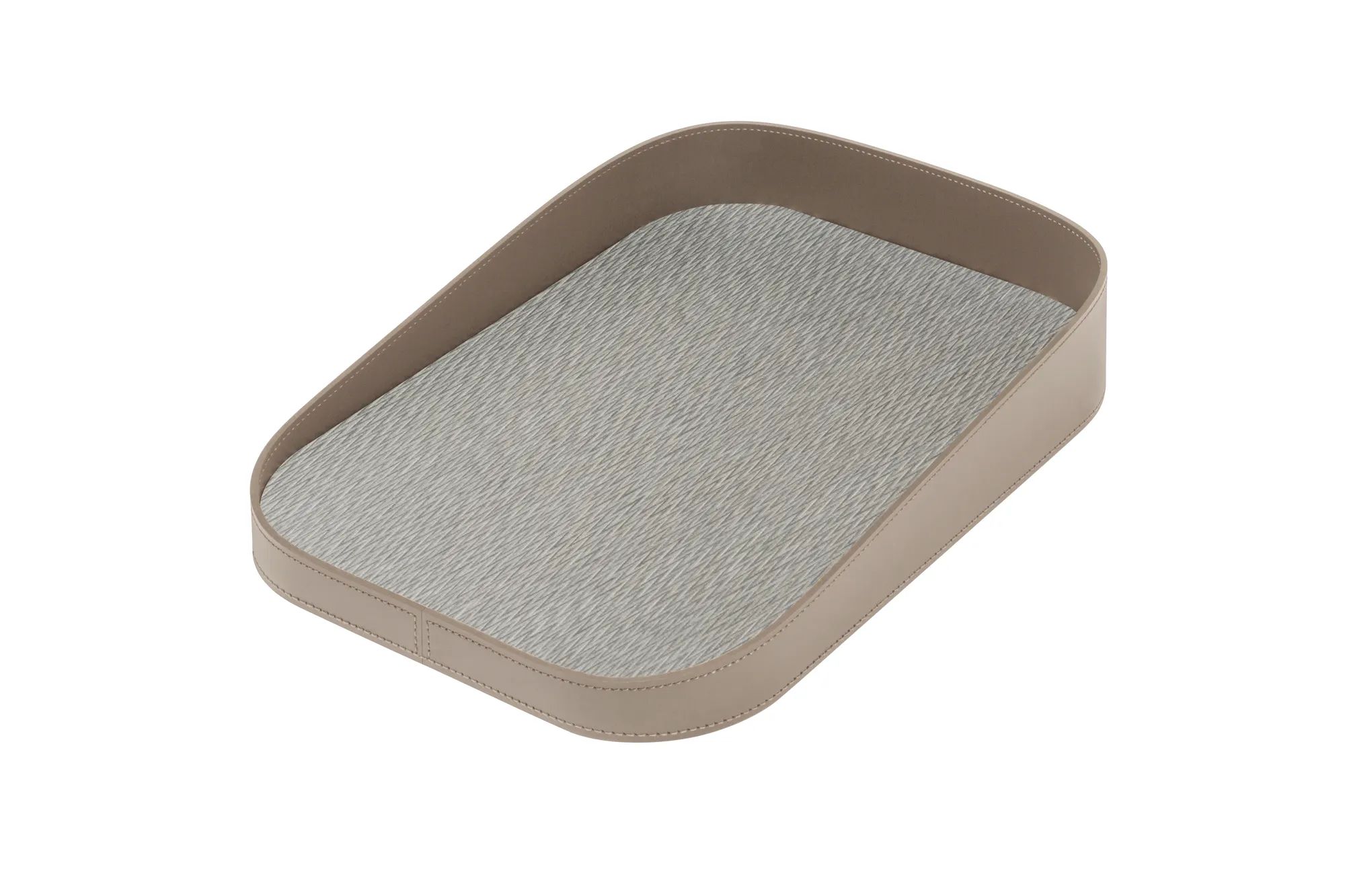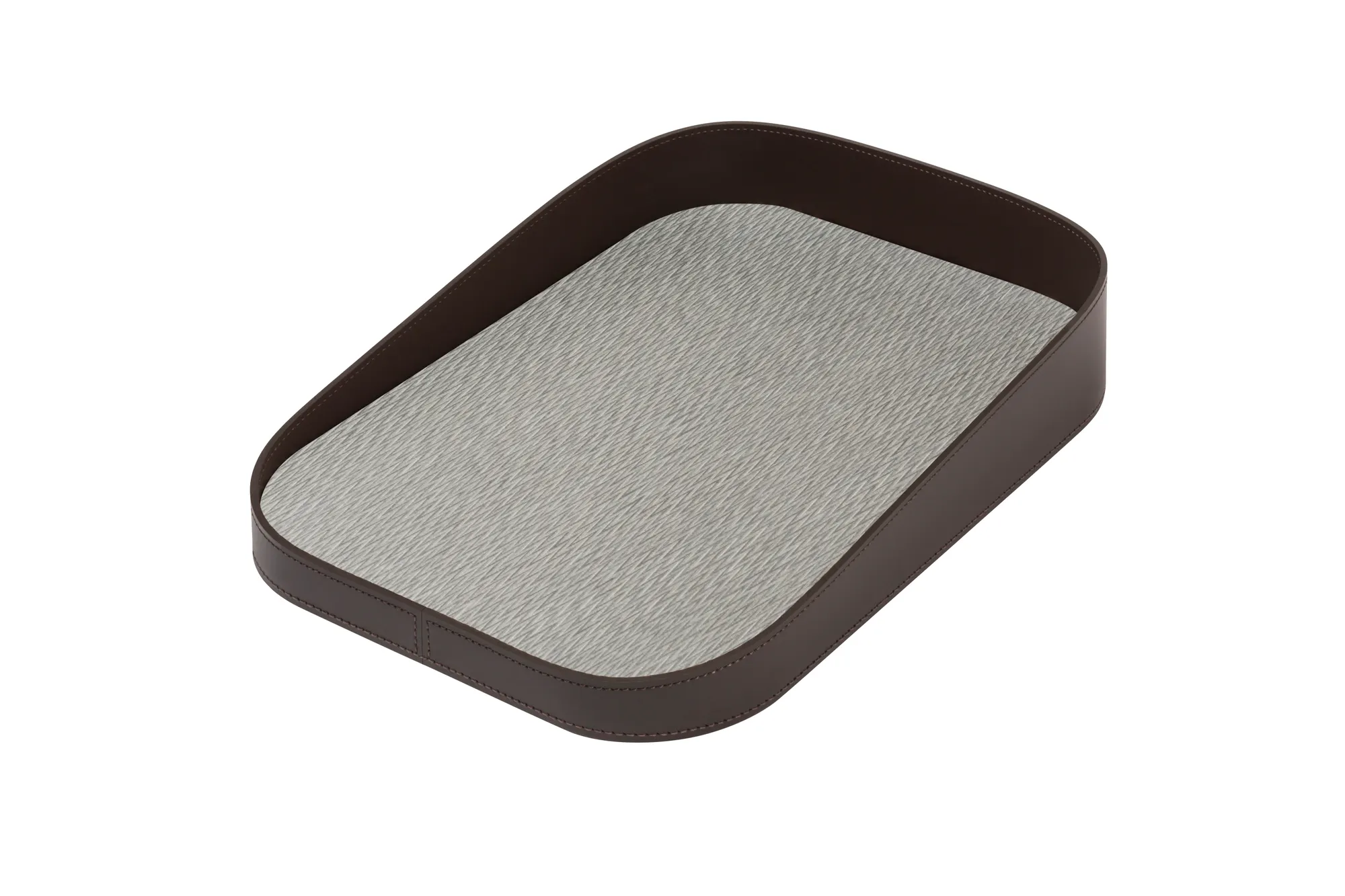 Inner surface made of laminated wood and finest regenerated reinforced leather structure with water-resistant and UV-resistant finish. The juxtaposition of Tecnocuoio® and wood with unique textures generates a vibrant interplay of materials.