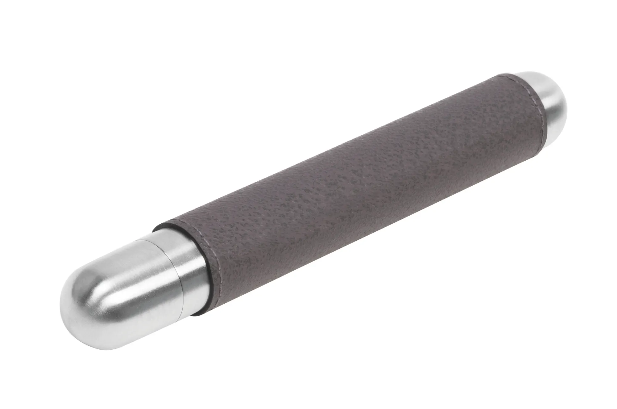 Partially leather covered stainless steel cigar holder with satin finish. Includes mini humidifier from high-grade steel.