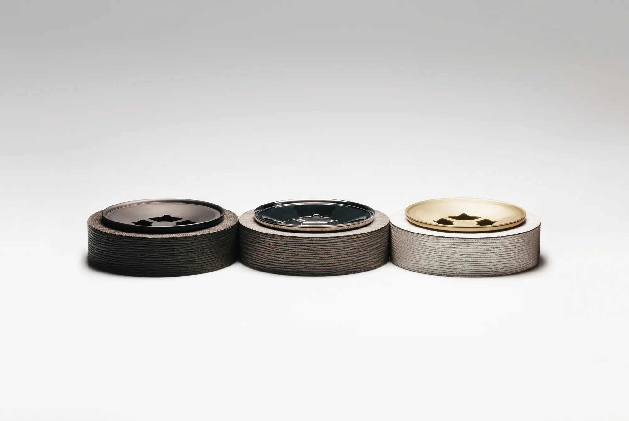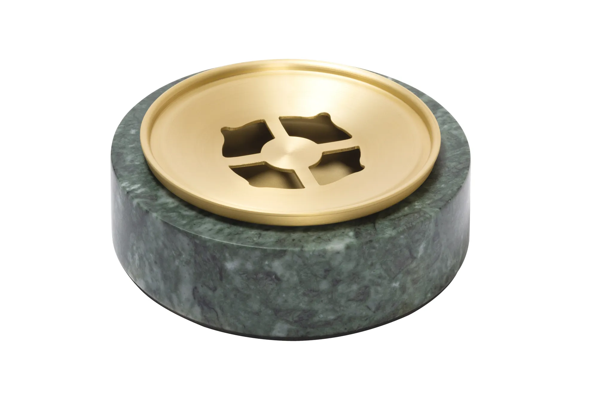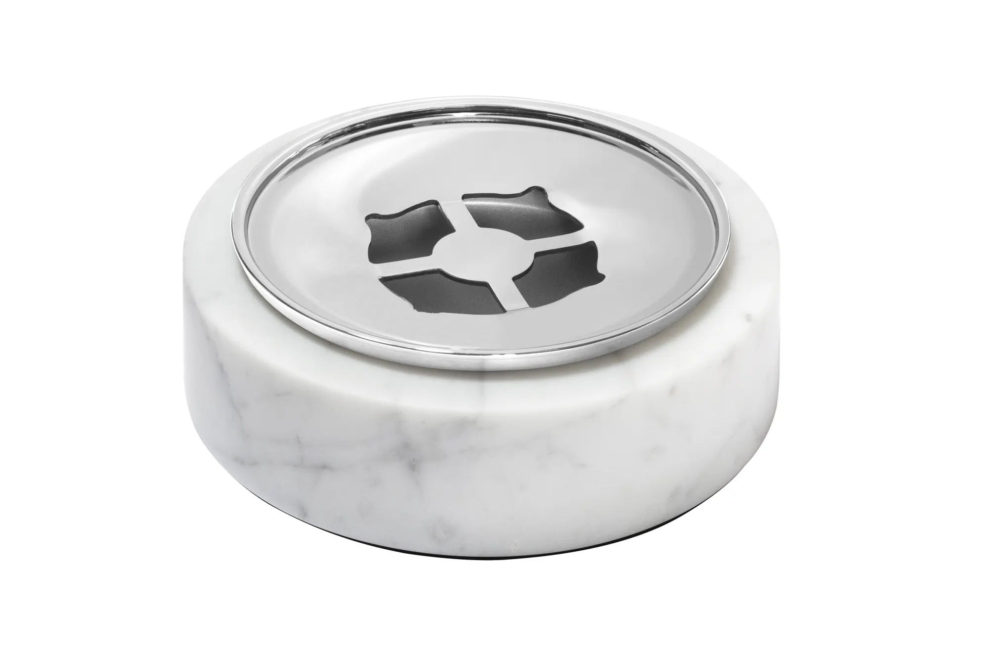 Leather covered wood structure. Removable brass ashtray available in three finishes.
