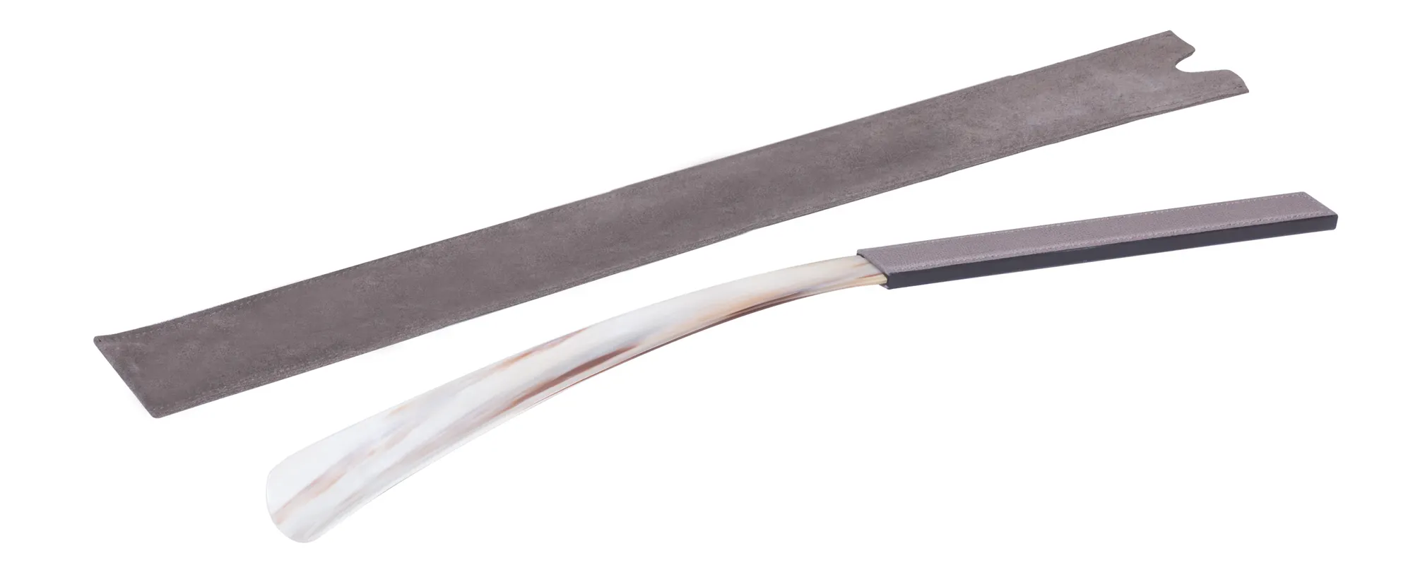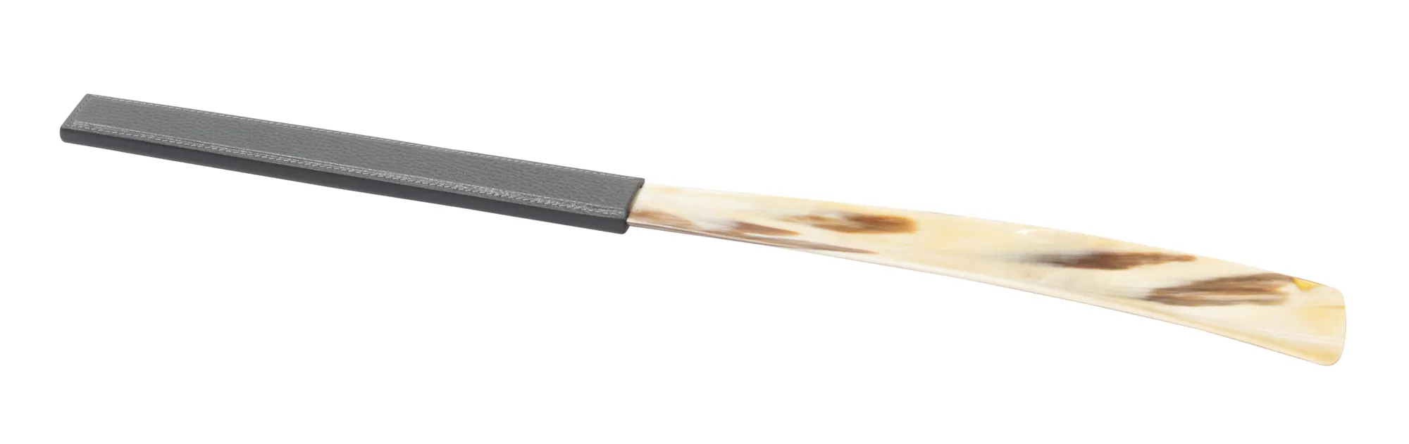 Buffalo authentique horn and leather handle. Each horn is different from the others. Comes together with suede packaging.