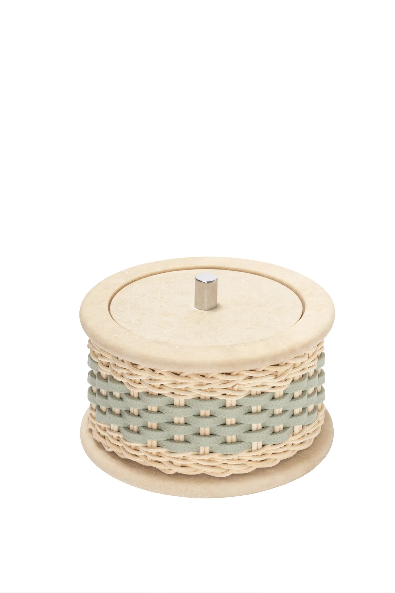 Crafted with meticulous attention to detail, this collection seamlessly merges the timeless allure of travertine with the warmth of woven leather and the organic charm of rattan. As a masterful blend of sophistication and natural beauty, Courbet is ideal for hotels, yachts, offices, shops, private residences and interiors in general. Metal finishes available: polished chrome, brushed brass and brushed bronze.