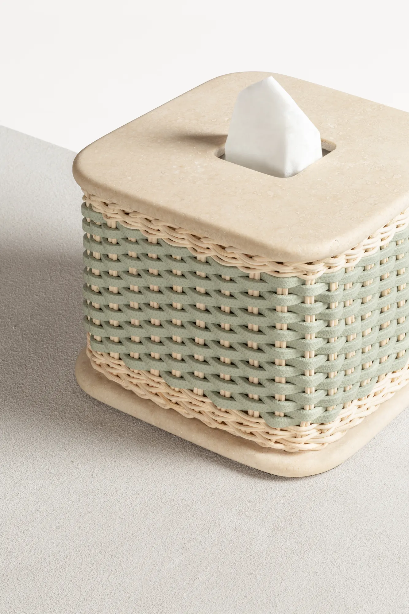 Crafted with meticulous attention to detail, this collection seamlessly merges the timeless allure of travertine with the warmth of woven leather and the organic charm of rattan. As a masterful blend of sophistication and natural beauty, Courbet is ideal for hotels, yachts, offices, shops, private residences and interiors in general.