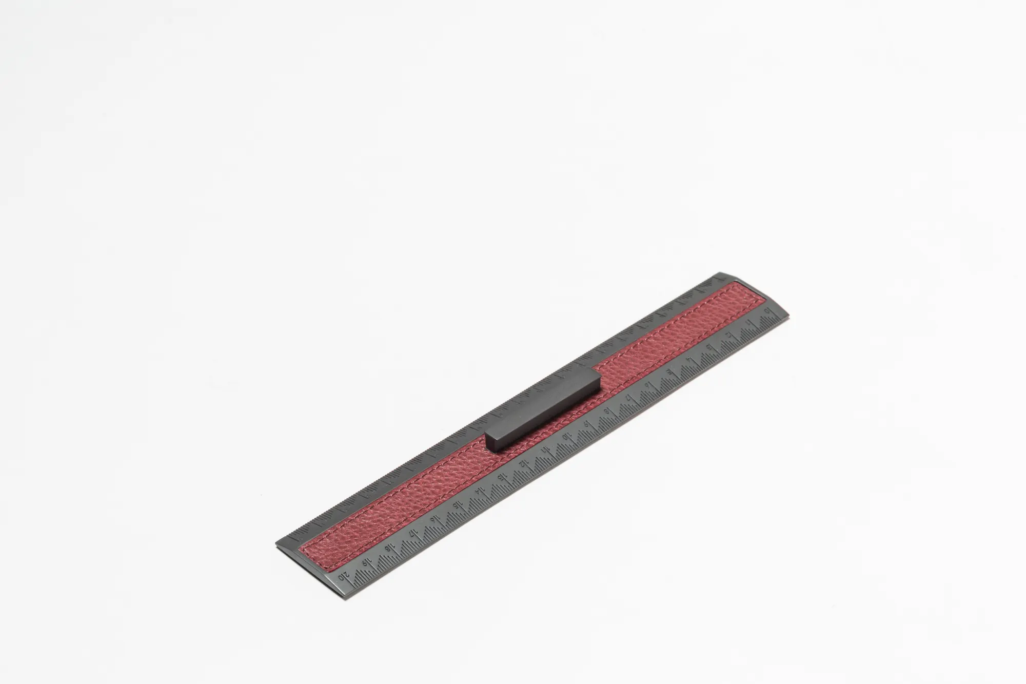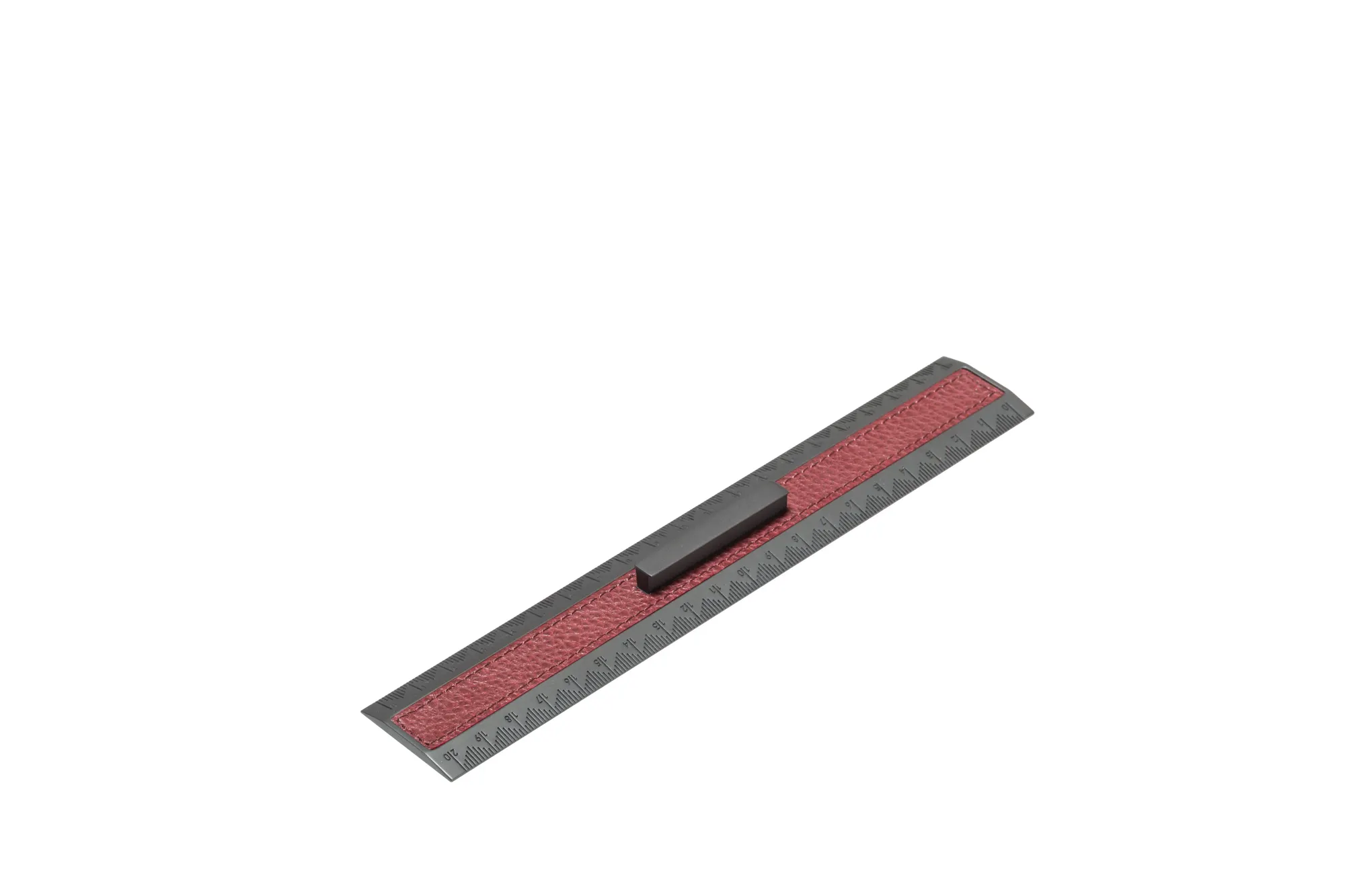 This piece boasts carved labels and numbers and has a fixed central bar that grants an easy grip. It features nappa leather underneath to avoid scratches on surfaces.