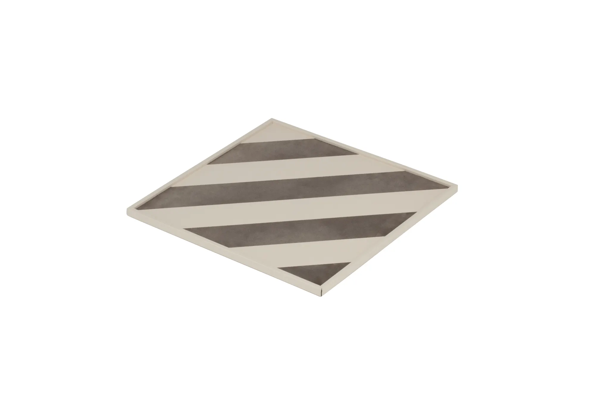 These four nesting trays in marquetry of nappa leather and suede play on the graphics of diagonal two-toned lines and stripes. A nod to geometric abstraction and minimalism in an elegant and whimsical composition.
