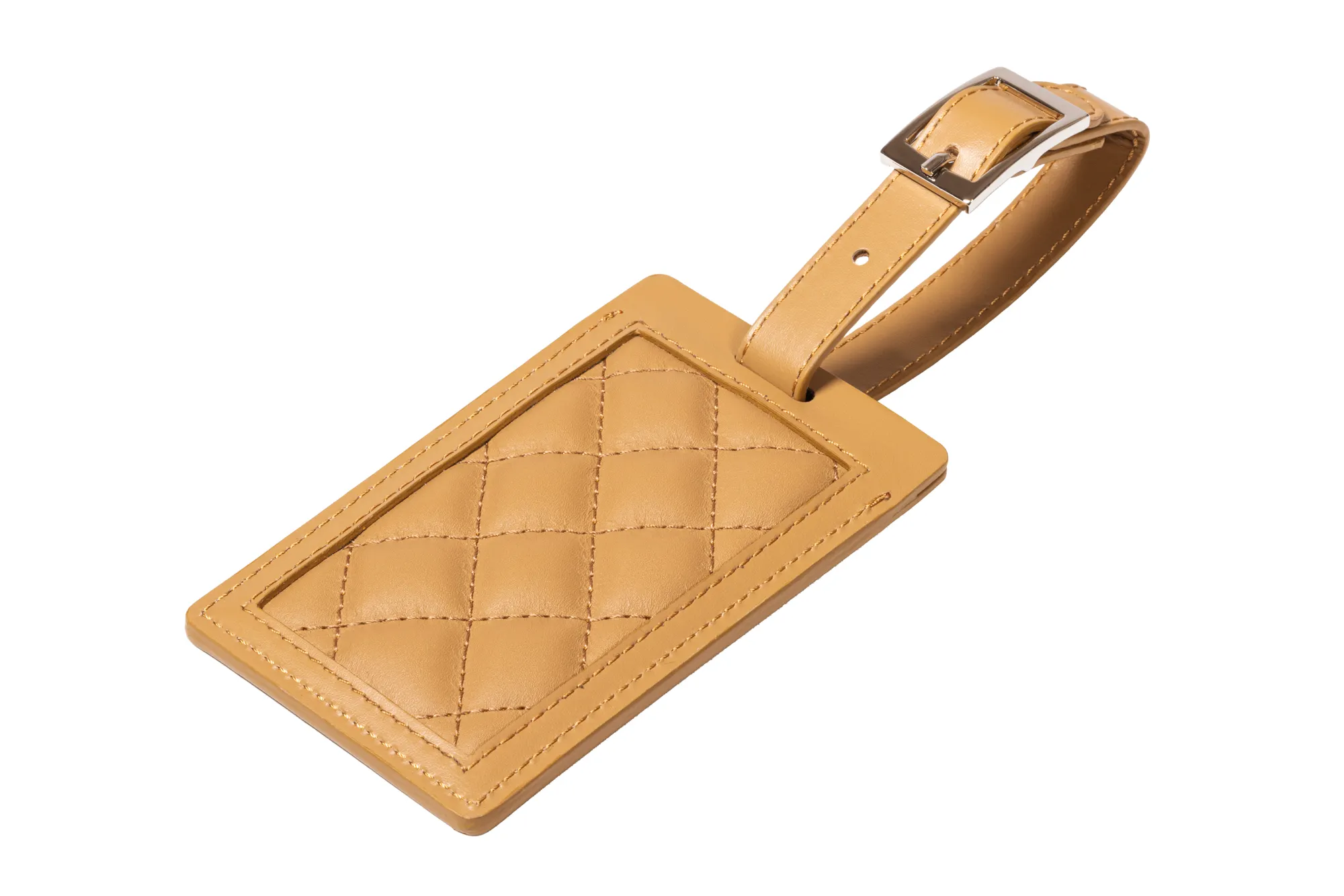 Quilted diamonds padded leather luggage tag.