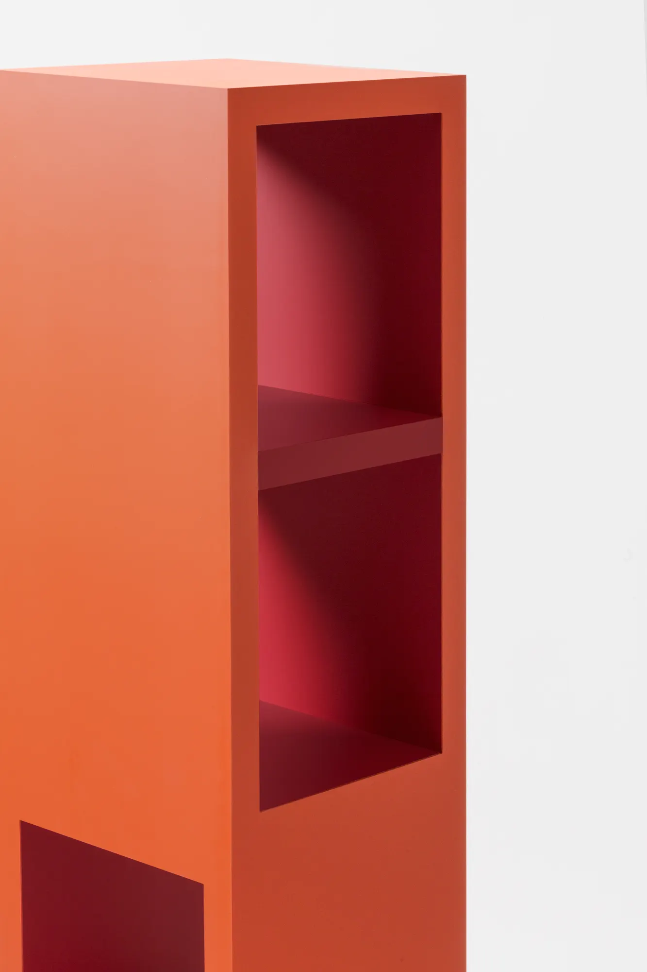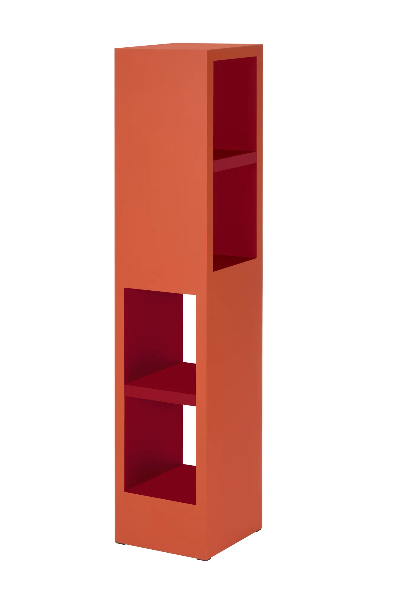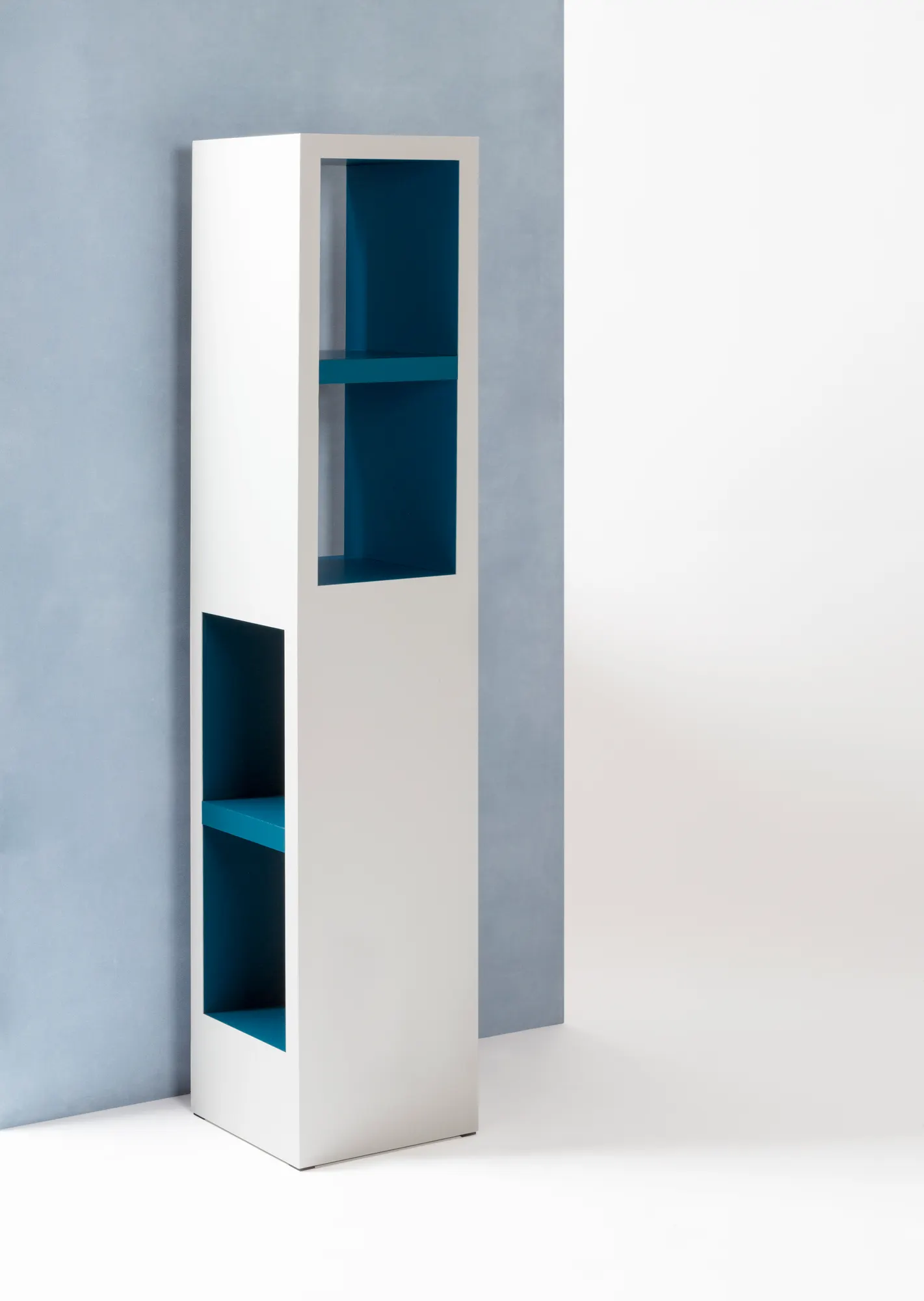 Wood structure featuring a Tecnocuoio® cover: finest regenerated leather with water-resistant and UV-resistant finish. It is possible to choose any color combination from our chart for the bookshelves' bicolor version.