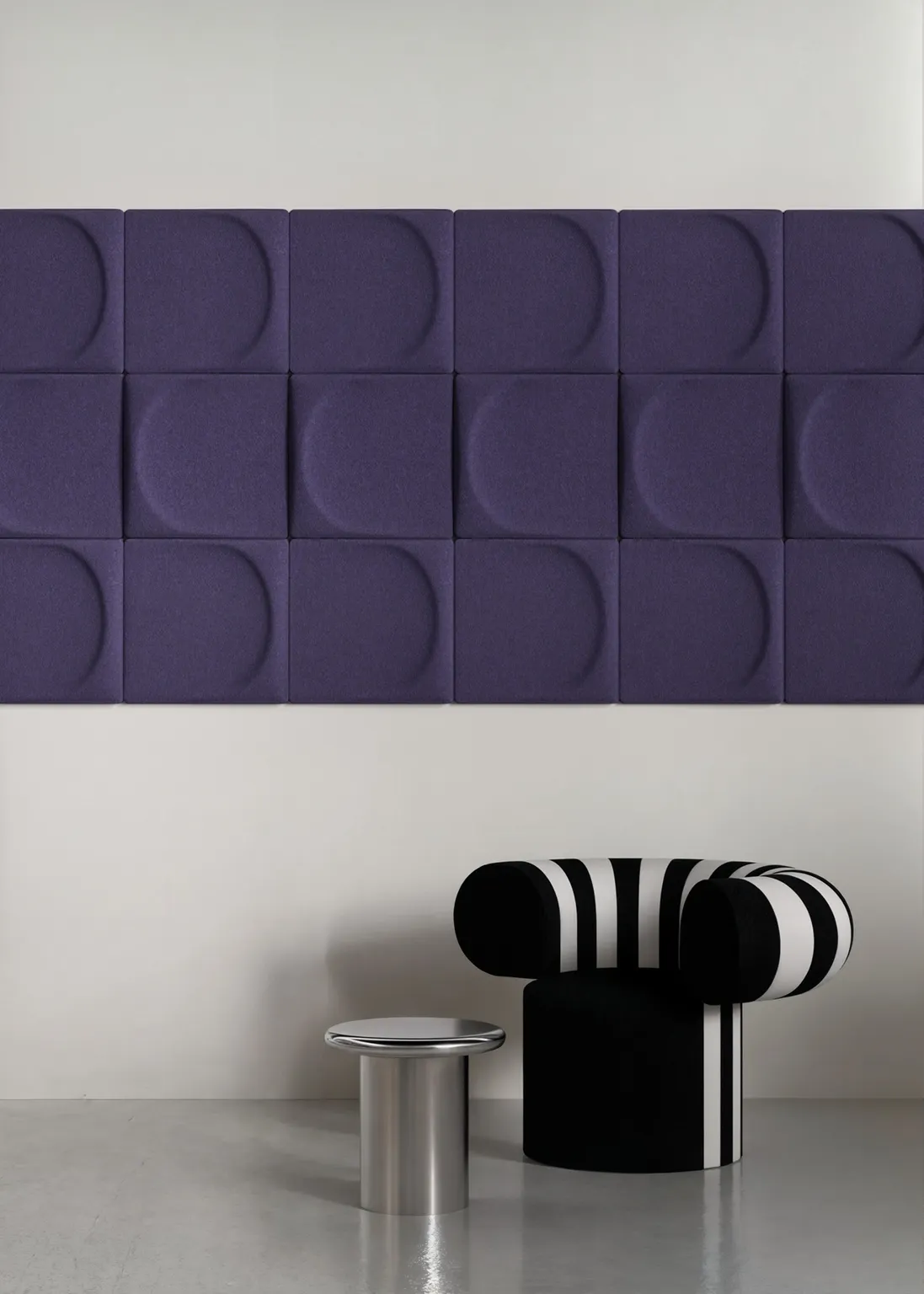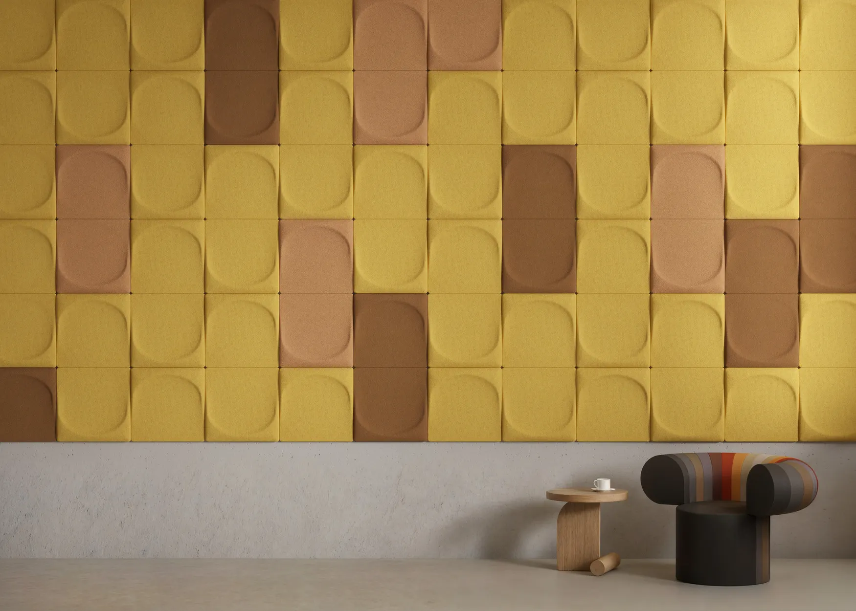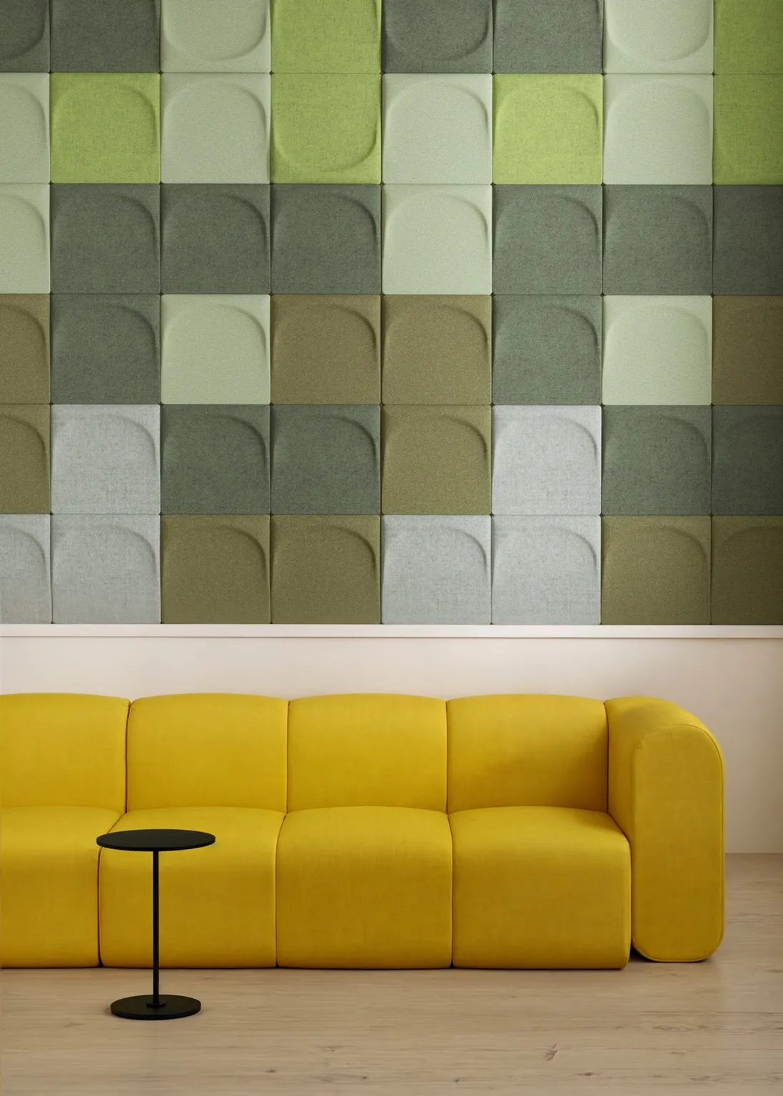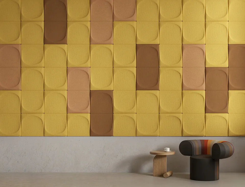 The Spanish design studio Stone Designs has once again created a shape we cannot resist. Like a thumbprint in soft clay the shape feels familiar and timeless. Like the three previous sound absorbers/wall decorations, Ginkgo, Gaia and Arc, Drip is multifunctional in the way that it is just ONE panel that can be turned in four different directions or change place with others, creating new and endless patterns. Drip reduces ambient noise and echoes in the room and gives the room the best sound quality while creating a colourful and inspiring ambient. Drip is mounted on the wall with a magnetic fitting, so you can easily move around the panels when you feel like it, maybe to change direction or go from light to dark.