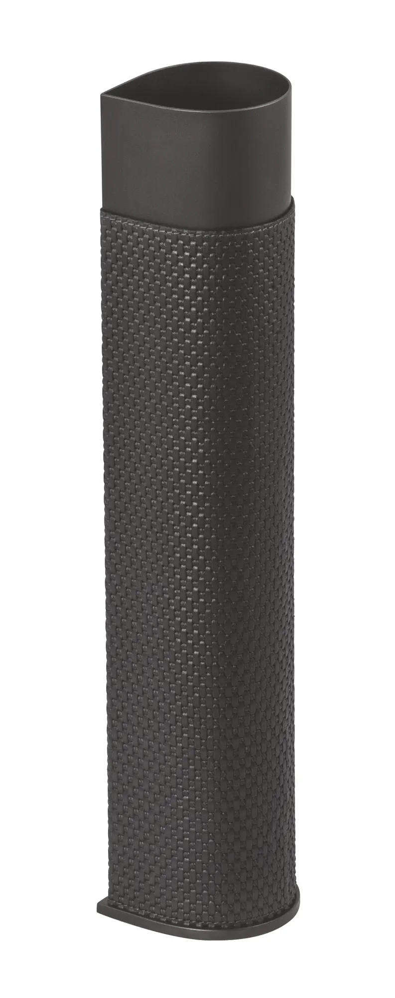 Partially leather covered metal vase available in three finishes. Perfect to be used in single pieces or in composition.