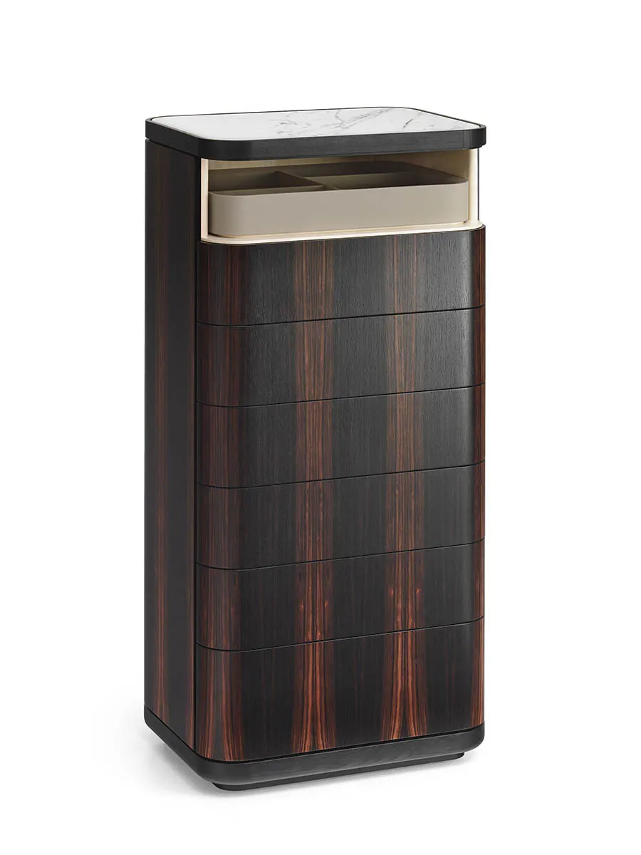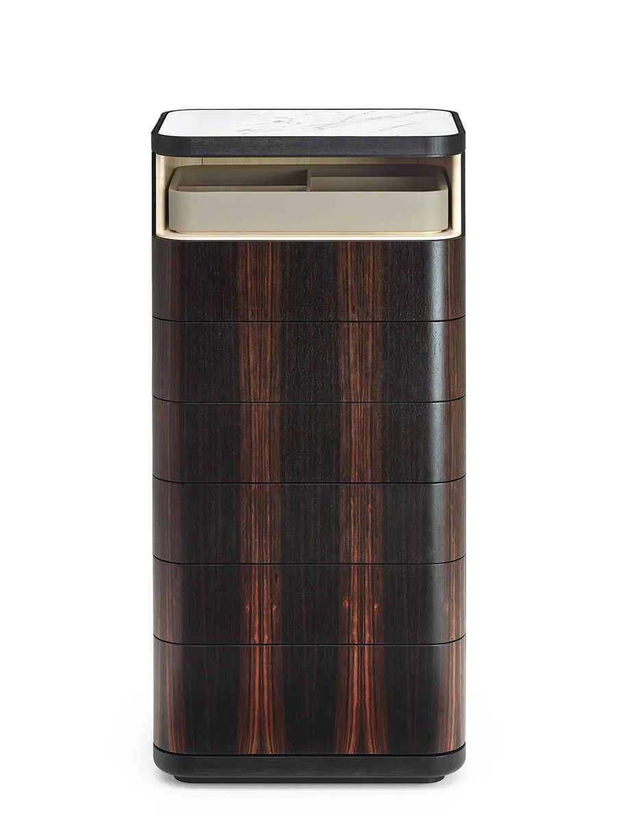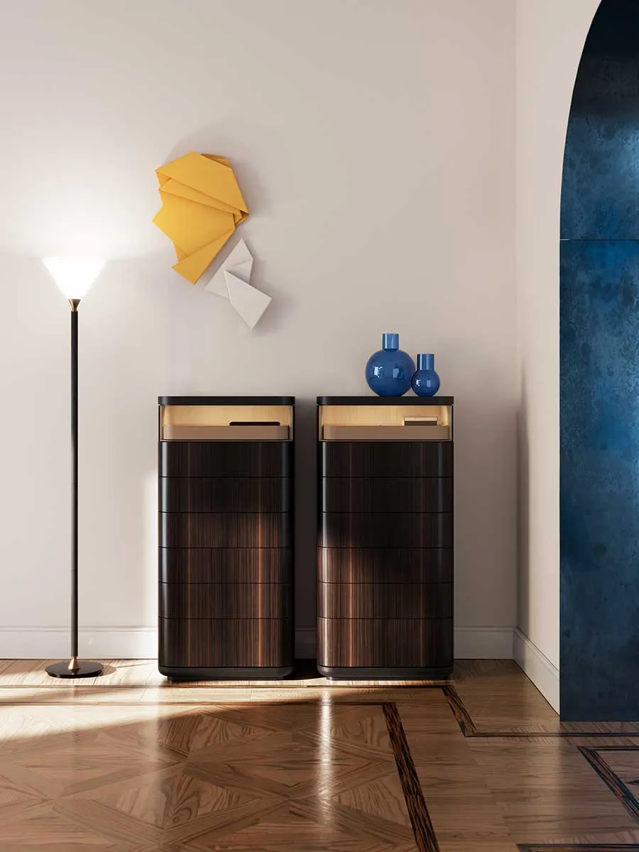 Poltrona Frau and Ceccotti Collezioni co-sign the DUO Collection, expressing their synergy in a shared design vision. Inspired by the Italian-style Dolce Vita, the products of the collection include luxury upholstered furniture with rounded shapes and exquisite wooden furniture for the living room. All designed by Roberto Lazzeroni, the objects encapsulate the savoir faire of the two Made in Italy excellences in the name of romanticism and timeless charm. The objects, with their retro flair, speak of the past and the present, of memory and of innovation.