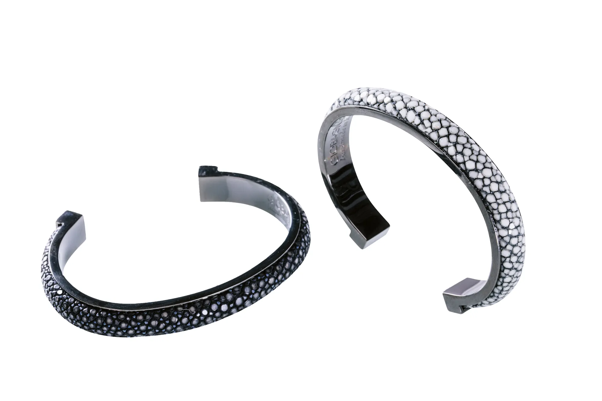 Palladium-plated or gold-plated brass bracelet. Exclusive bracelet made of palladium-plated and PVD coated brass. Adjustable around wrist and hypoallergenic.