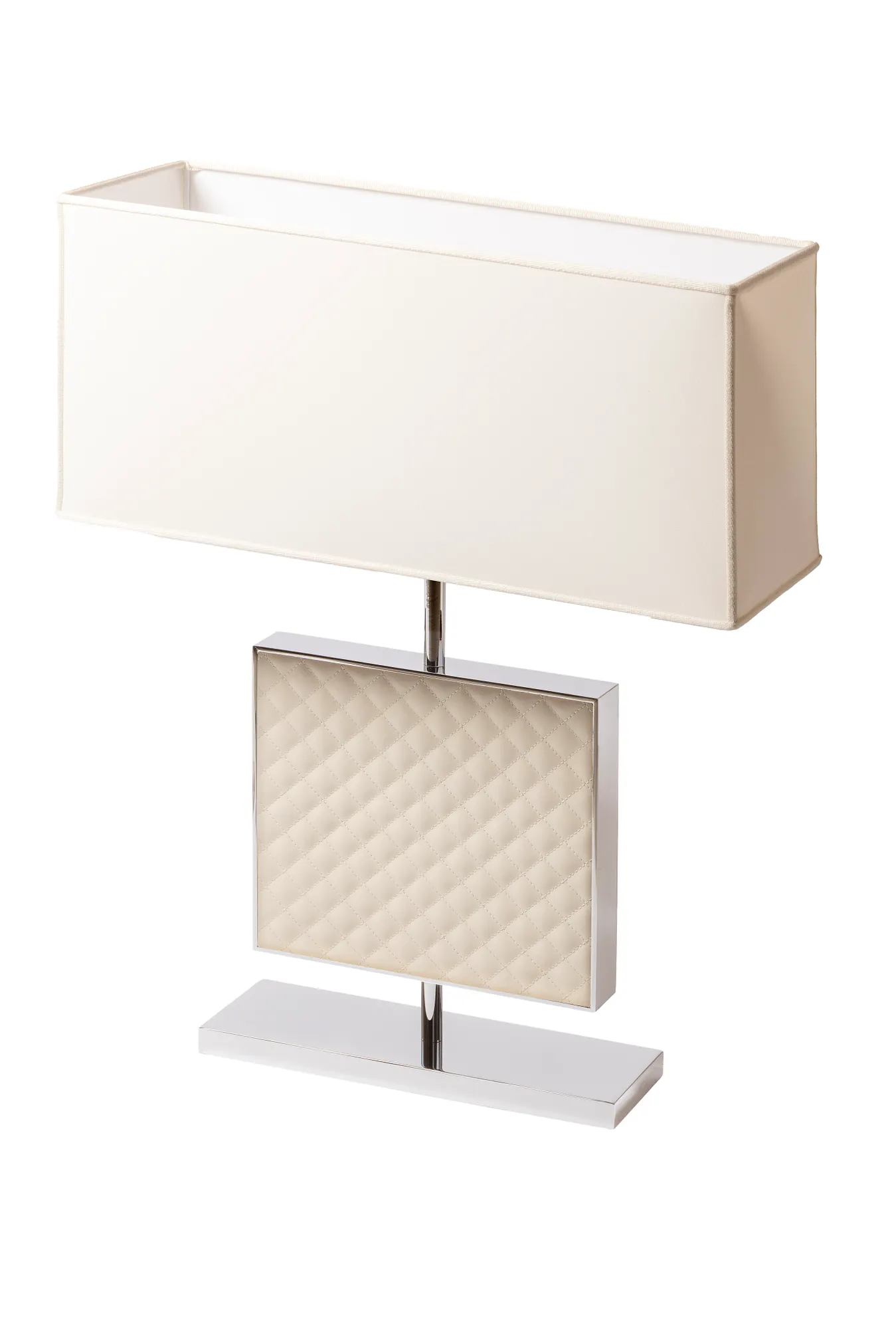 Lamp with quilted padded leather on two sides. Chrome or gold metal base and details, rectangular shade.