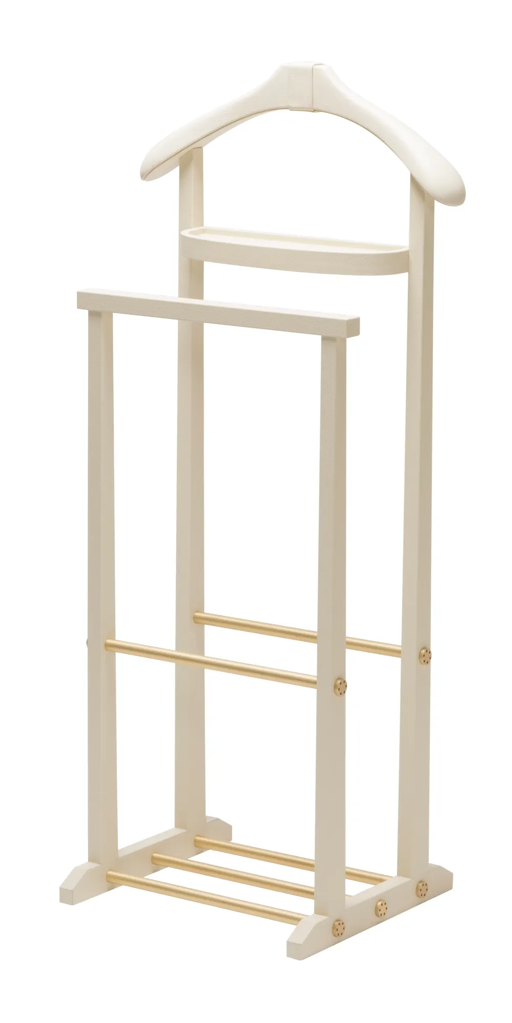 Wood structure covered with leather. Suit hanger on top that provides optimum shoulder support. Provided with a fixed valet tray. Custom sizes available on request.
