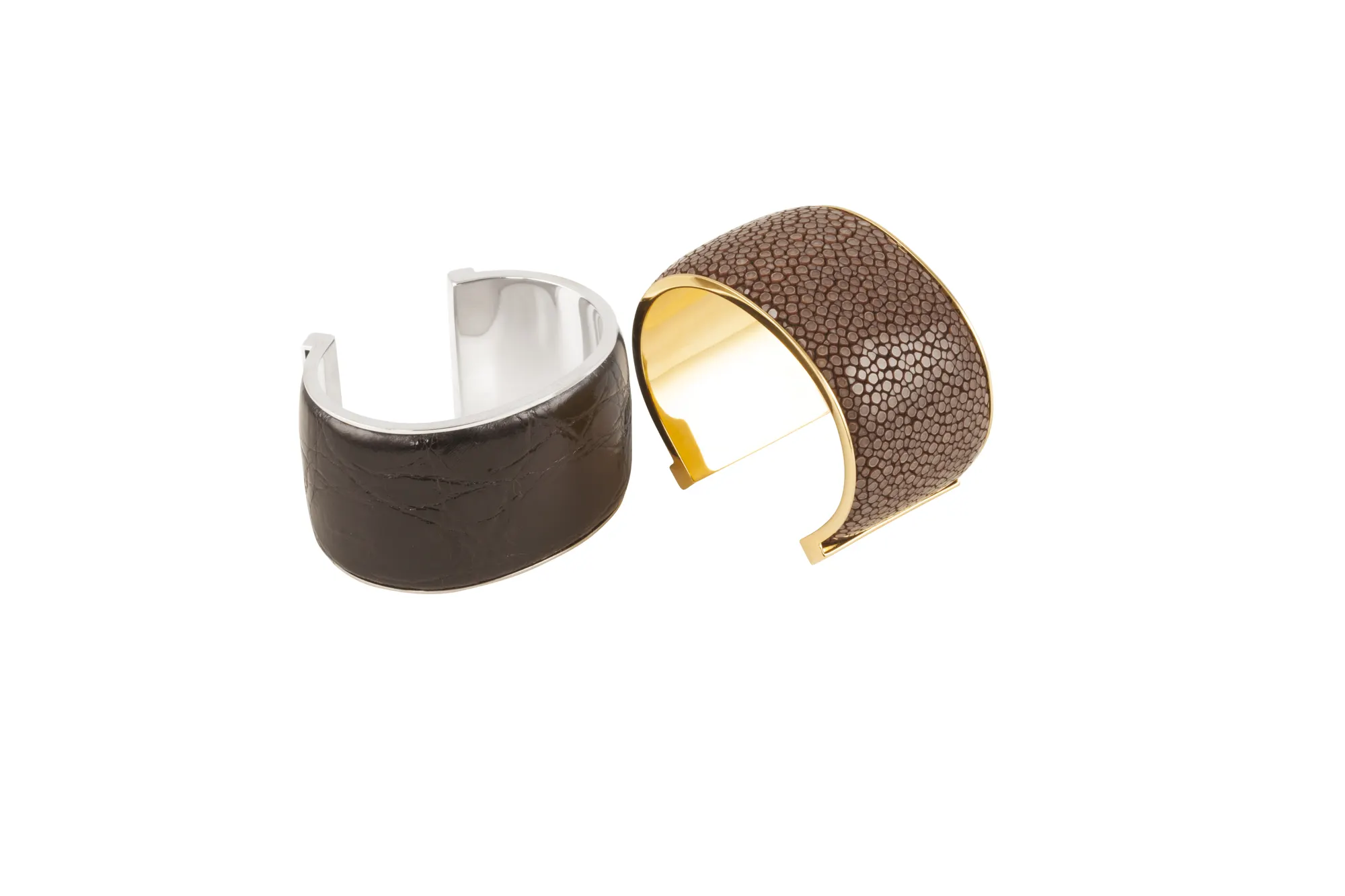 Palladium-plated or gold-plated brass bracelet. Exclusive bracelet made of palladium-plated and PVD coated brass. Adjustable around wrist and hypoallergenic.