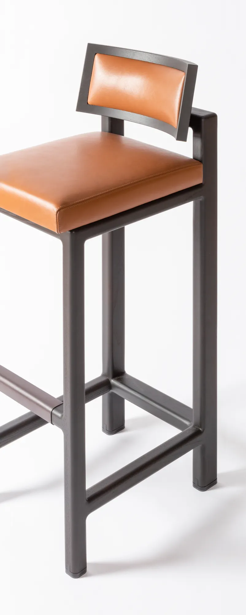 Materials: Canaletto walnut wood structure with upholstered leather cushions. Choose between two available wood finishes. Provided with inox or brushed bronze decorative feet. Custom sizes and fabric available on request.